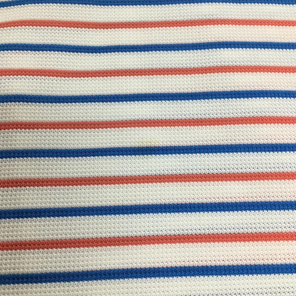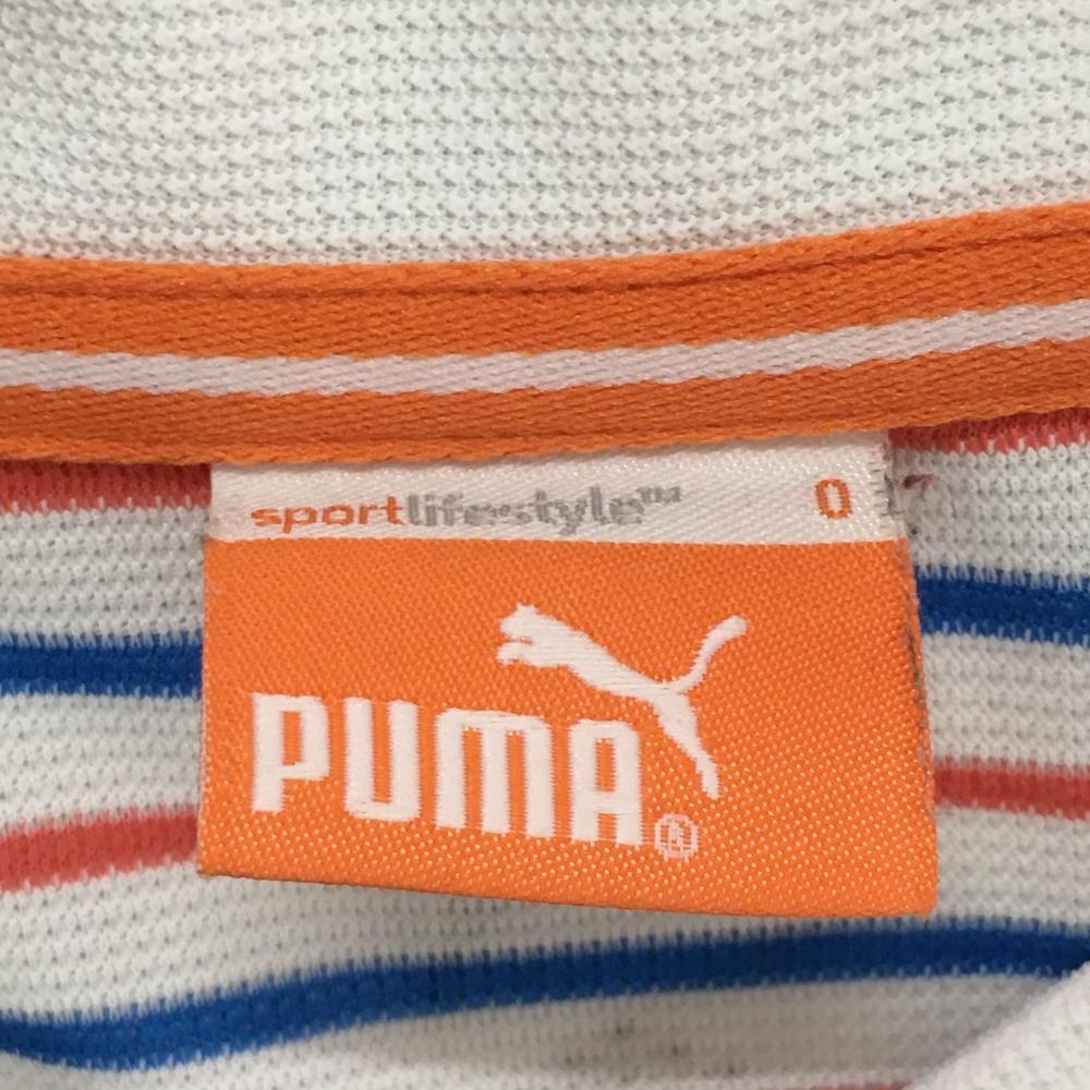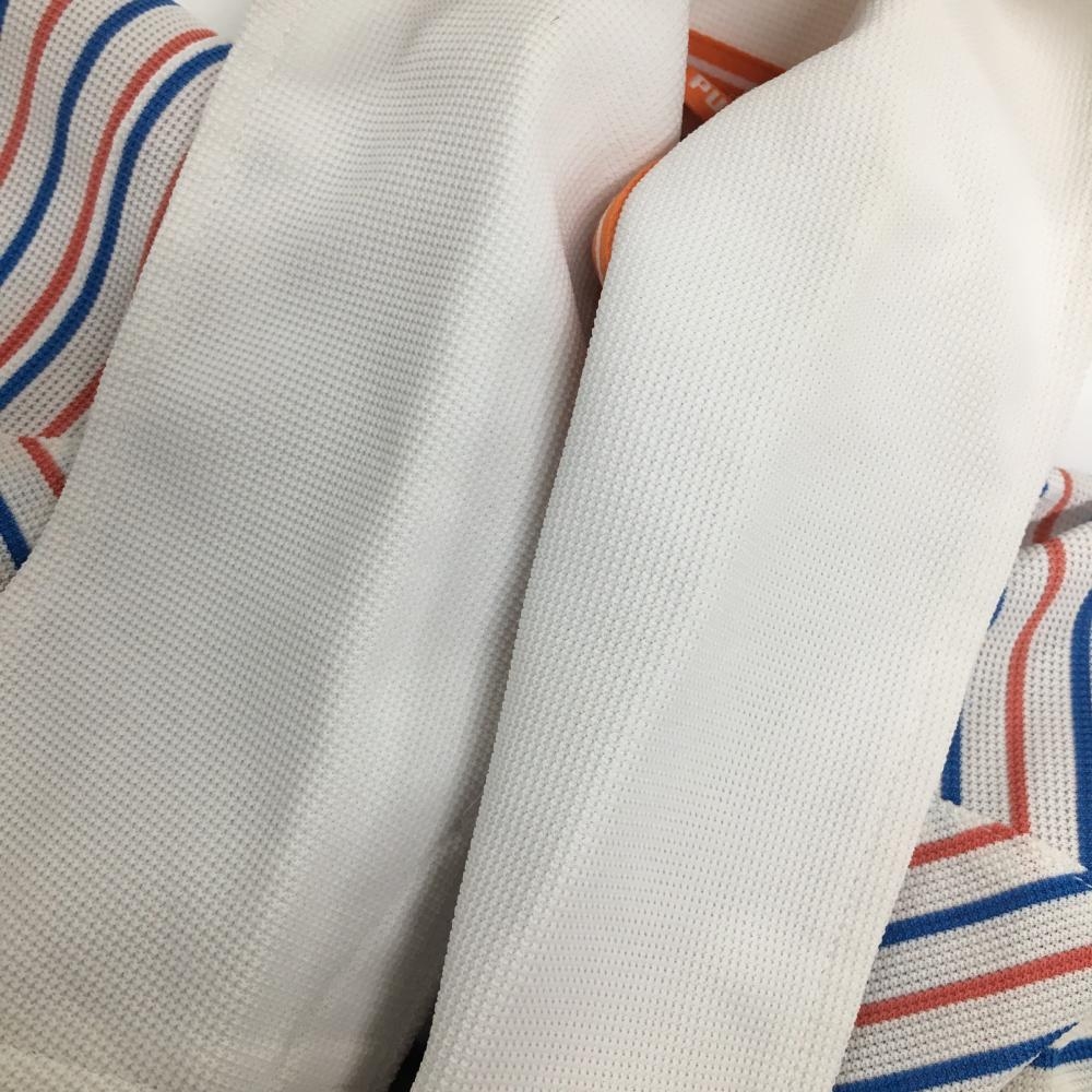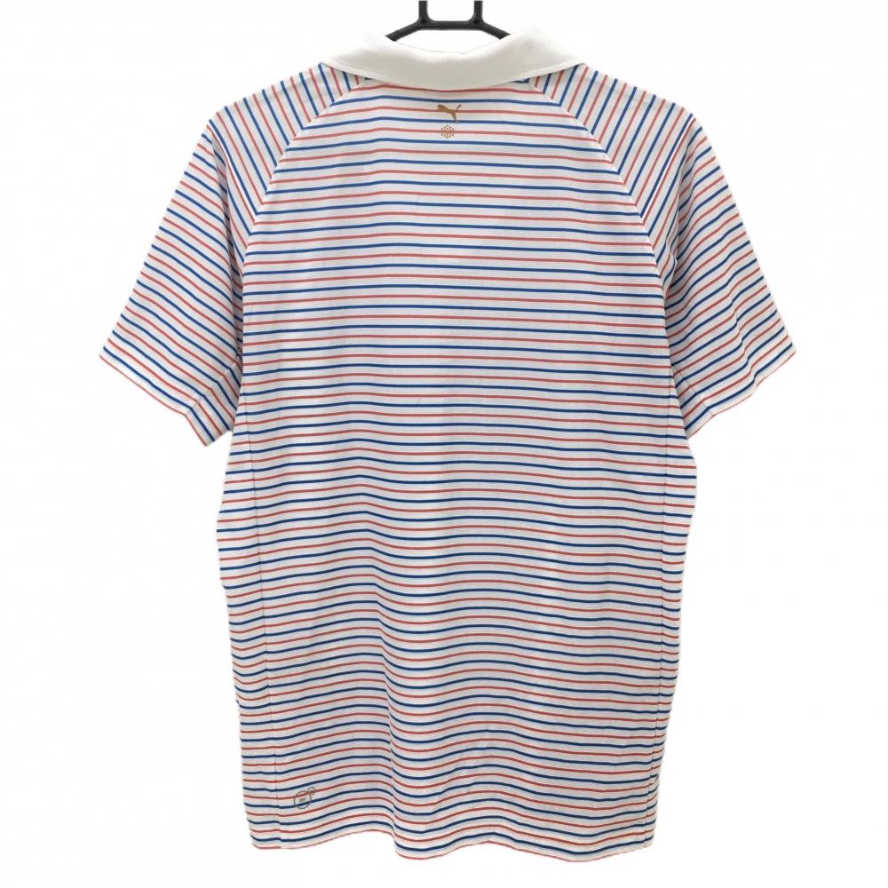 プーマ 半袖ポロシャツ 白×レッド ボーダー柄 ロゴ刺しゅう DRY CELL スキッパーシャツ メンズ O ゴルフウェア PUMA