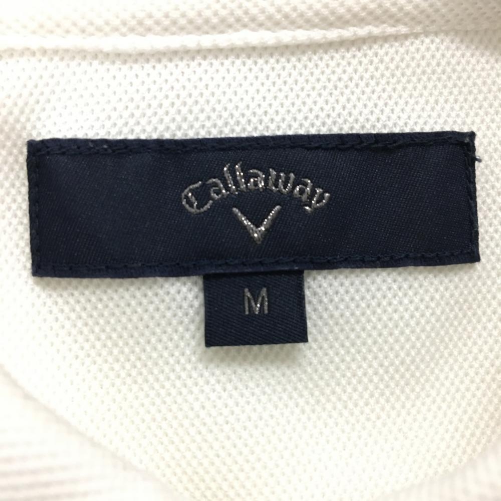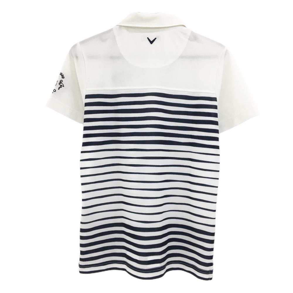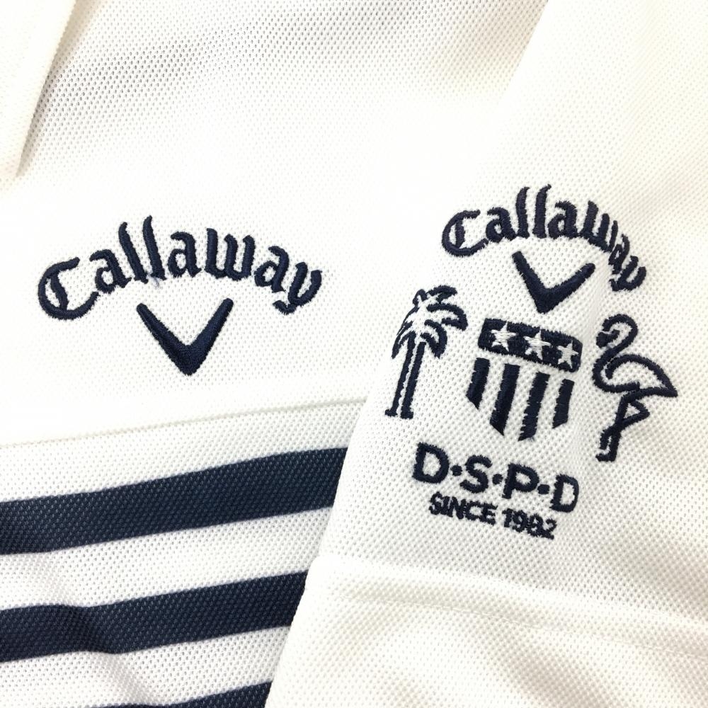 キャロウェイ 半袖ポロシャツ 白×ネイビー 下方ボーダー 胸・袖刺しゅう メンズ M ゴルフウェア Callaway