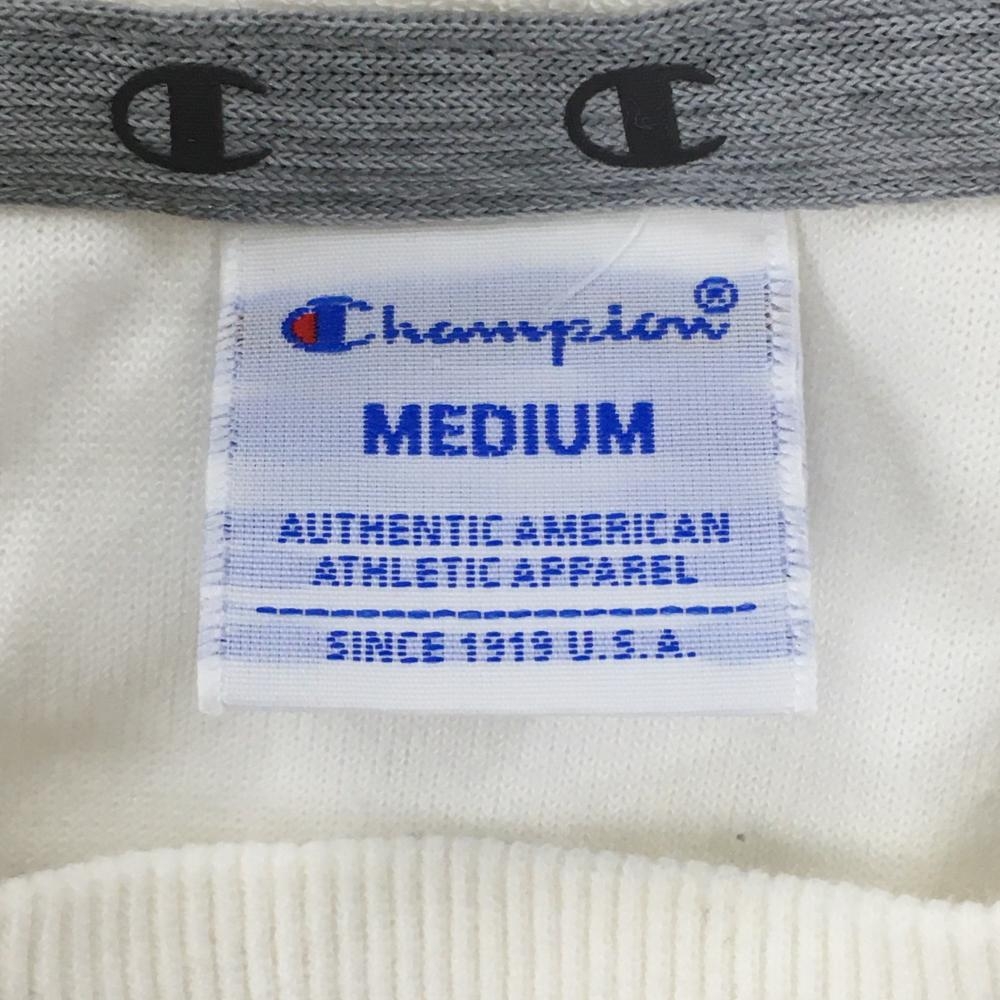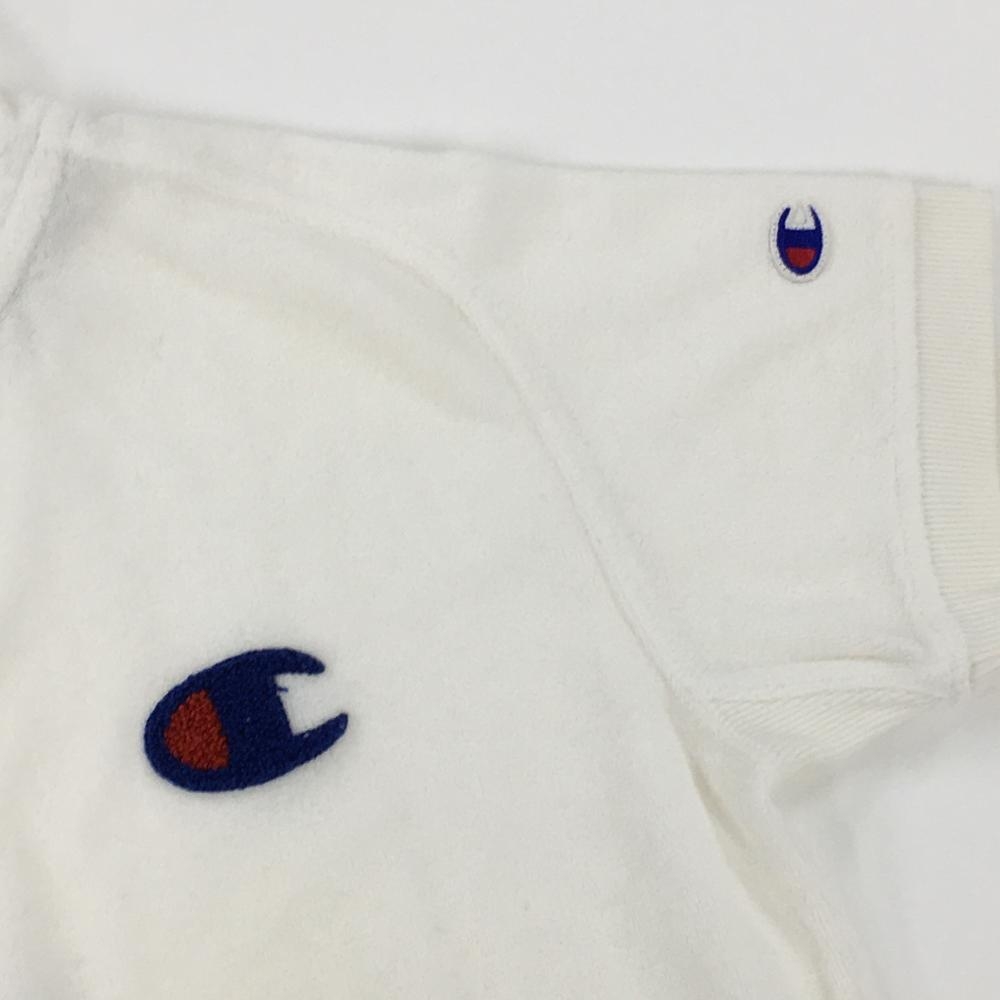 チャンピオン 襟付き半袖シャツ 白×ブルー パイル地 レディース MEDIUM ゴルフウェア Champion