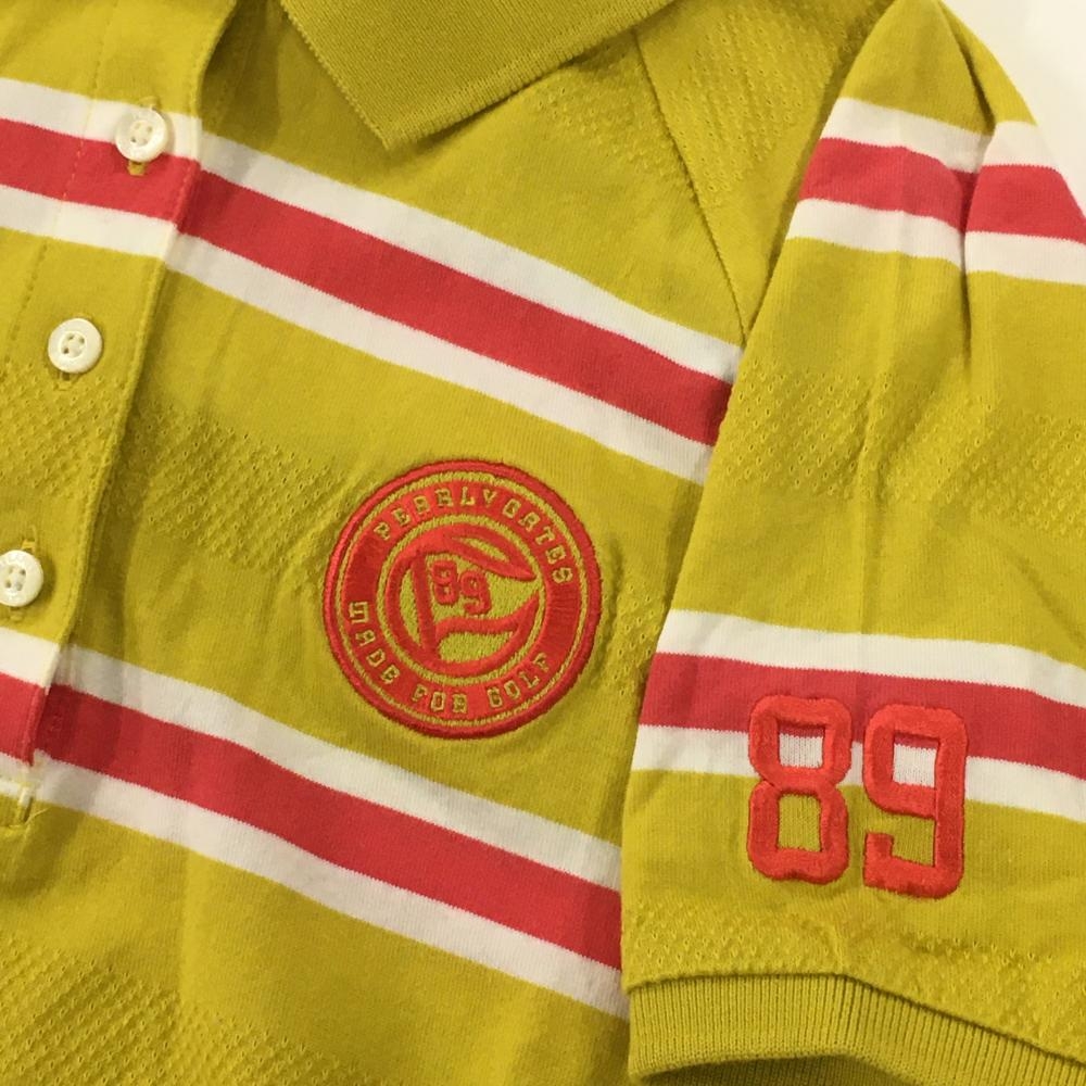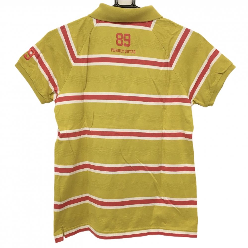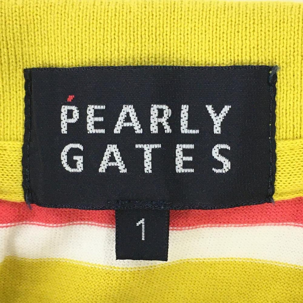 【超美品】パーリーゲイツ 半袖ポロシャツ イエロー×ピンク ボーダー レディース 1(M) ゴルフウェア PEARLY GATES