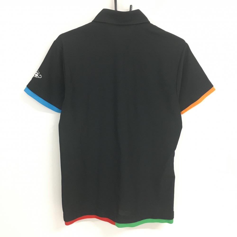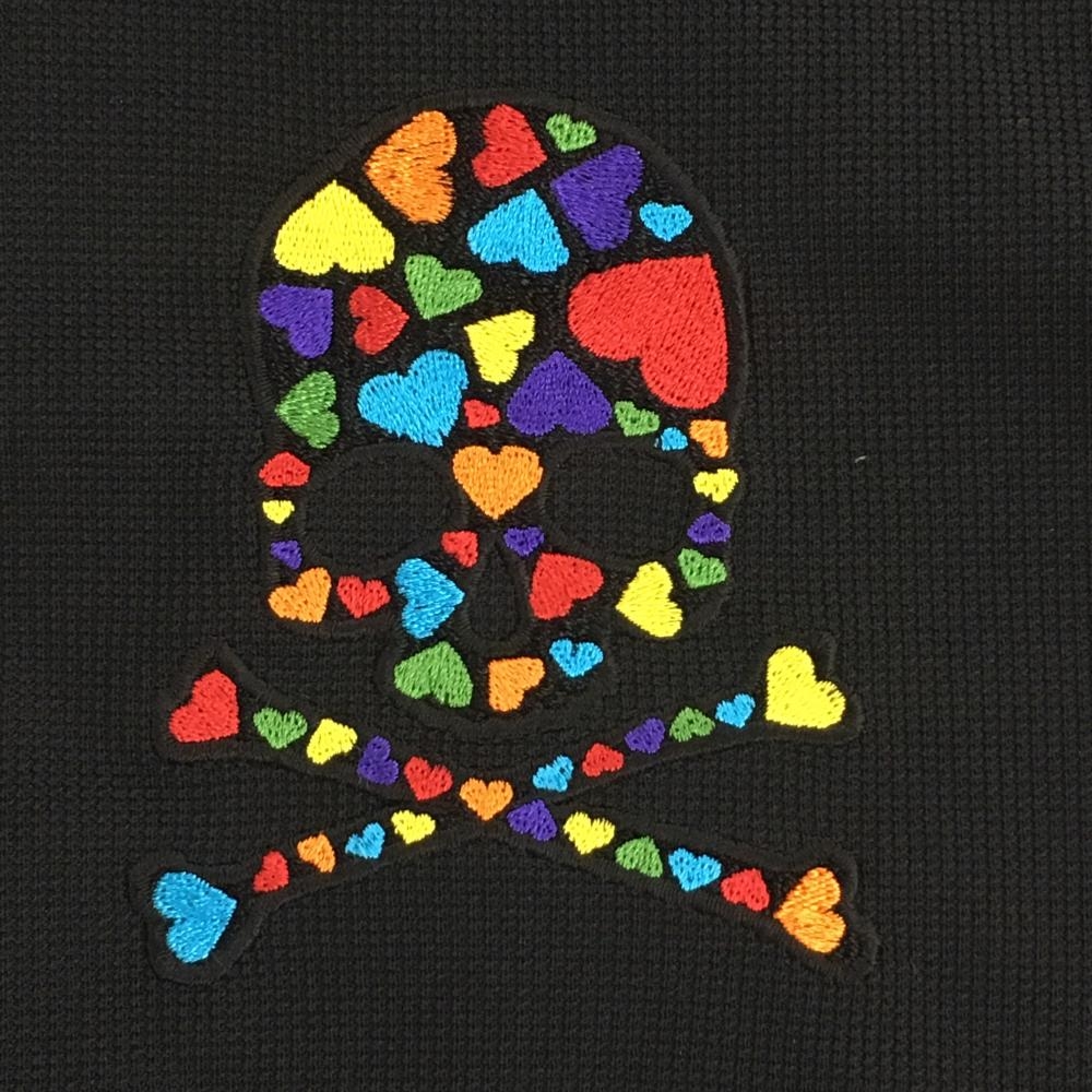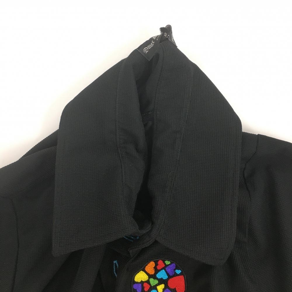 ダンスウィズドラゴン 半袖ポロシャツ 黒×マルチ スカルハート刺しゅう メンズ 2(M) ゴルフウェア Dance With Dragon