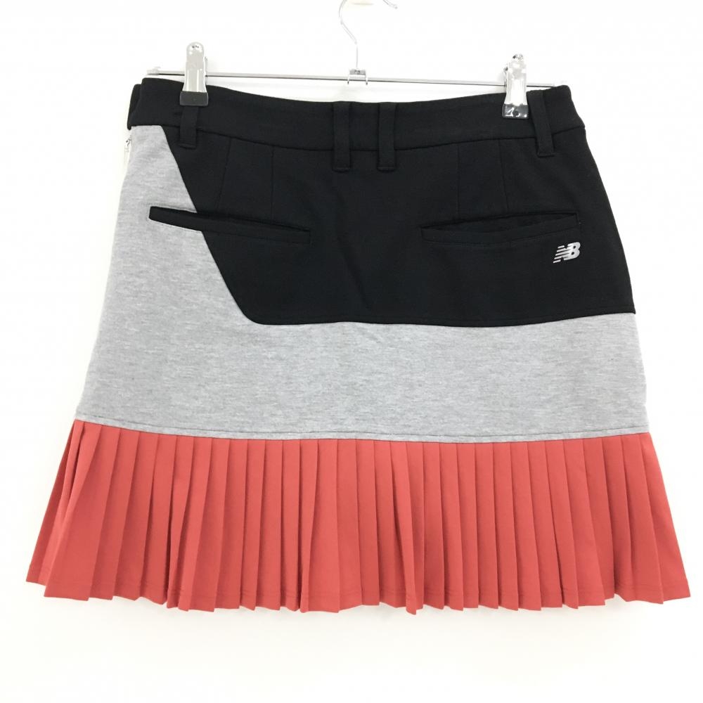 【美品】ニューバランス スカート 黒×グレー オレンジプリーツ ストレッチ レディース 1(M) ゴルフウェア New Balance