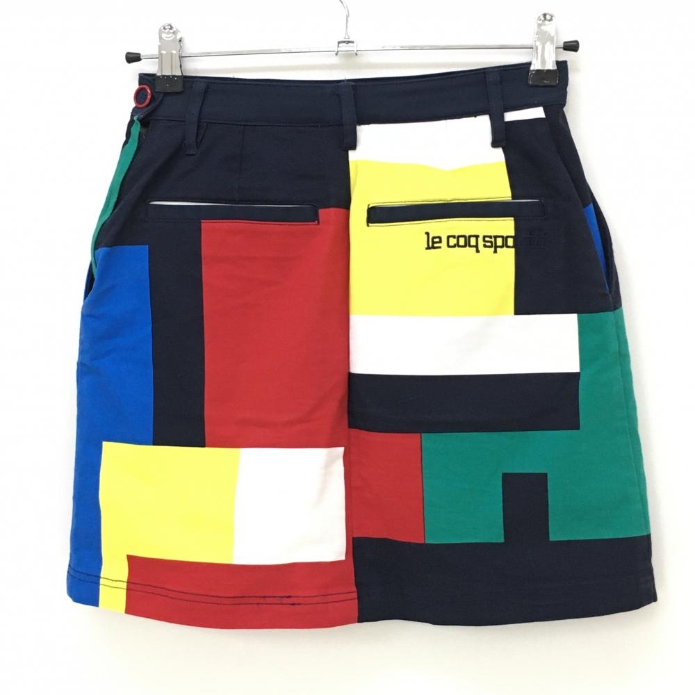ルコック スカート ネイビー×マルチカラー 総柄 内側インナーパンツ レディース ゴルフウェア le coq sportif