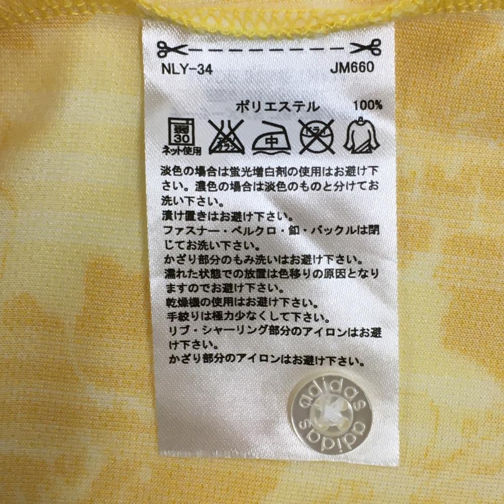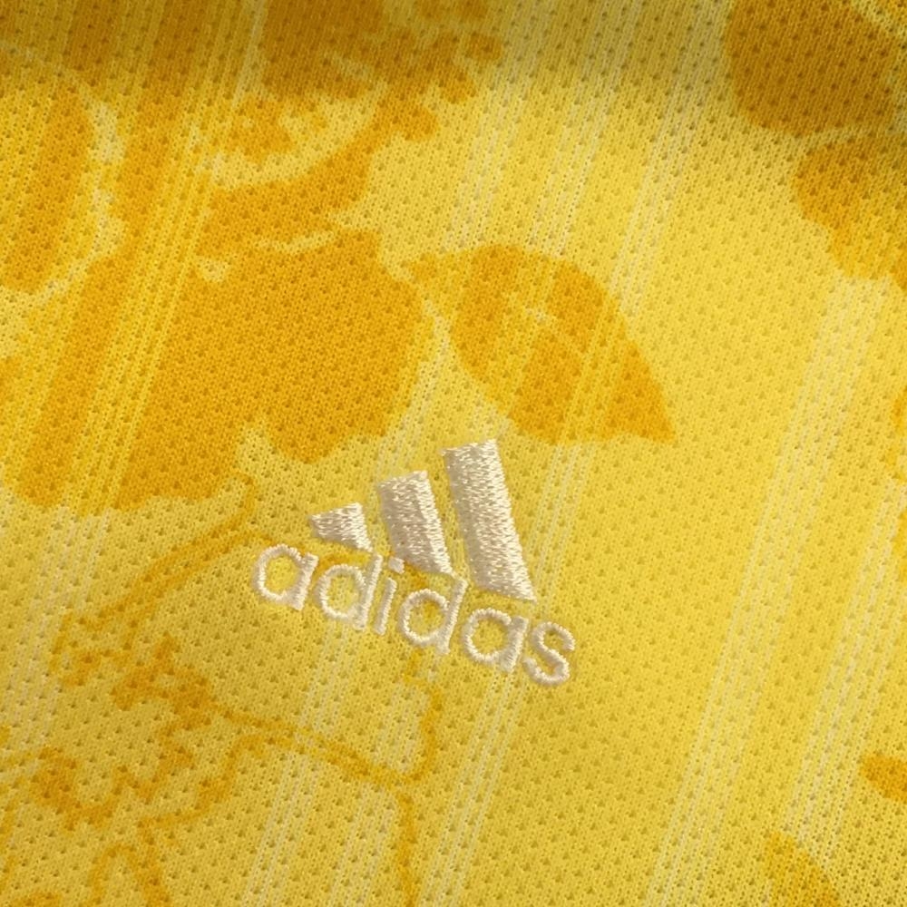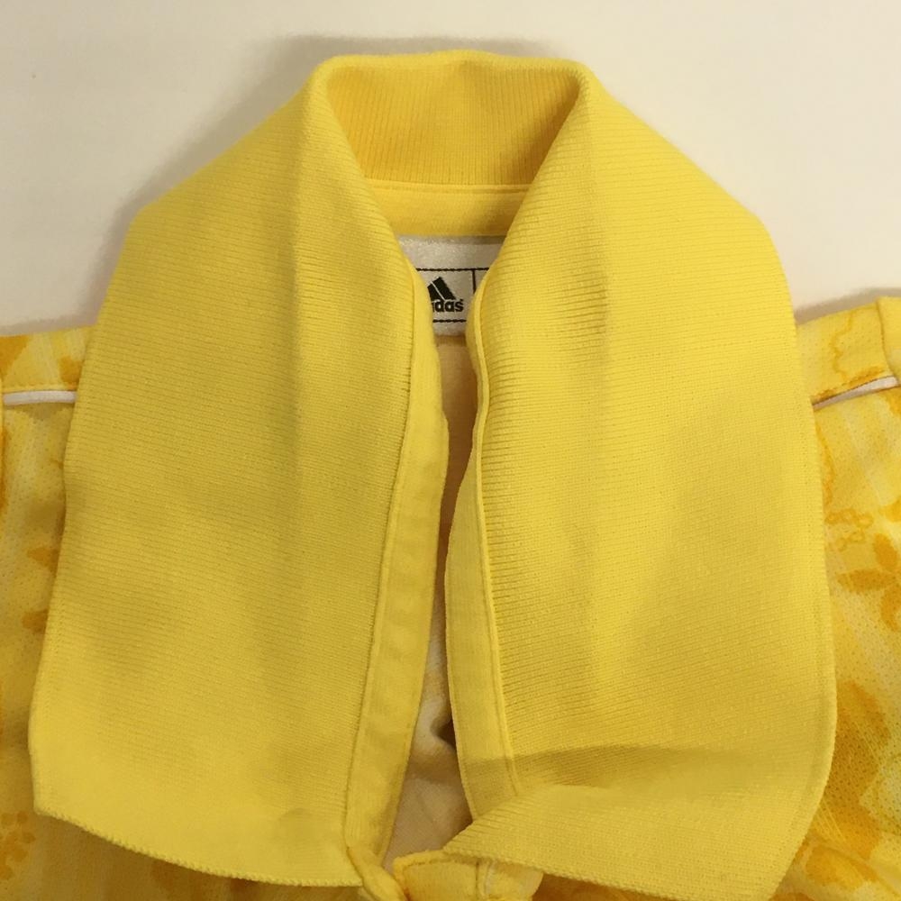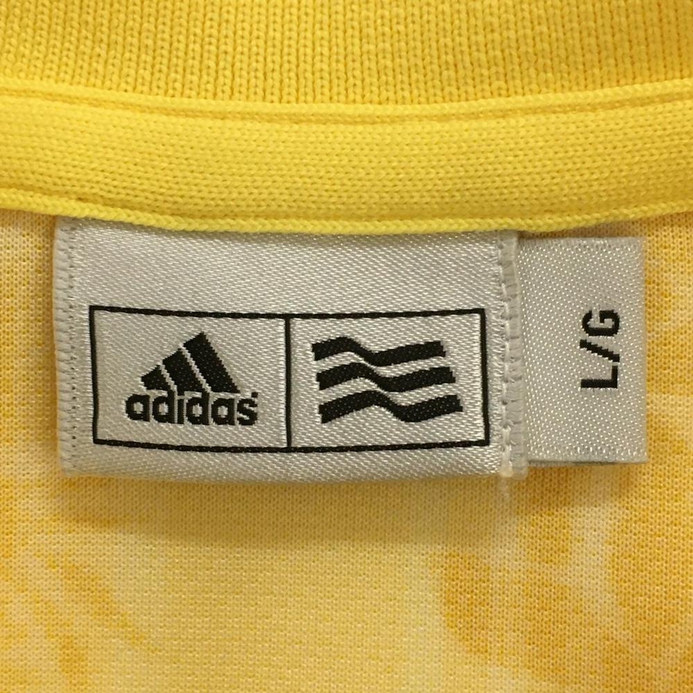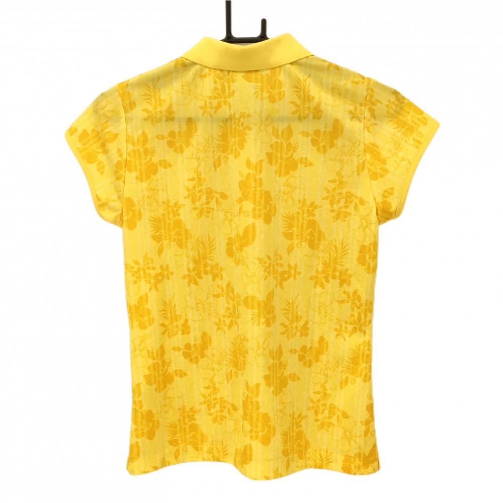 アディダス 半袖ポロシャツ イエロー 花柄 ストライプ レディース L/G ゴルフウェア adidas