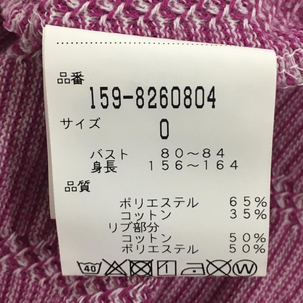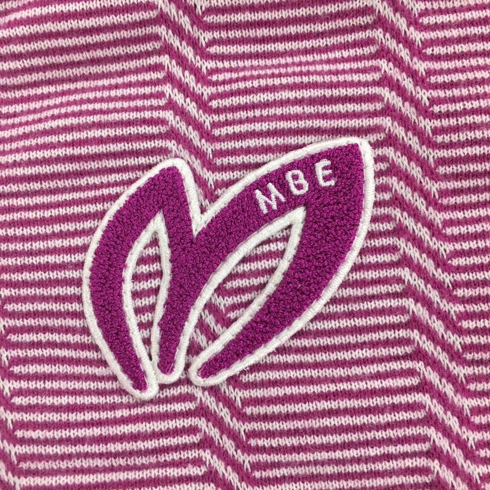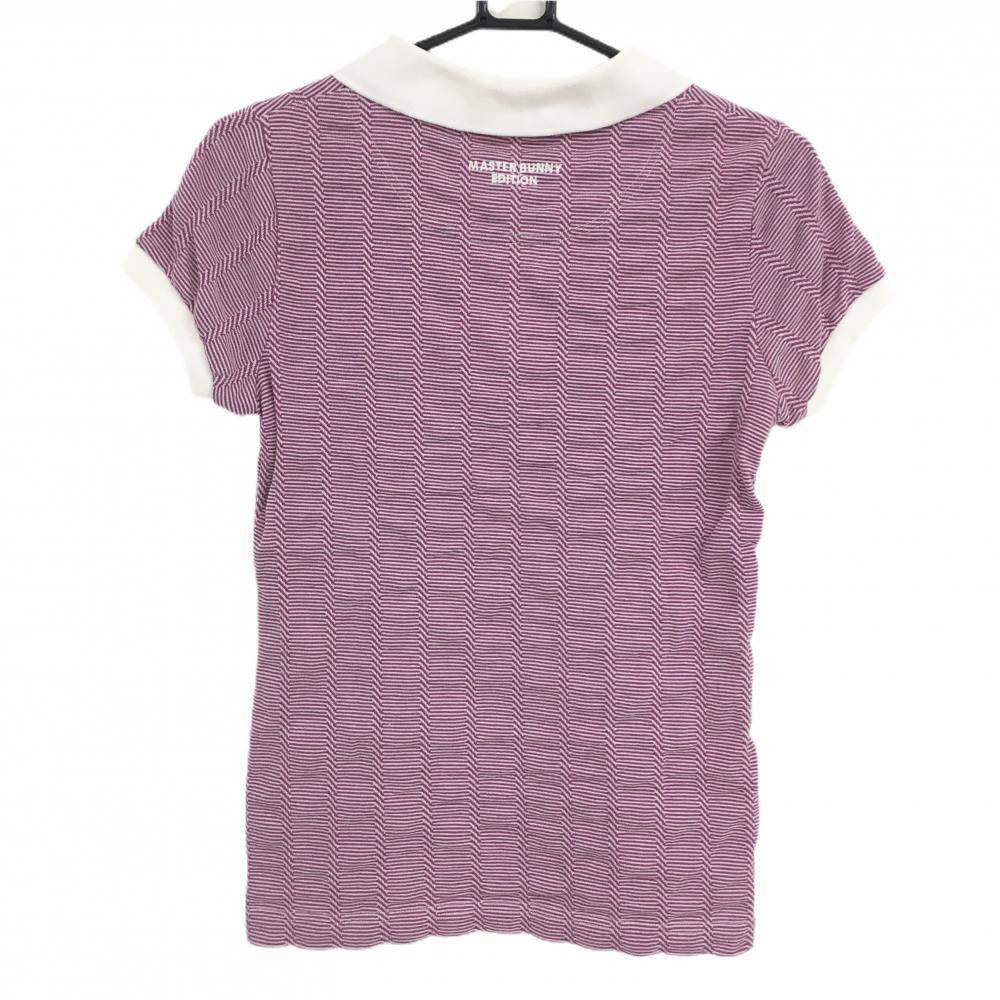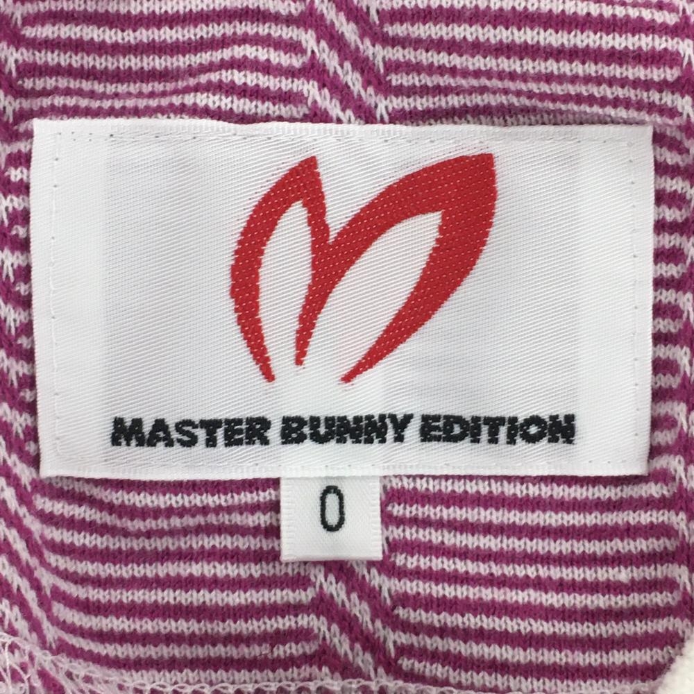 【美品】マスターバニー ニット半袖スキッパーシャツ ピンク×白 細ボーダー レディース 0(S) ゴルフウェア MASTER BUNNY EDITION