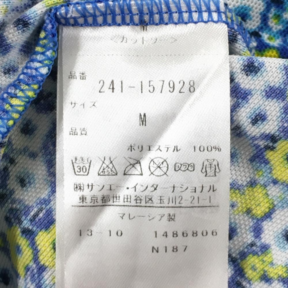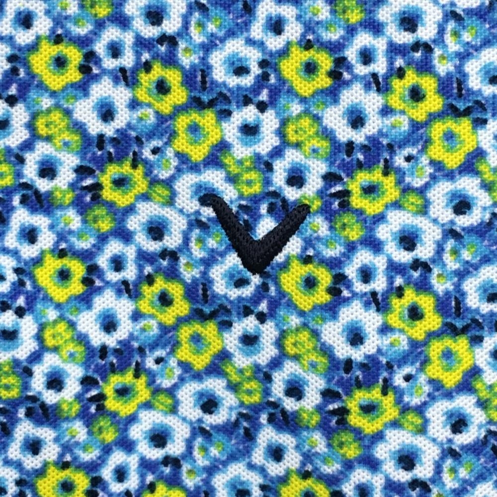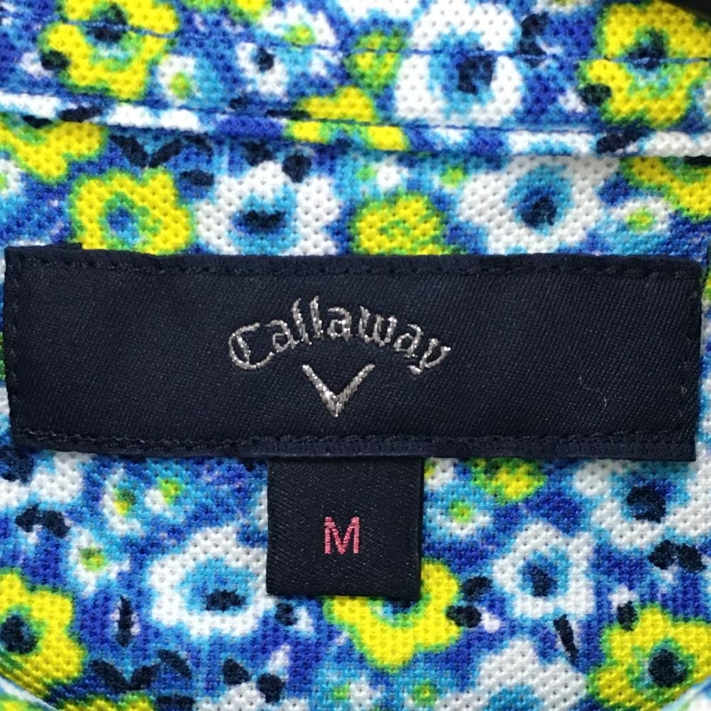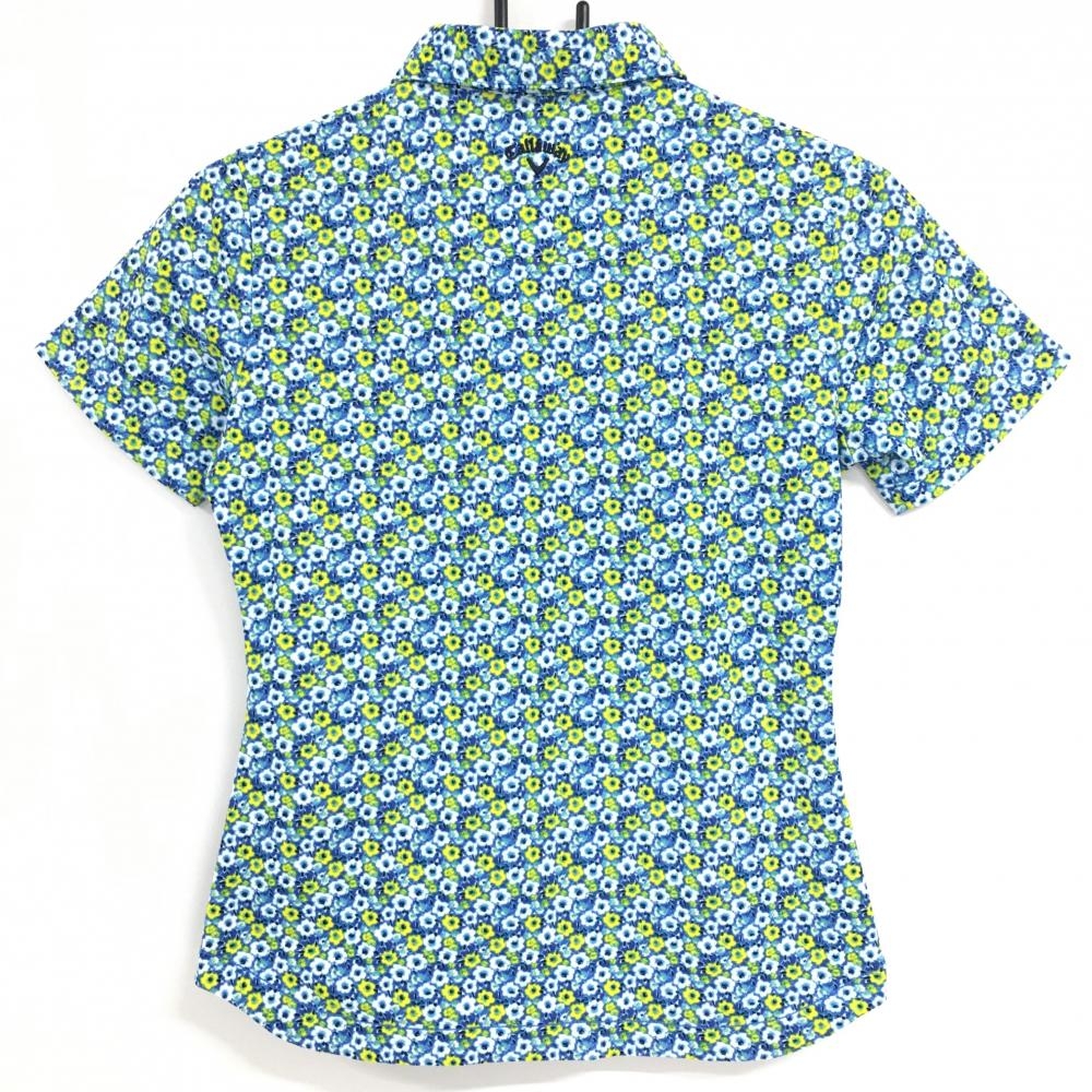 【超美品】キャロウェイ 半袖ポロシャツ ブルー×イエロー 花柄 レディース M ゴルフウェア Callaway