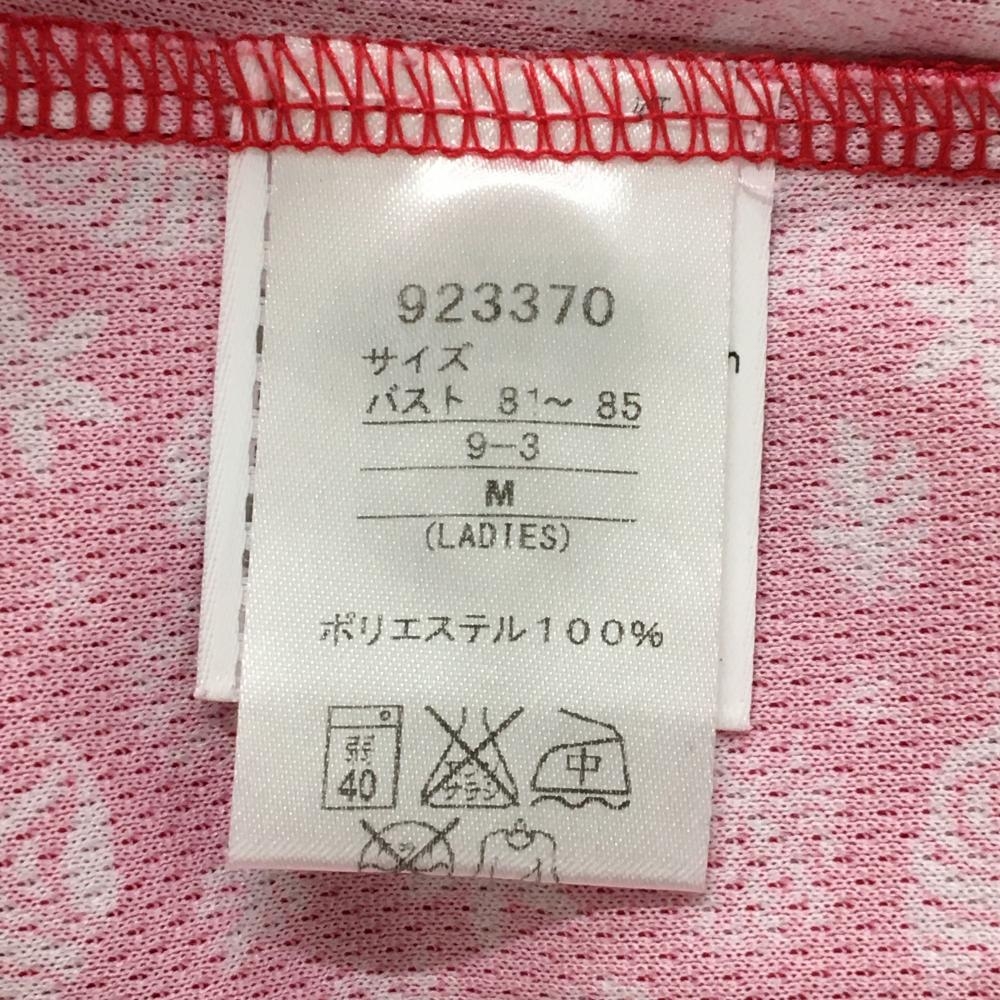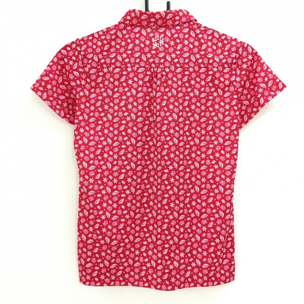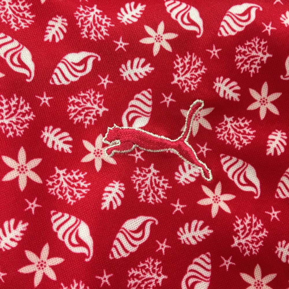 【超美品】プーマ 半袖ポロシャツ レッドピンク×白 総柄 貝 花 胸元ロゴ レディース M ゴルフウェア PUMA