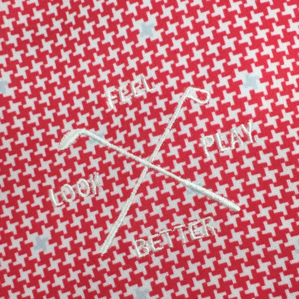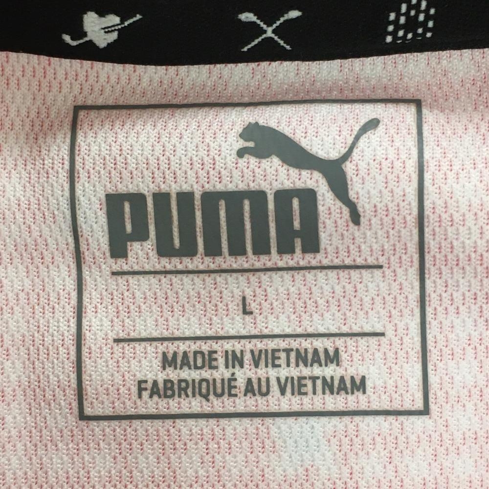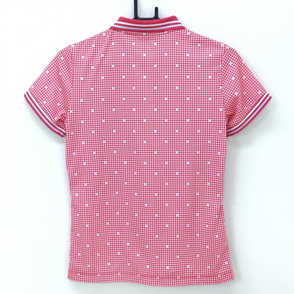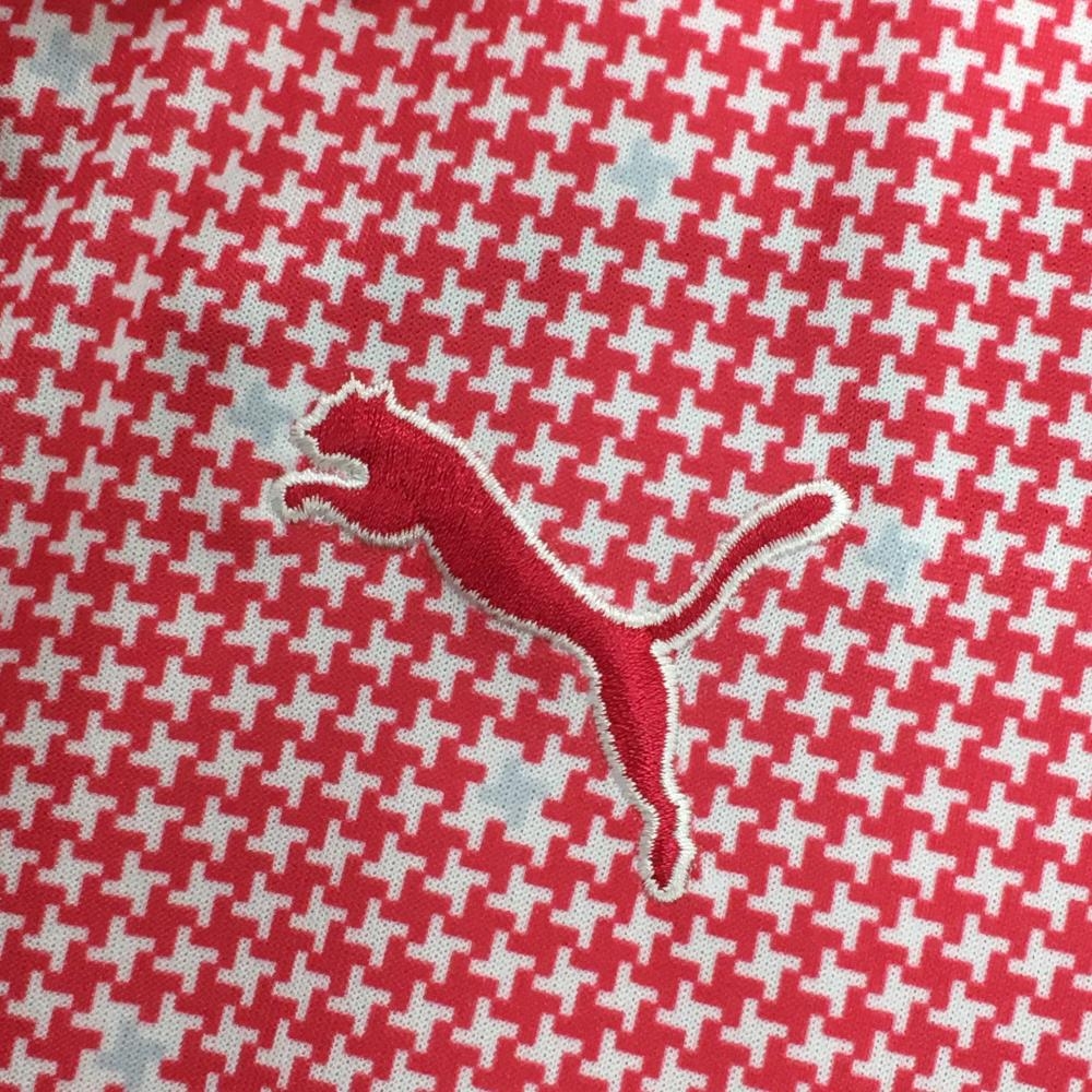 【超美品】プーマ 半袖ポロシャツ レッドピンク系×白 千鳥格子 襟・袖口ライン レディース L ゴルフウェア PUMA
