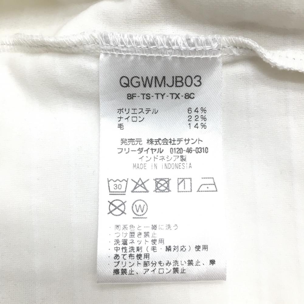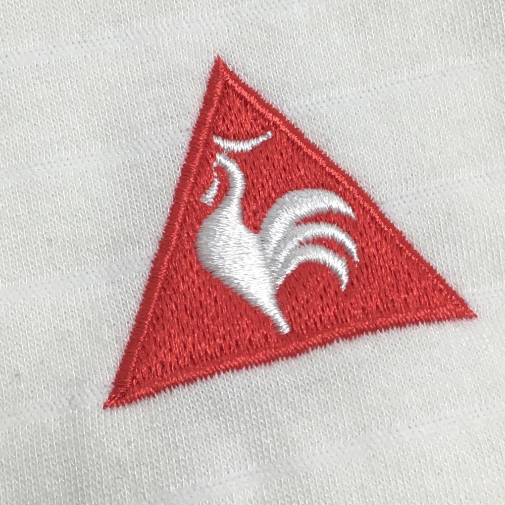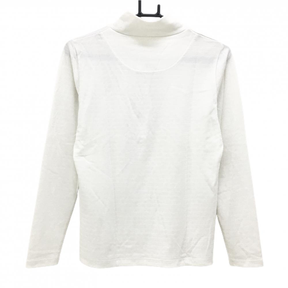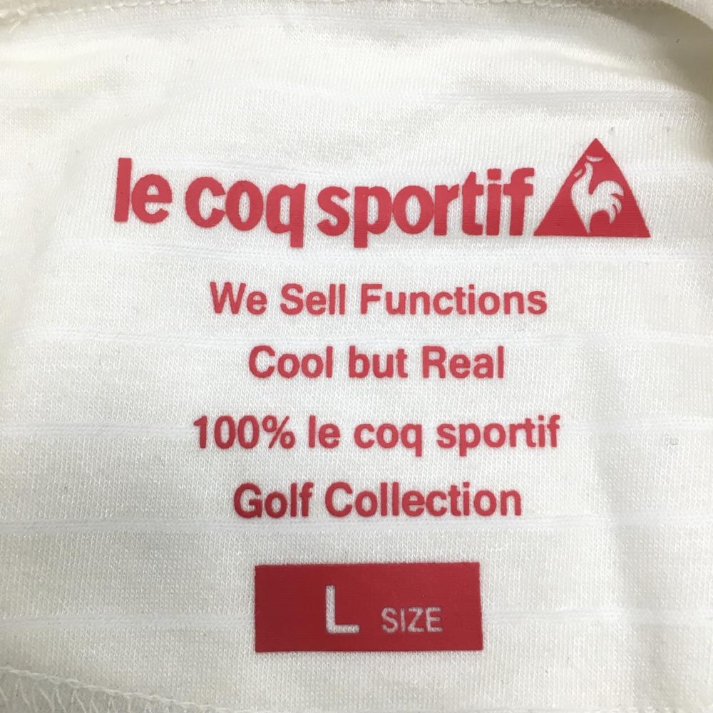 【超美品】ルコック 長袖ハイネックシャツ 白 ボーダー地模様 ウール混 レディース L ゴルフウェア le coq sportif