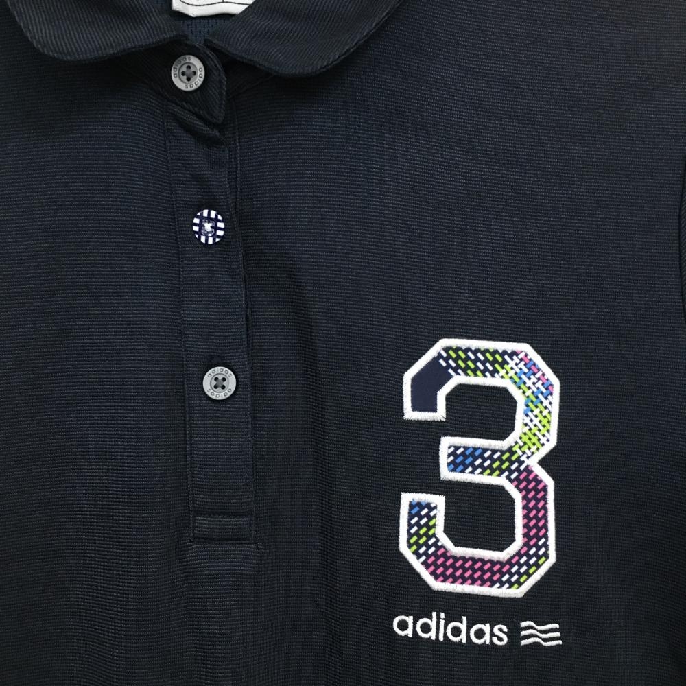 【超美品】アディダス 半袖ポロシャツ ダークネイビー ナンバリング刺しゅう 丸襟 レディース M/M ゴルフウェア adidas