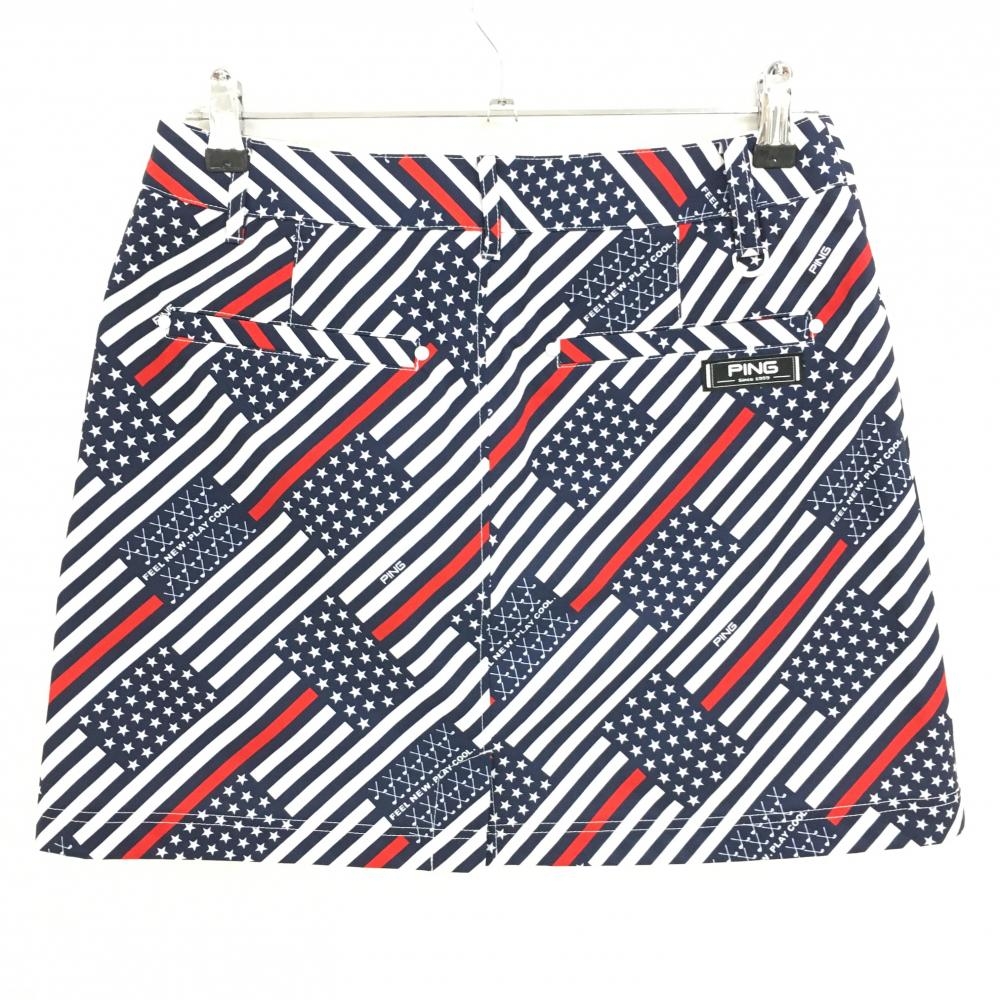 ピン スカート ネイビー×白 総柄 星 レディース L ゴルフウェア PING