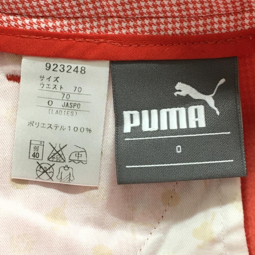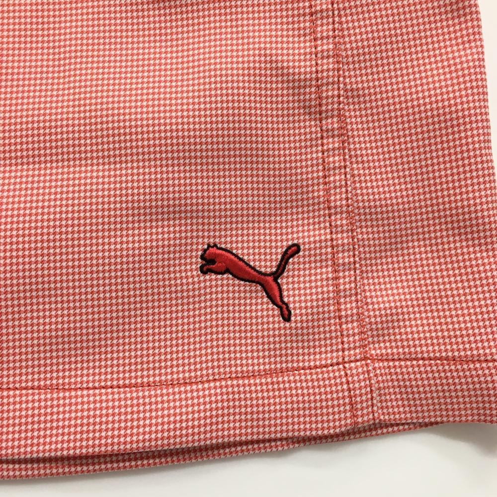 【超美品】プーマ スカート レッド×白 細千鳥格子 裏微起毛 複数ポケット レディース O ゴルフウェア PUMA