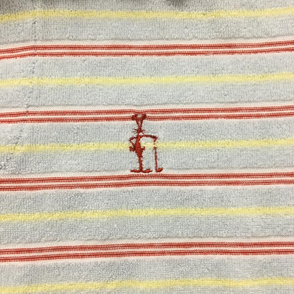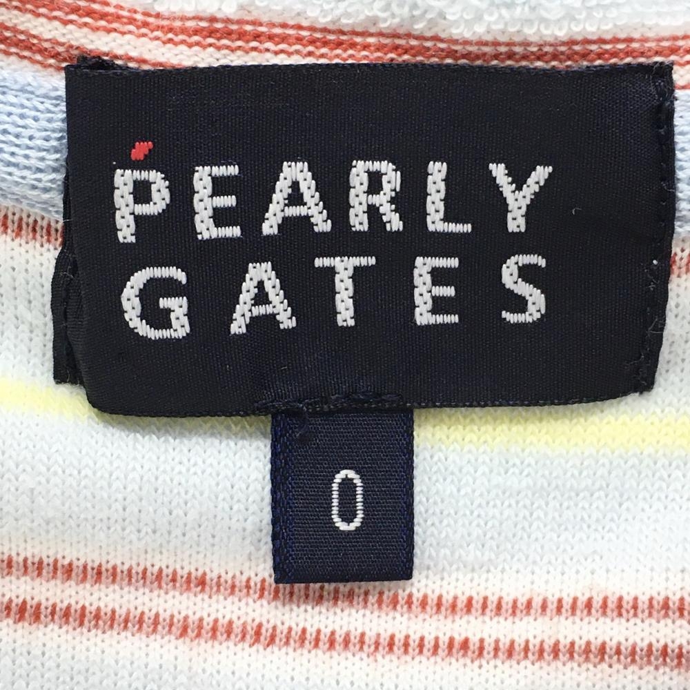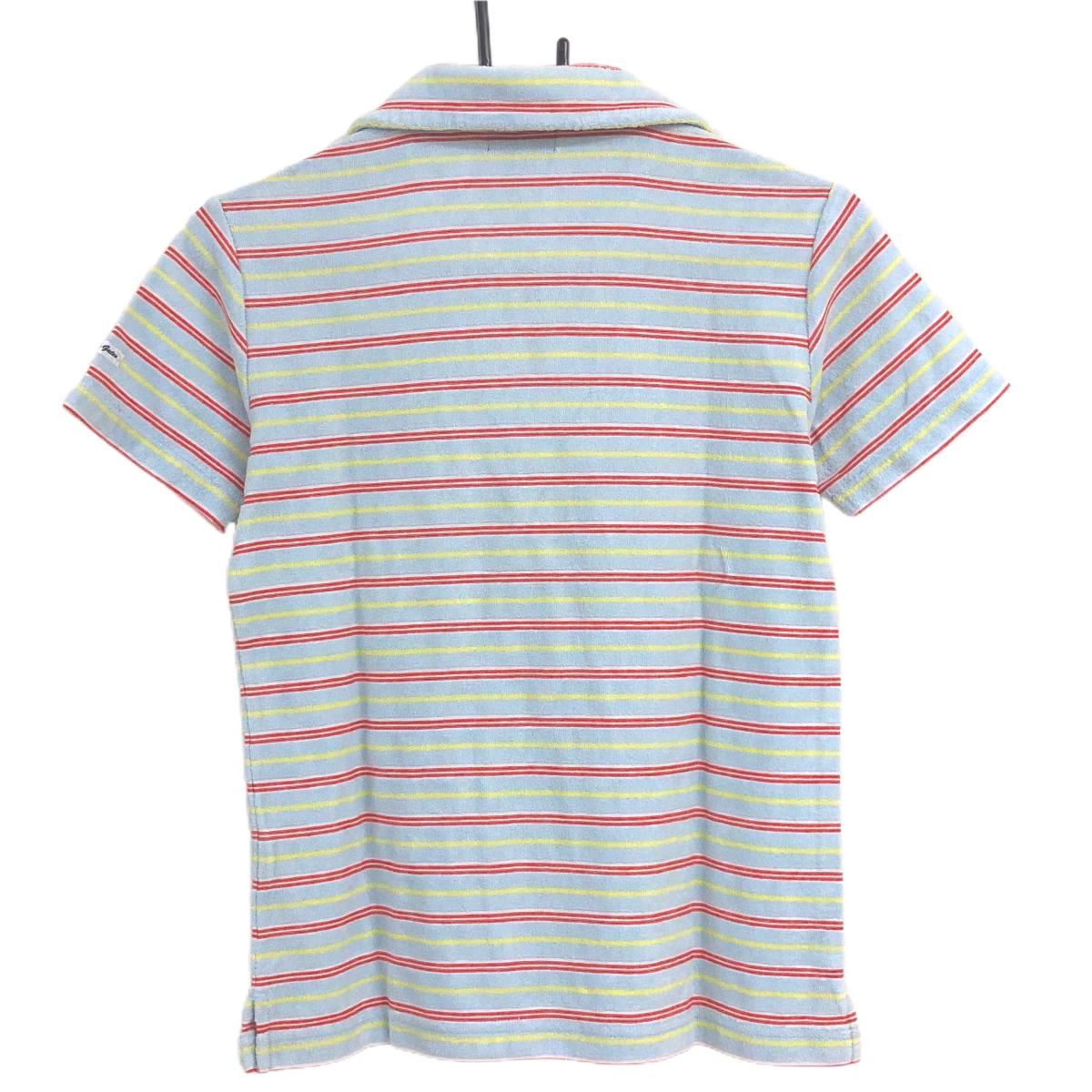 【美品】パーリーゲイツ 半袖スキッパーシャツ ライトブルー×レッド ボーダー パイル地 レディース 0(S) ゴルフウェア PEARLY GATES