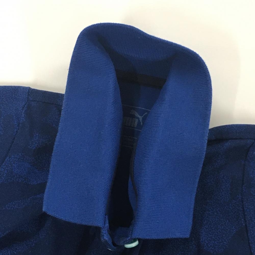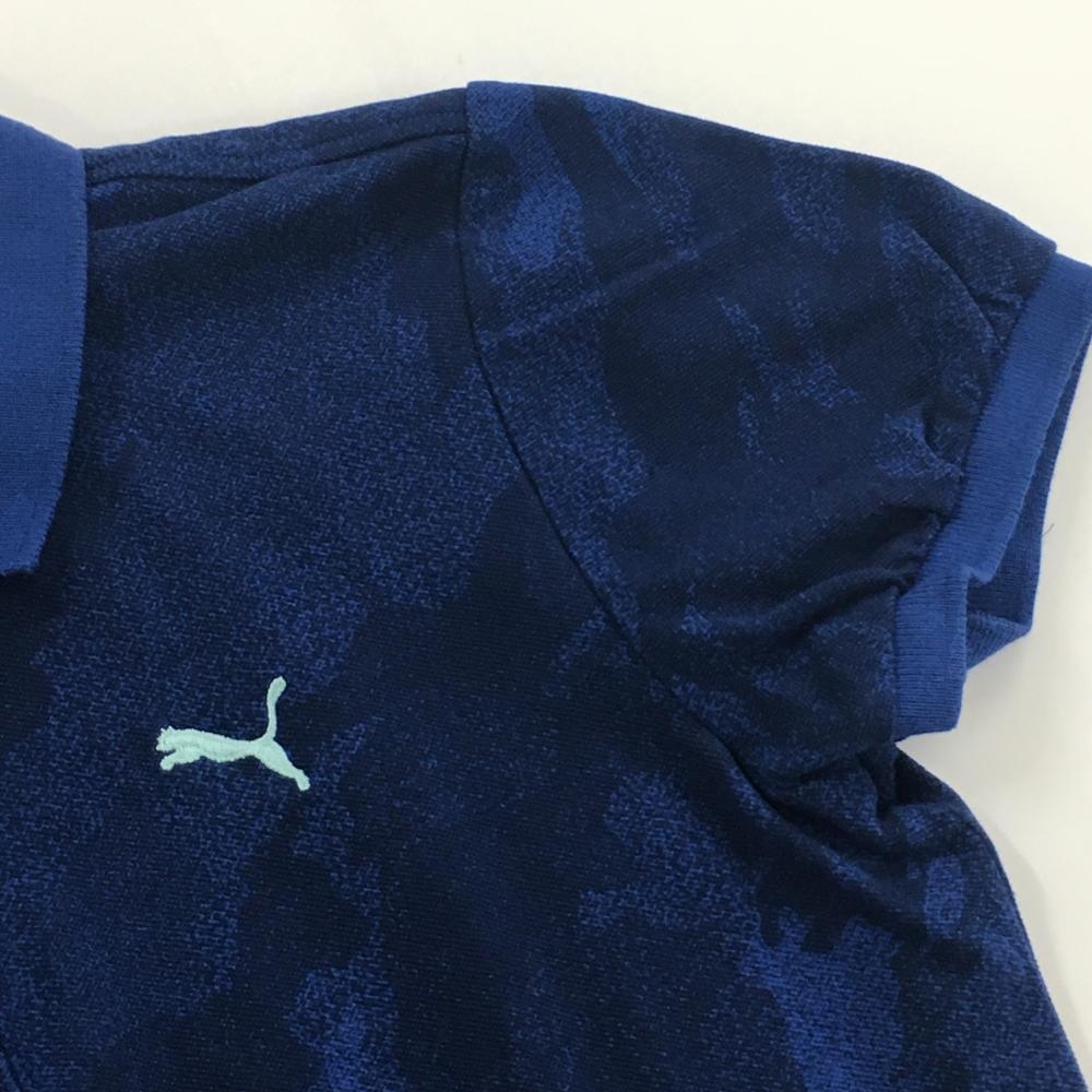 プーマ 半袖ポロシャツ ブルー×ダークブルー 迷彩 カモフラ レディース S ゴルフウェア PUMA