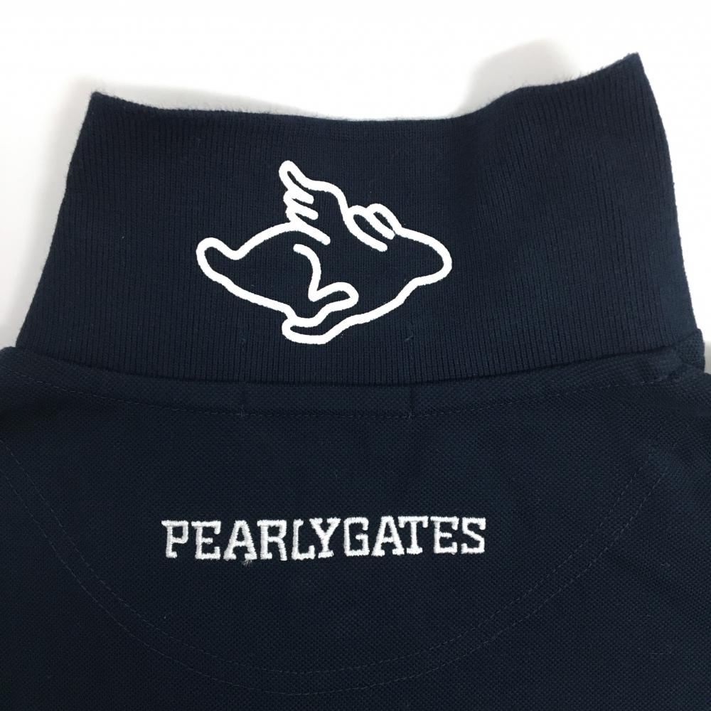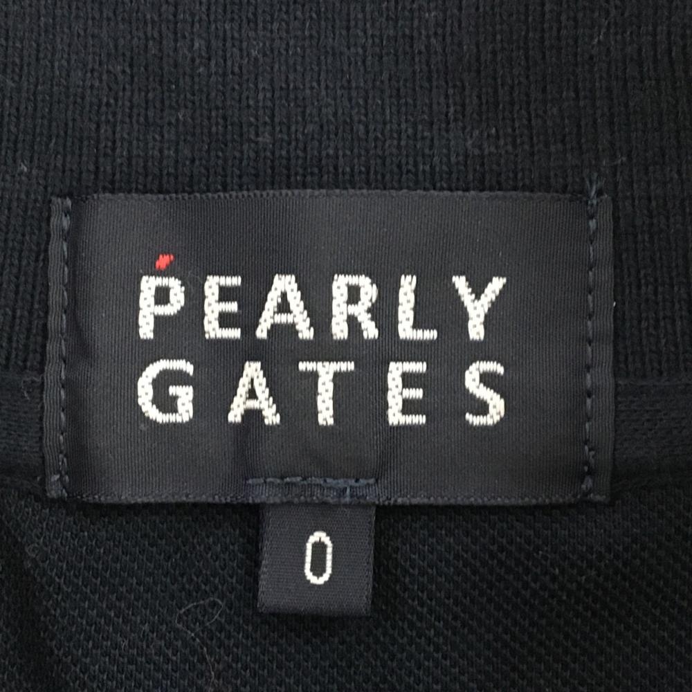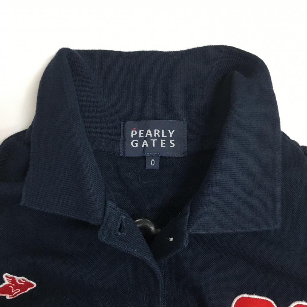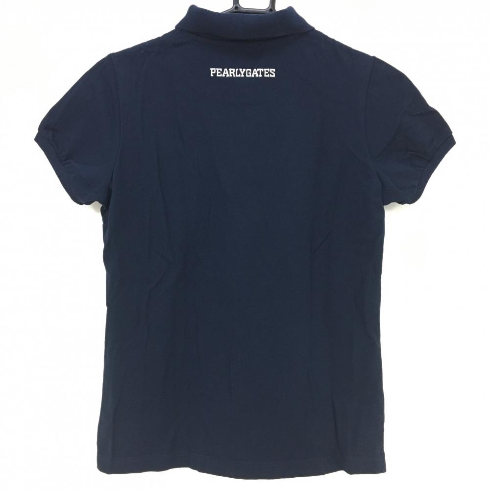 パーリーゲイツ 半袖ポロシャツ ネイビー×白 襟裏プリント フェルトロゴワッペン レディース 0(S) ゴルフウェア PEARLY GATES