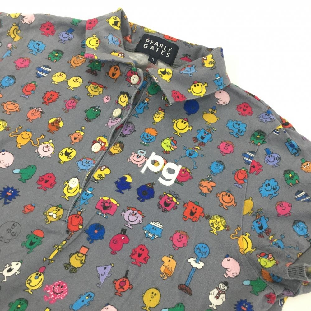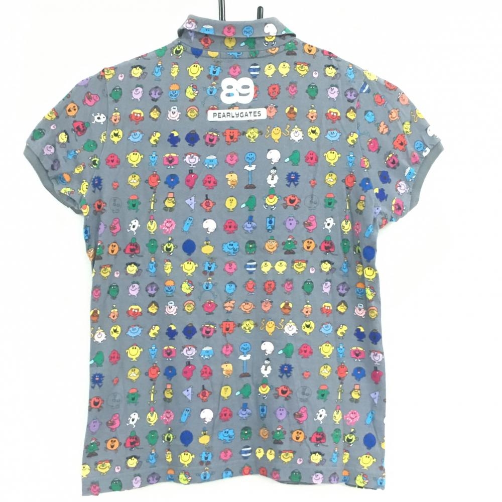 【美品】パーリーゲイツ×MR.MENLITTLEMISS 半袖ポロシャツ グレー×マルチカラー 総柄 レディース 0(S) ゴルフウェア PEARLY GATES