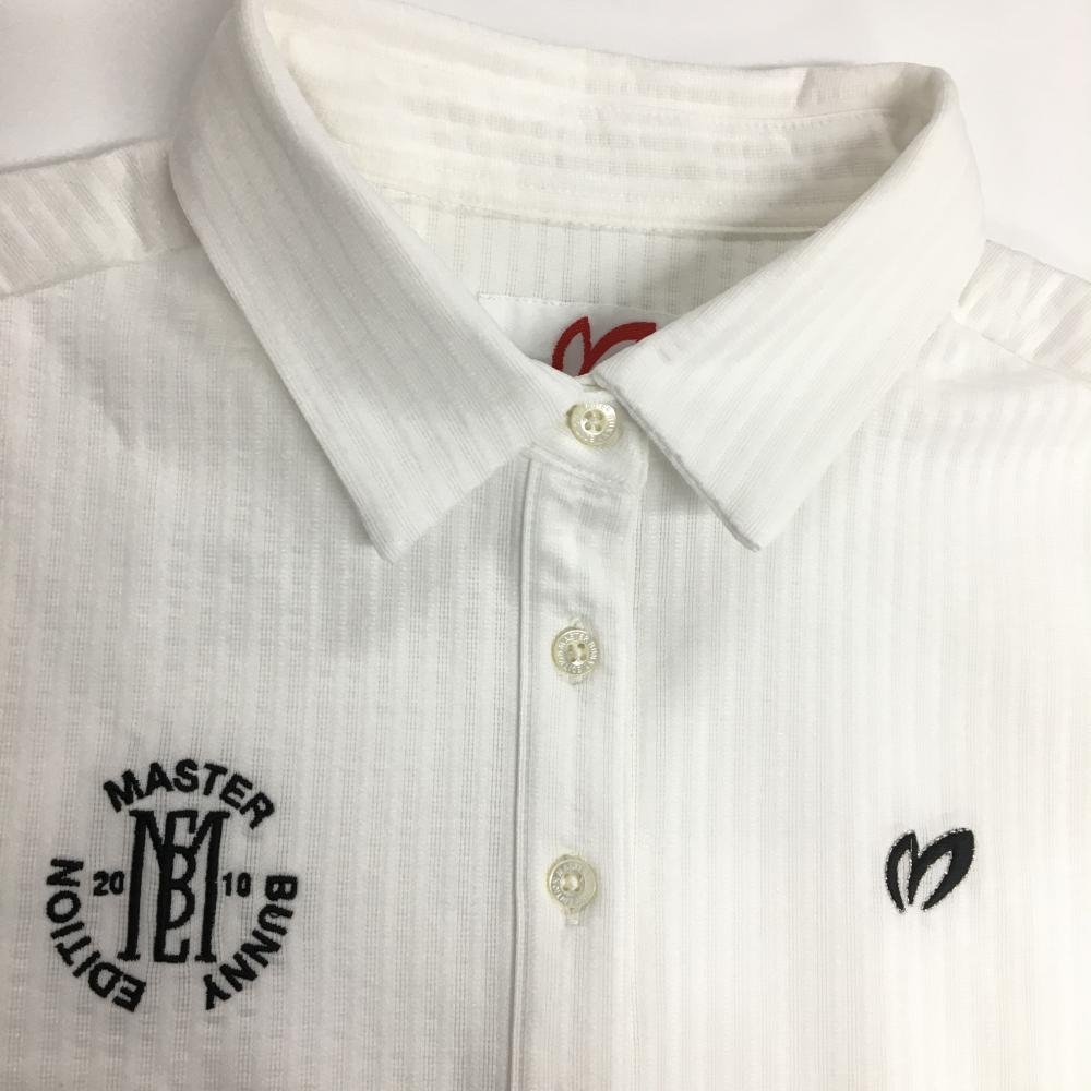 【超美品】マスターバニー 半袖ポロシャツ 白 ストライプ織生地 レディース 1(M) ゴルフウェア 2023年モデル MASTER BUNNY EDITION
