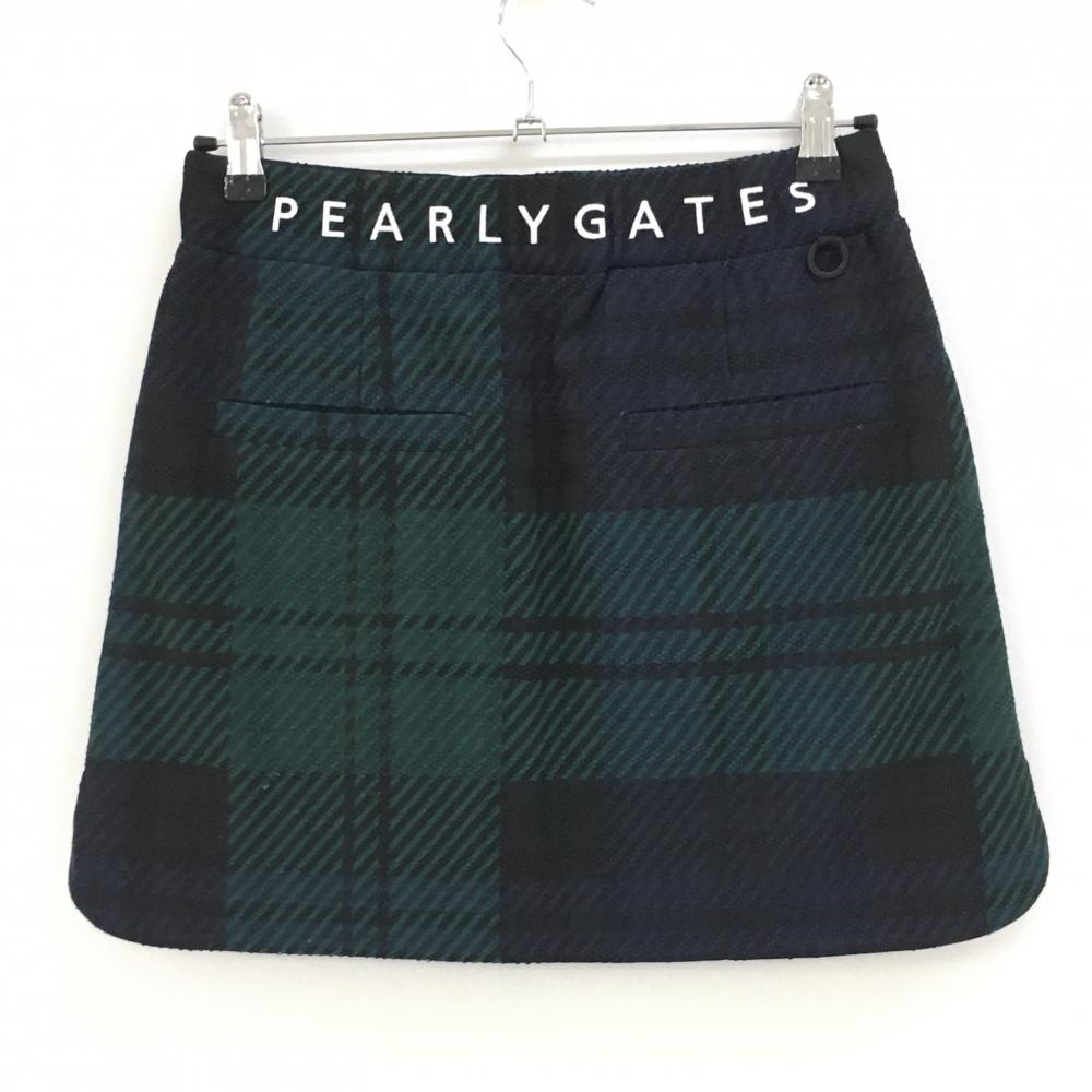 パーリーゲイツ スカート ネイビー×グリーン チェック 調整紐ロゴ レディース 1(M) ゴルフウェア 2023年モデル PEARLY GATES