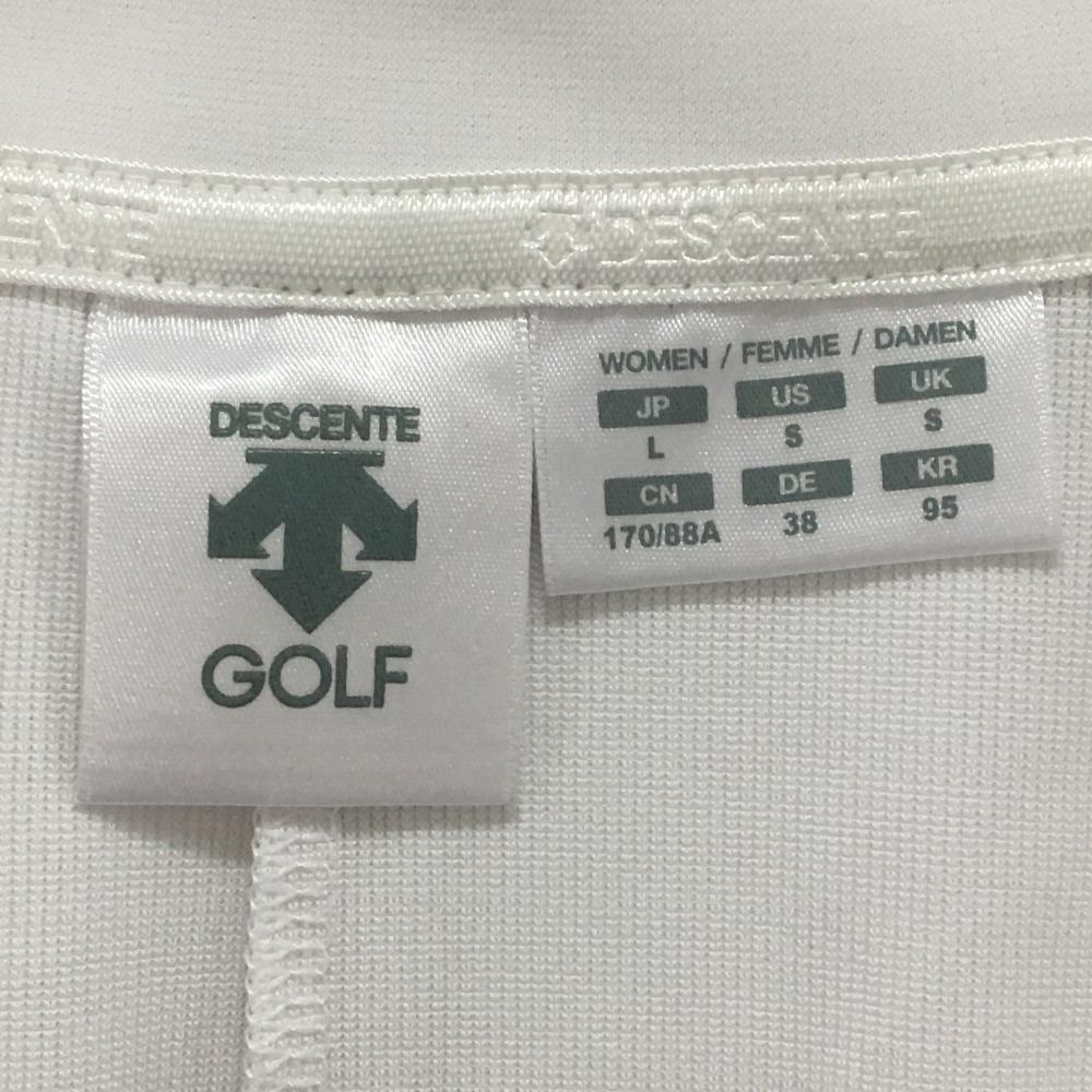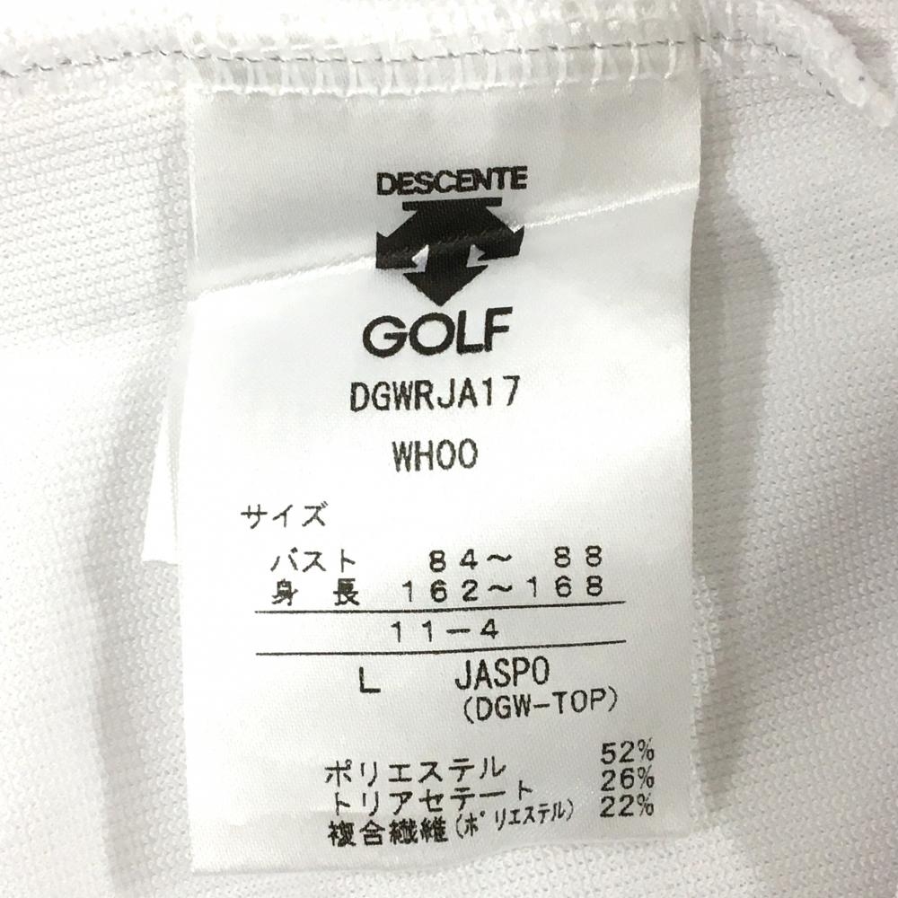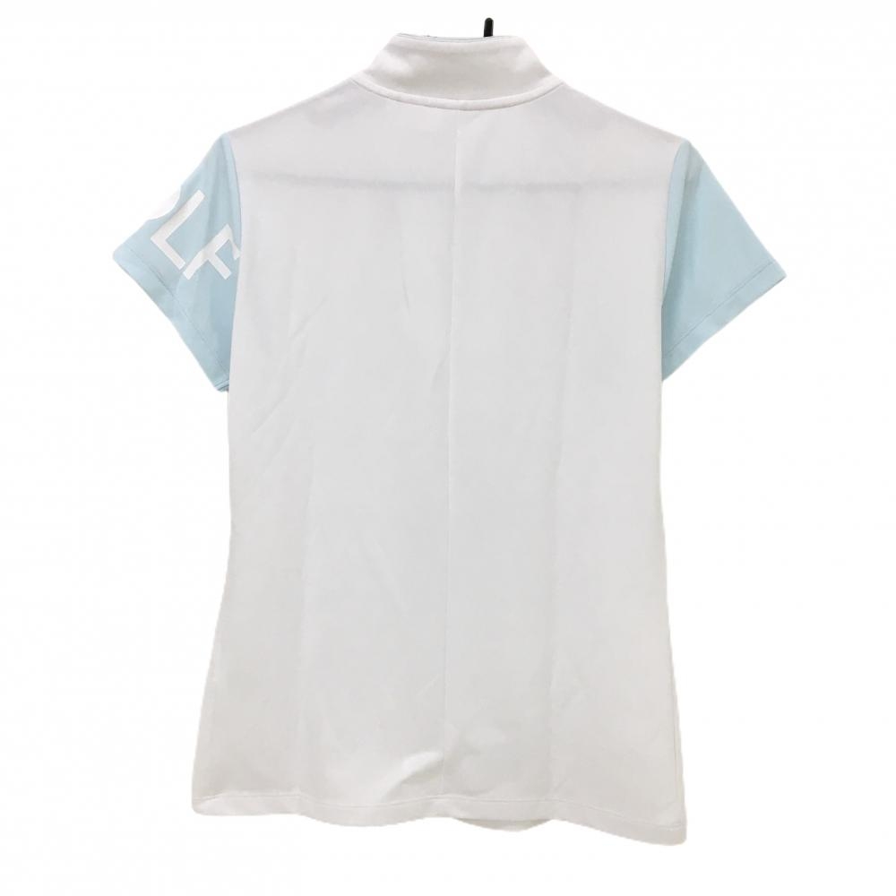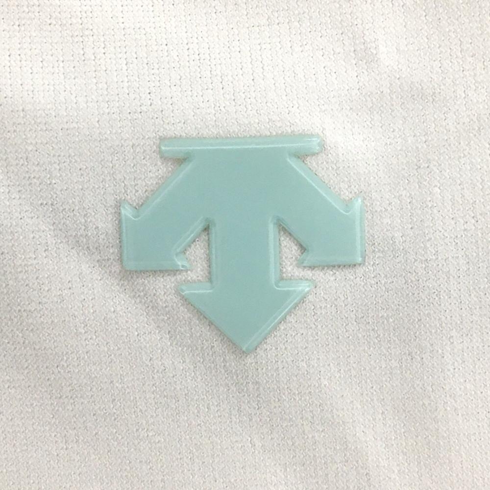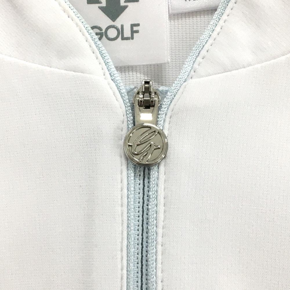 【超美品】デサントゴルフ 半袖ポロシャツ 白×ライトブルー スタンドカラー レディース L ゴルフウェア DESCENTE