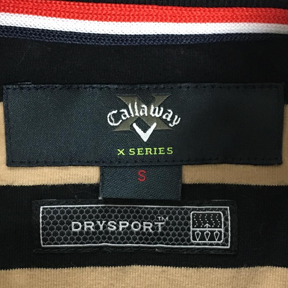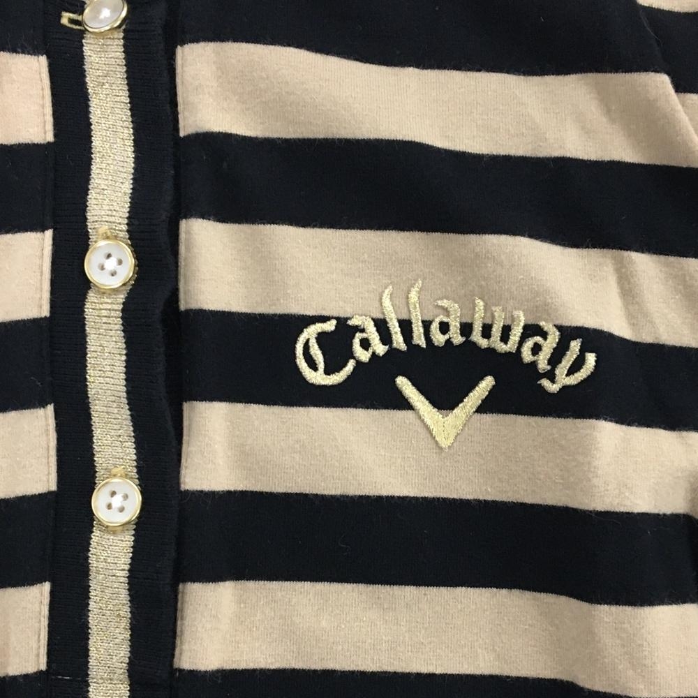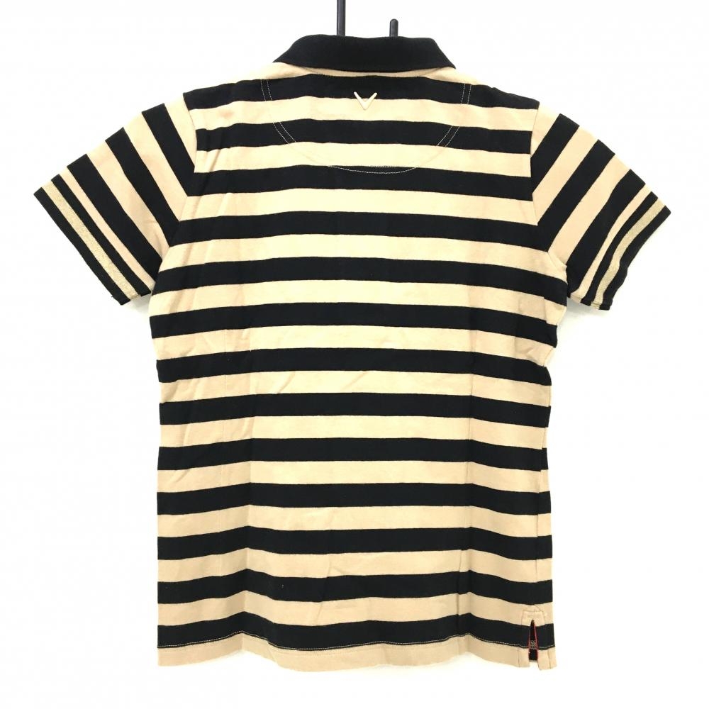 【美品】キャロウェイ 半袖ポロシャツ ベージュ×黒 ボーダー DRYSPORT ラメ糸 レディース S ゴルフウェア Callaway