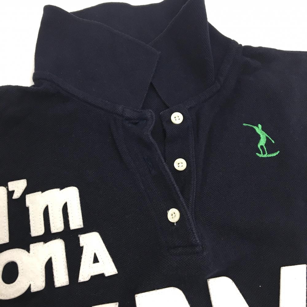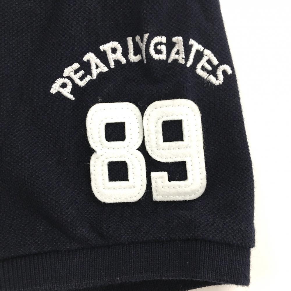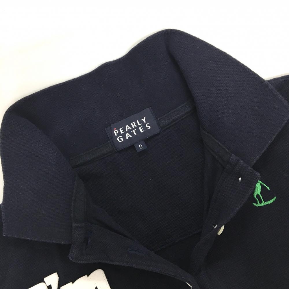 パーリーゲイツ 半袖ポロシャツ ネイビー×白 フェルトワッペン サーフィン レディース 0(S) ゴルフウェア PEARLY GATES