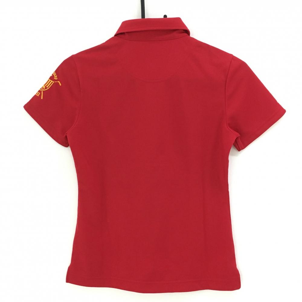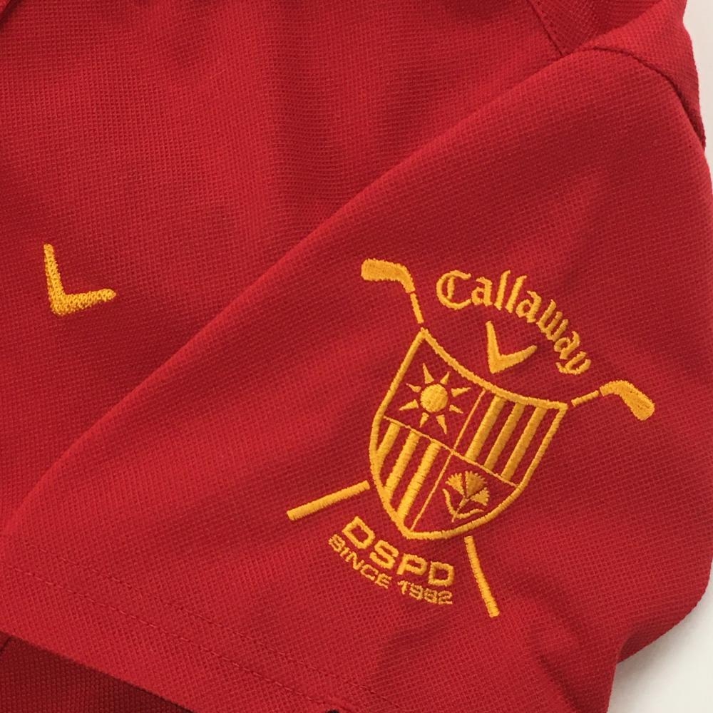 【超美品】キャロウェイ 半袖ポロシャツ レッド×イエローオレンジ ロゴ刺しゅう レディース M ゴルフウェア Callaway