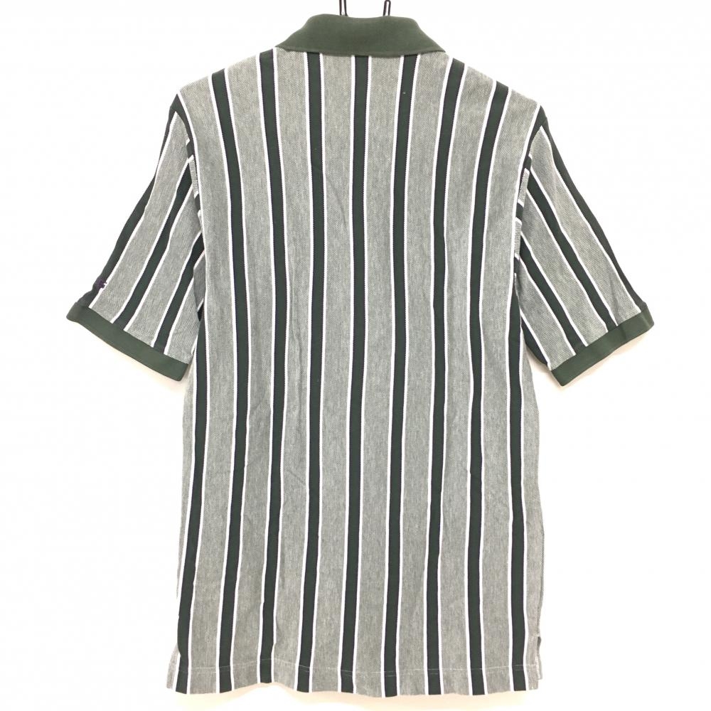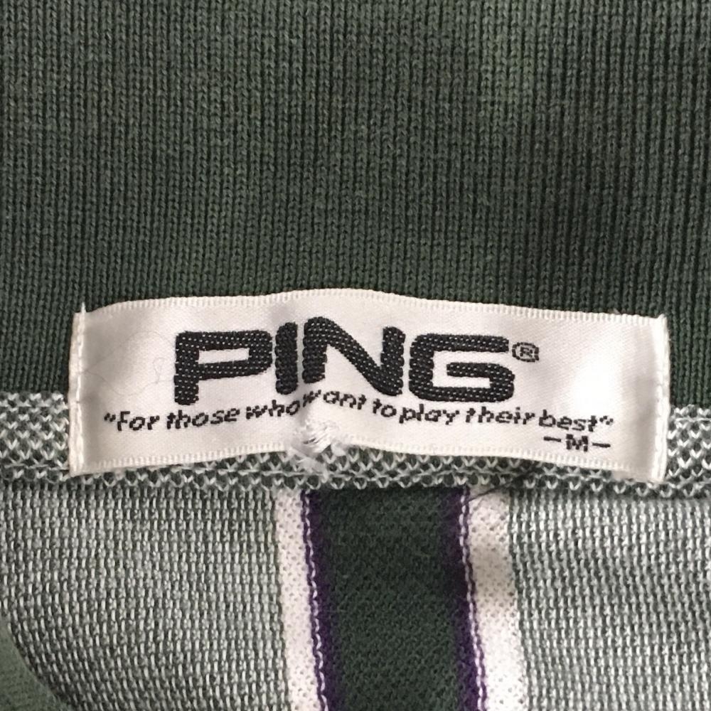 ピン 半袖ポロシャツ グリーン×白 ボーダー メンズ M ゴルフウェア PING