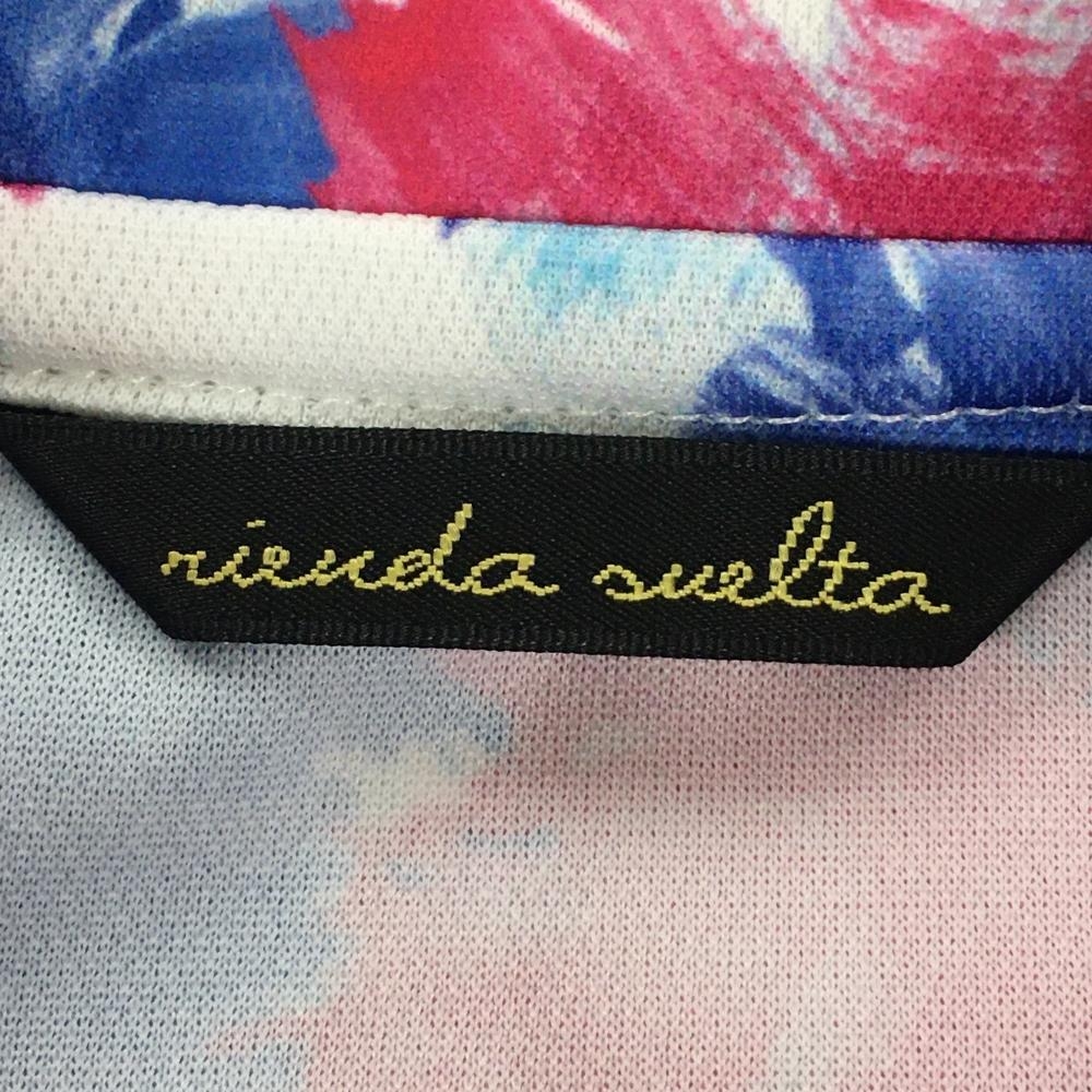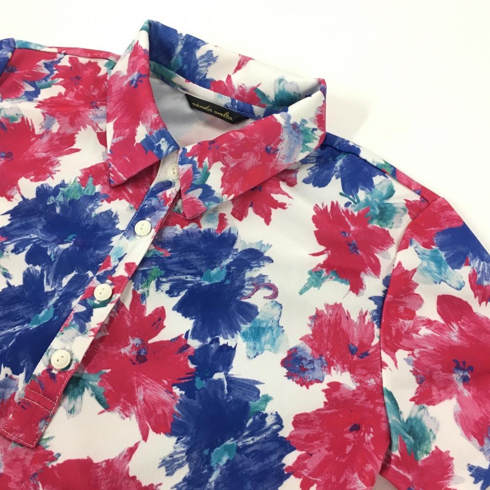 【超美品】リエンダスエルタ 半袖ポロシャツ 白×ピンク×ブルー 花柄 レディース S ゴルフウェア rienda suelta