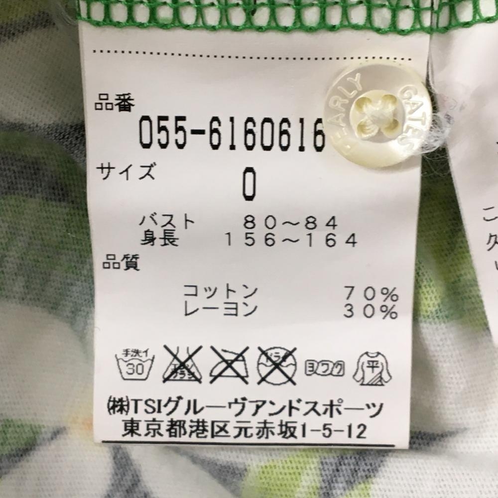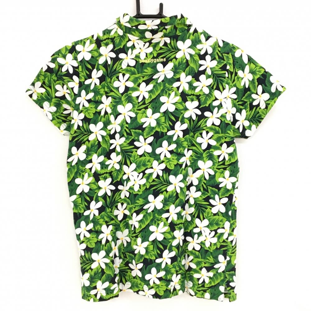 【美品】パーリーゲイツ 半袖ポロシャツ グリーン×白 花柄 レディース 0(S) ゴルフウェア PEARLY GATES