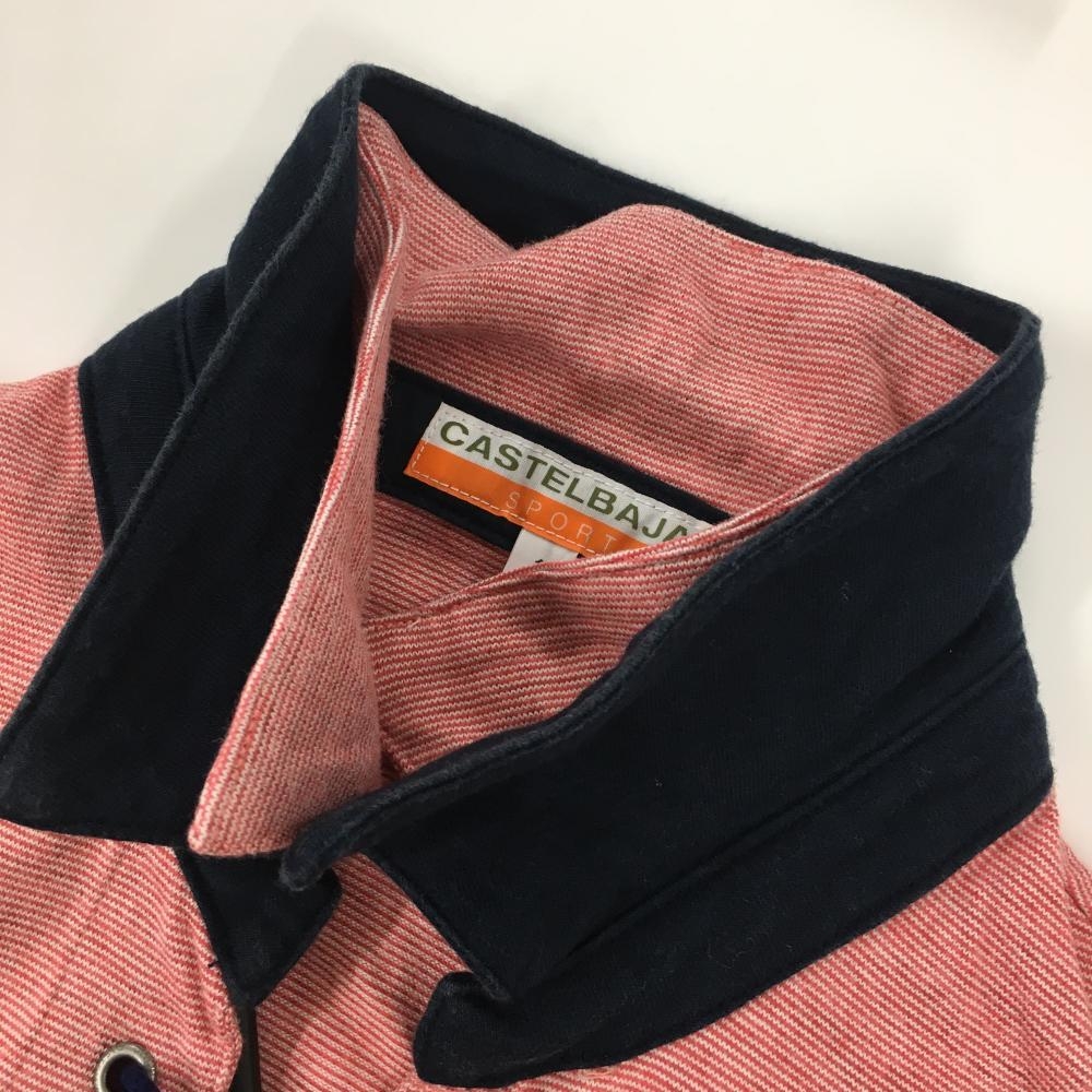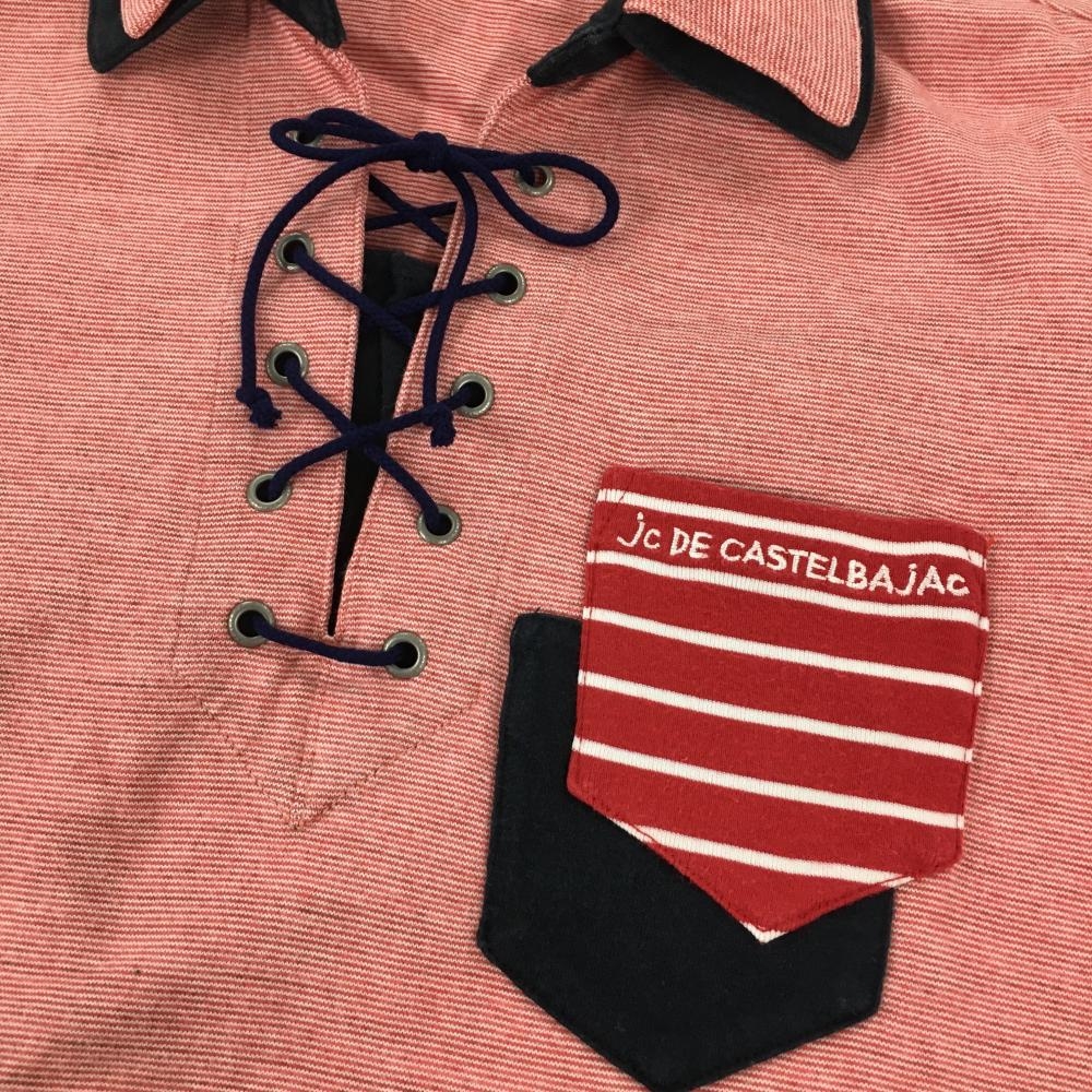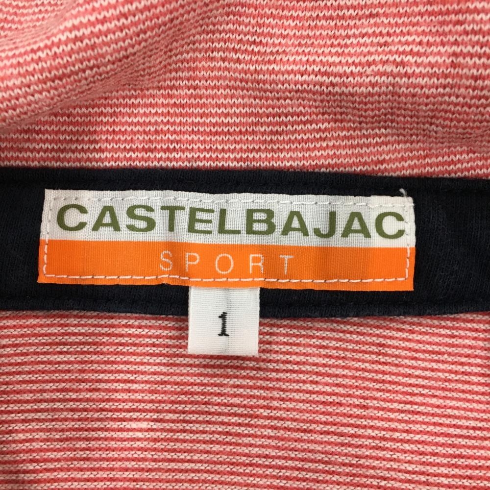 カステルバジャック 半袖ポロシャツ レッド×ネイビー 細ボーダー 二重襟 レースアップ レディース 1 ゴルフウェア CASTELBAJAC