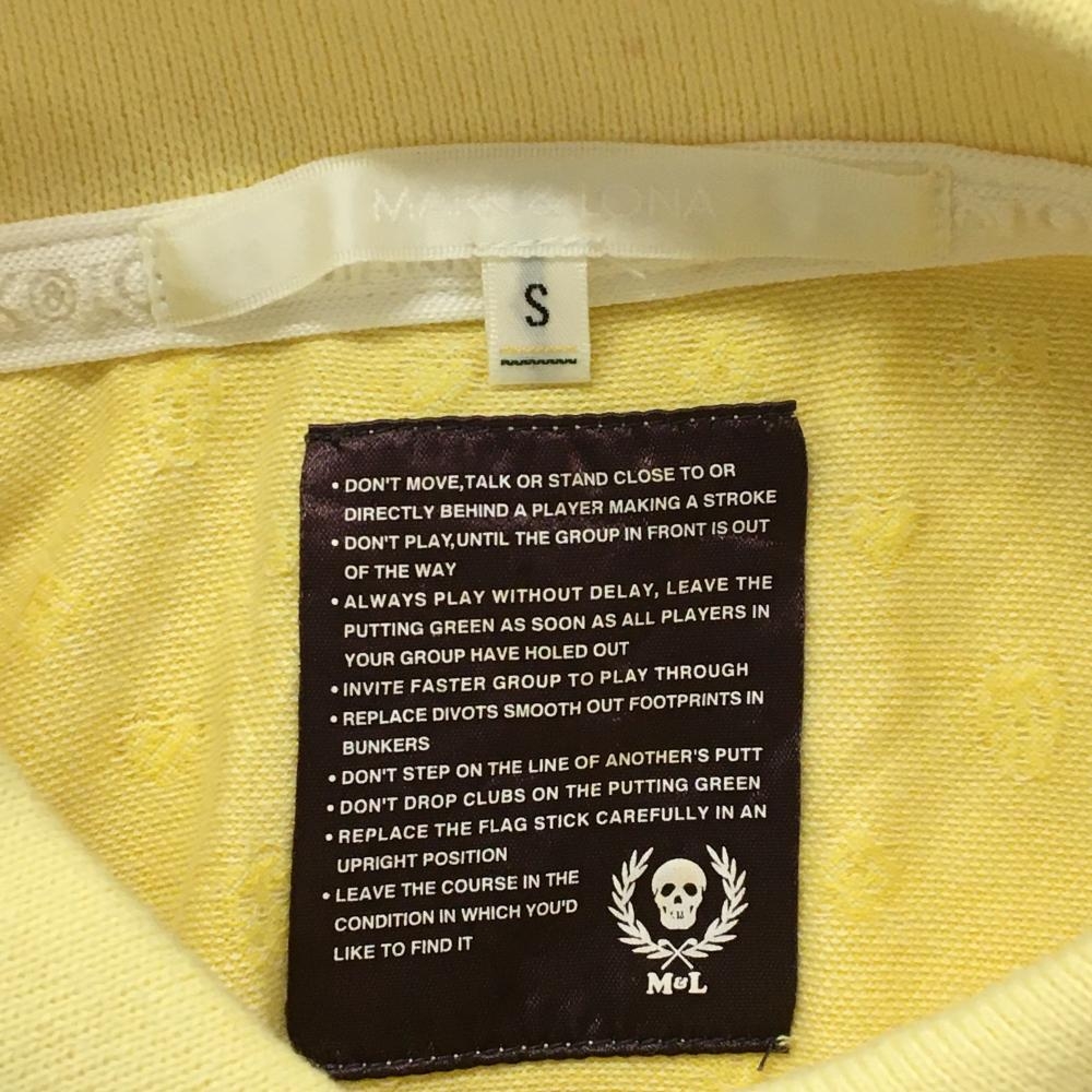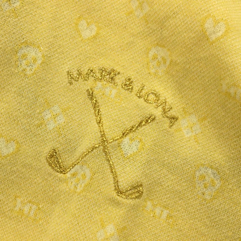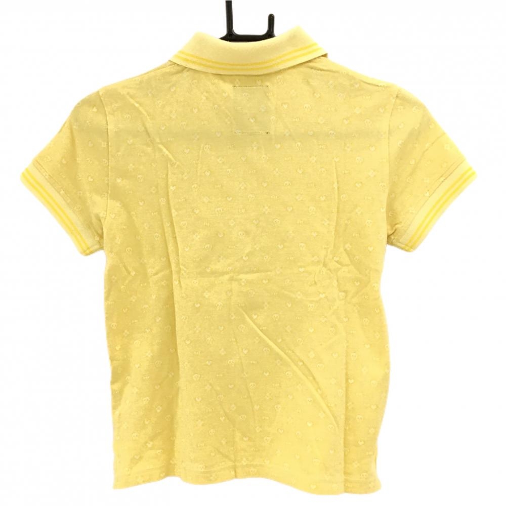 【超美品】マークアンドロナ 半袖ポロシャツ イエロー スカル総柄 ハート柄 コットン100% レディース S ゴルフウェア MARK&LONA