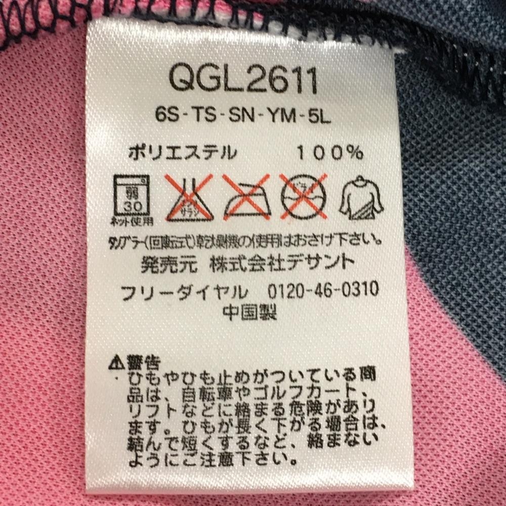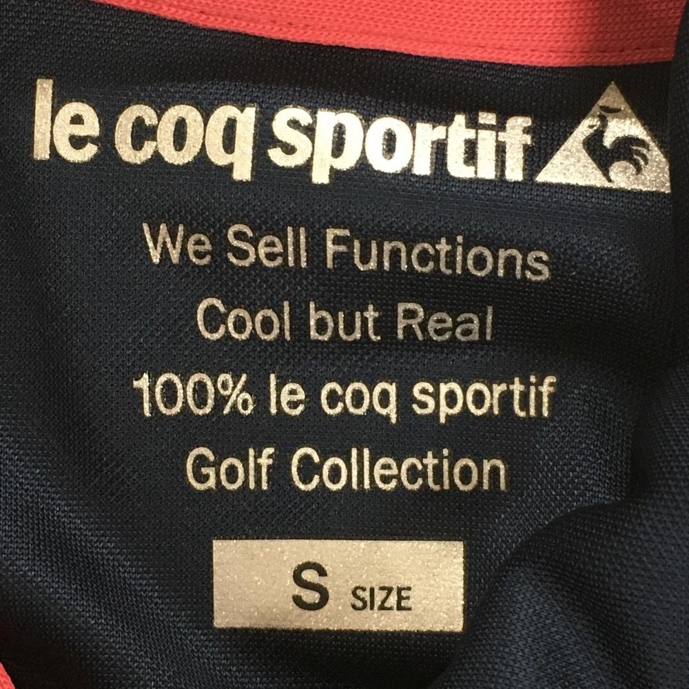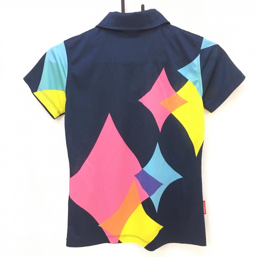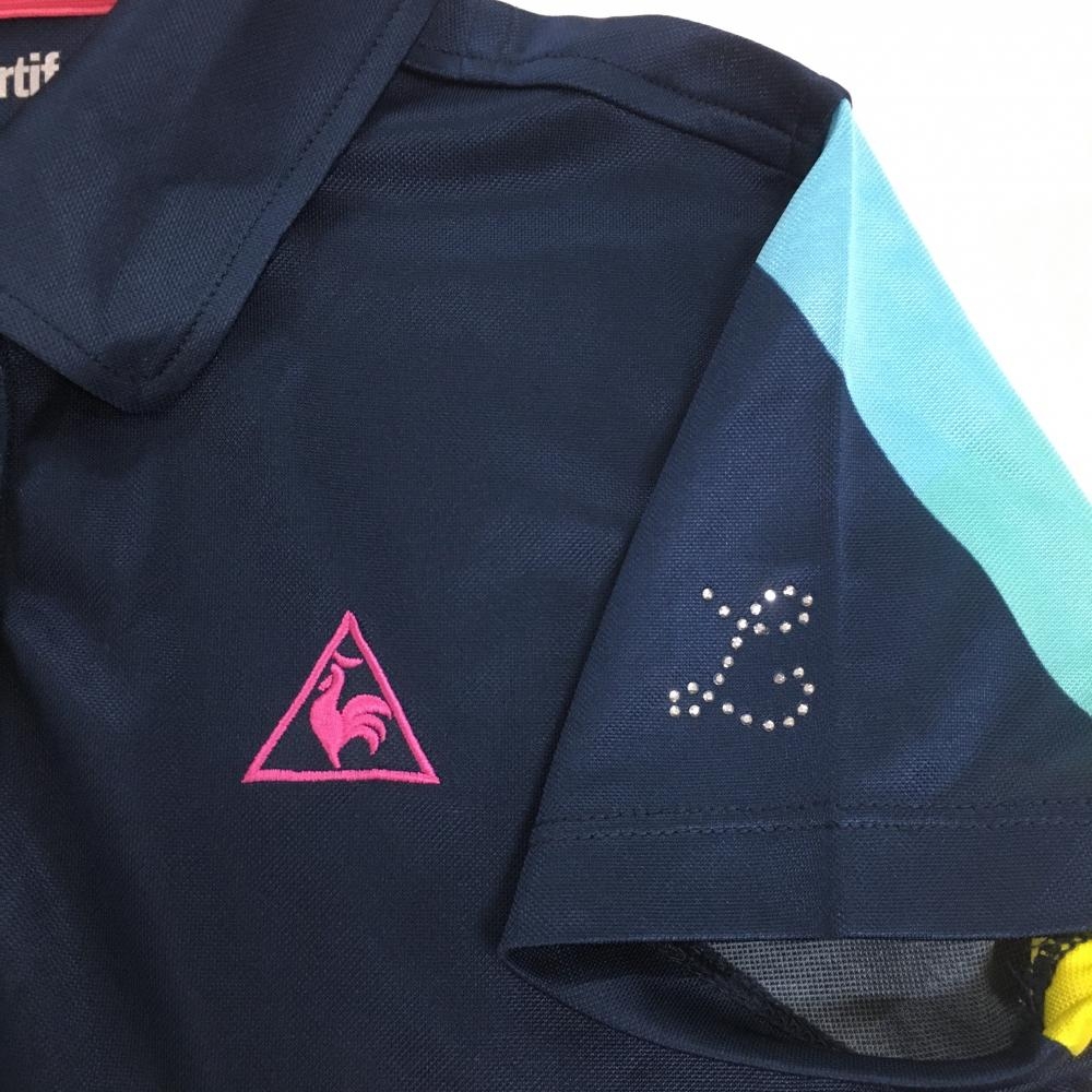 ルコック 半袖ポロシャツ ネイビー×ピンク ダイヤ柄 袖ラインストーン レディース S ゴルフウェア le coq sportif