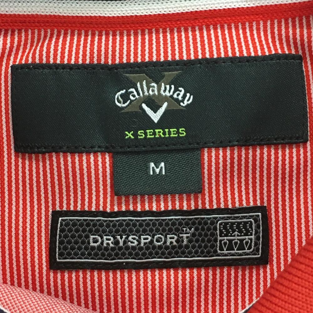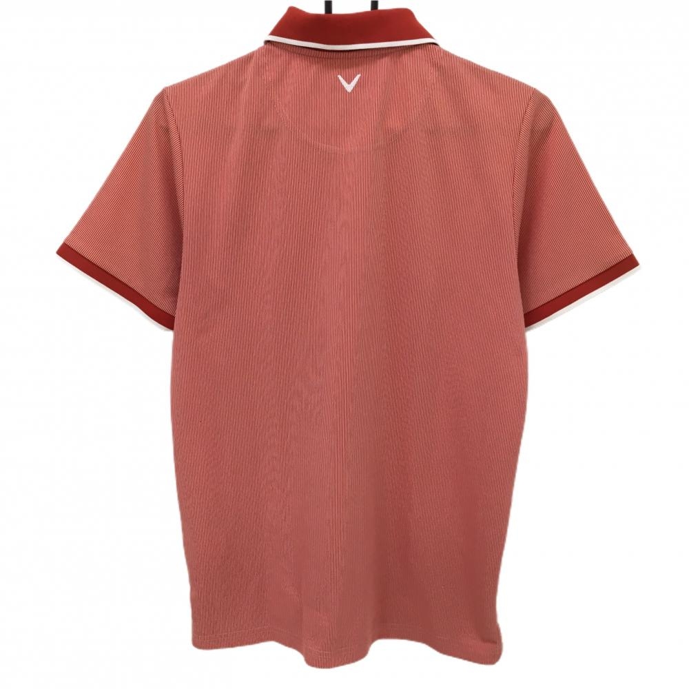 キャロウェイ 半袖ポロシャツ レッド×白 細ストライプ メンズ M ゴルフウェア Callaway