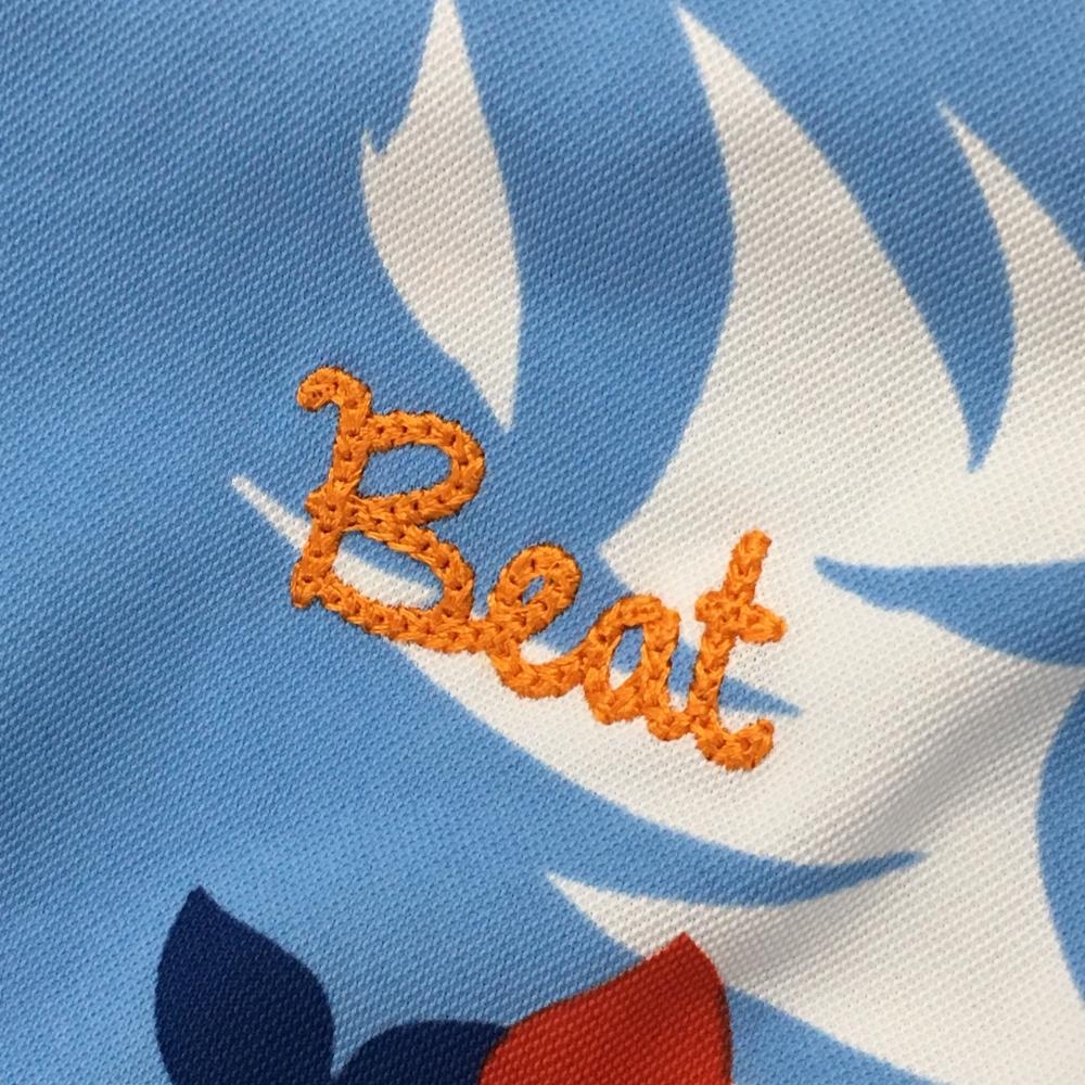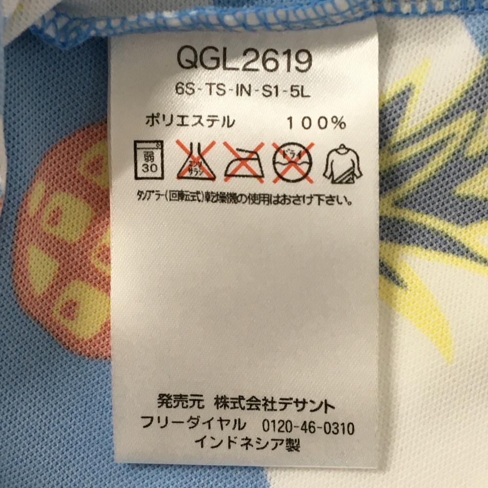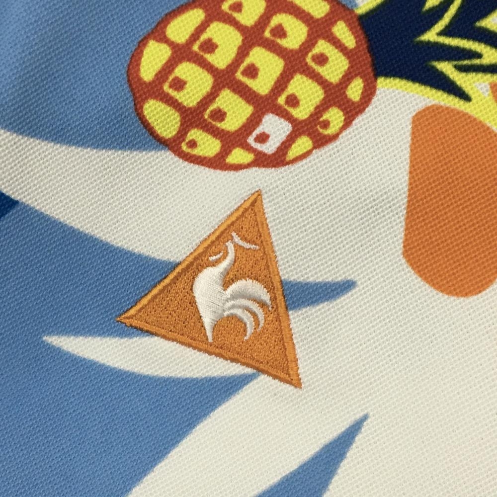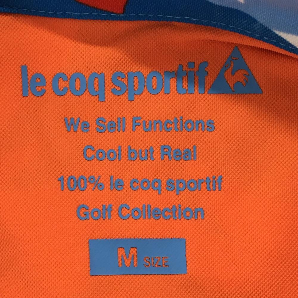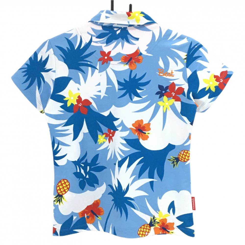 【超美品】ルコック 半袖ポロシャツ ライトブルー×白 ハイビスカス柄 ロゴ刺しゅう レディース M ゴルフウェア le coq sportif