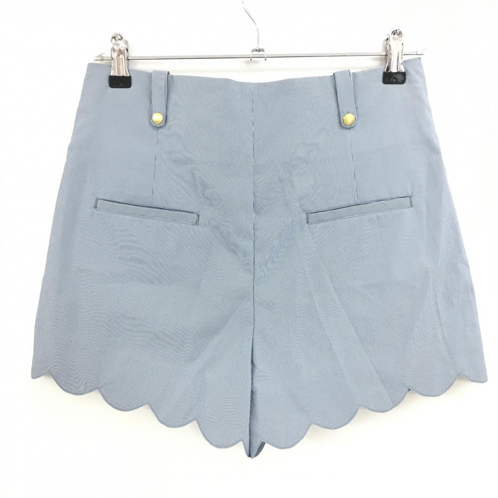 【超美品】マークアンドロナ キュロットスカート ネイビー×白 細ストライプ スカラップ レディース M ゴルフウェア MARK&LONA
