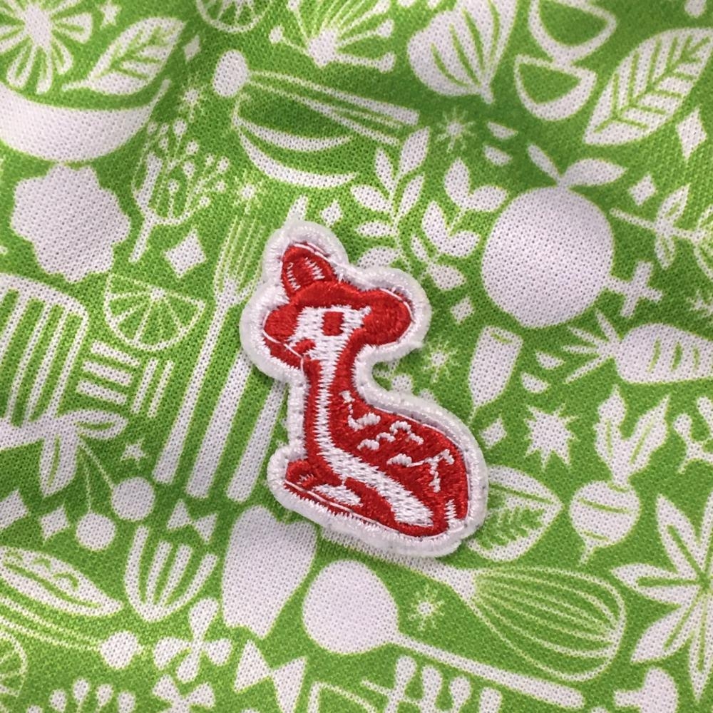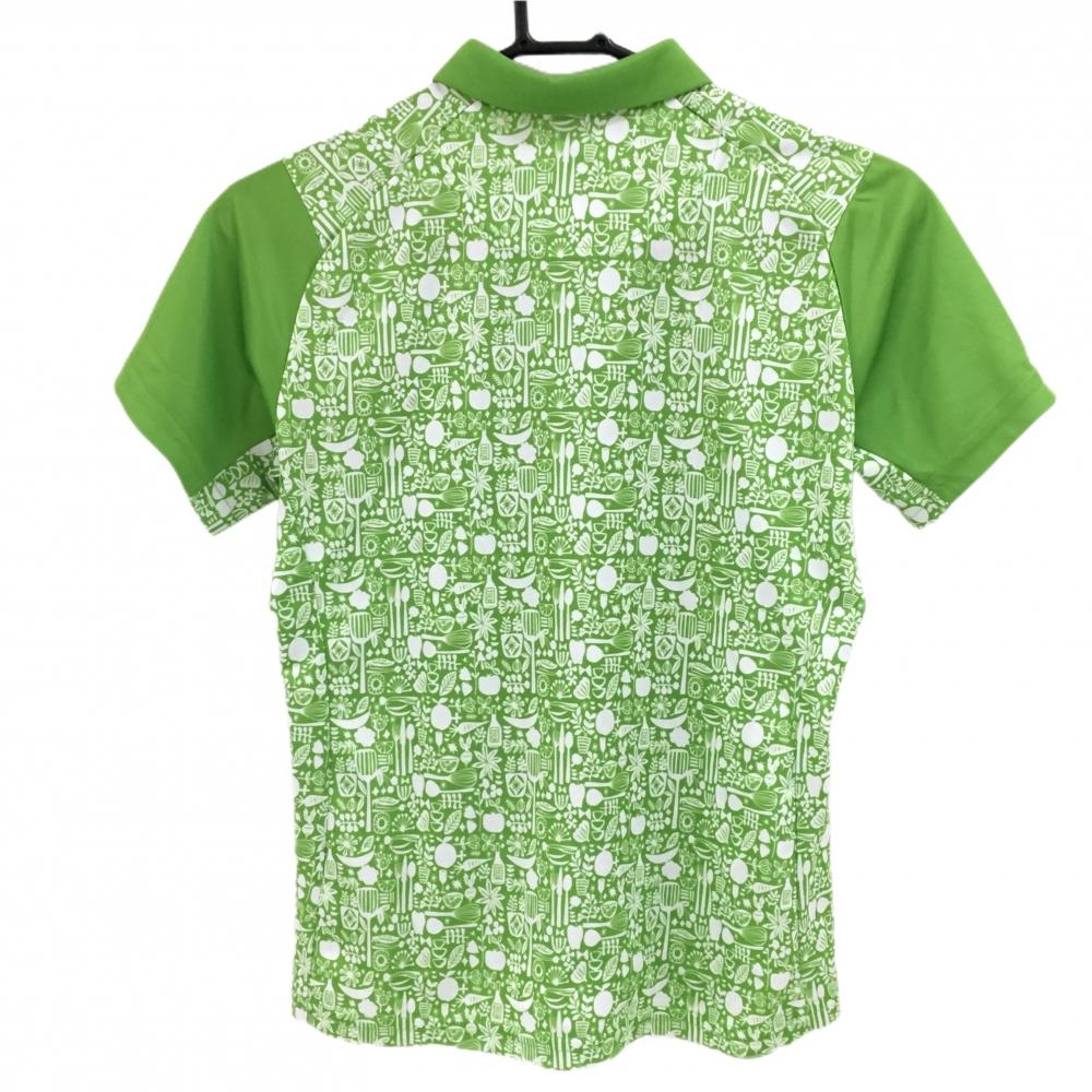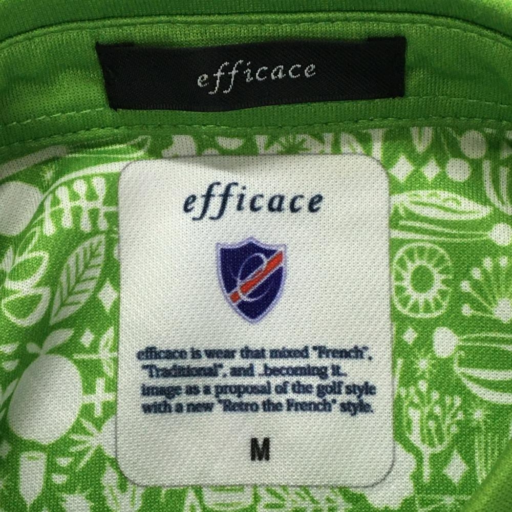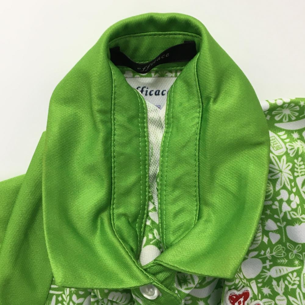 【美品】エフィカス 半袖ポロシャツ ライトグリーン×白 身頃総柄 レディース M ゴルフウェア efficace