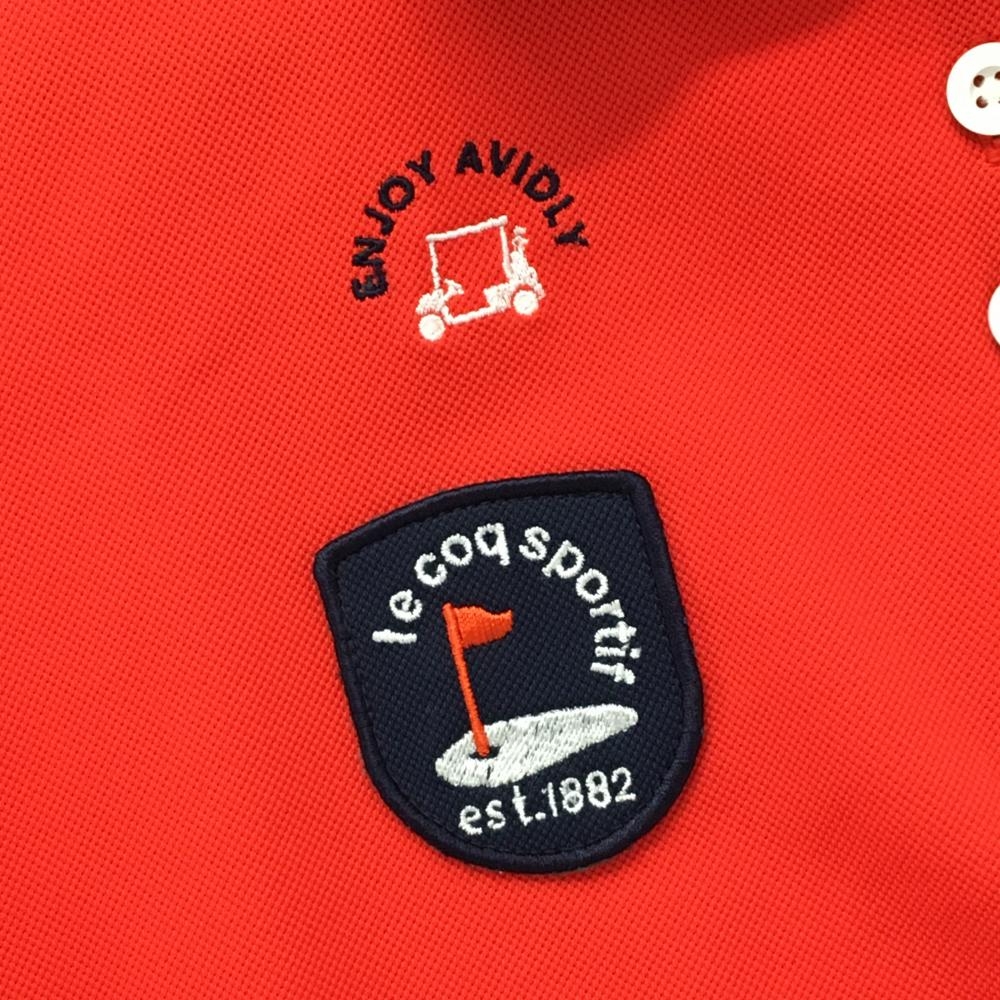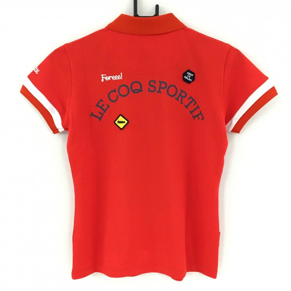 【超美品】ルコック 半袖ポロシャツ レッド×白 ロゴ刺しゅう ワッペン レディース M ゴルフウェア le coq sportif