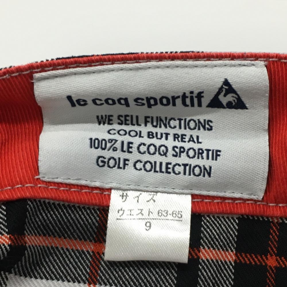 【美品】ルコックゴルフ パンツ ライトグレー×黒×レッド チェック レディース 9 ゴルフウェア le coq sportif