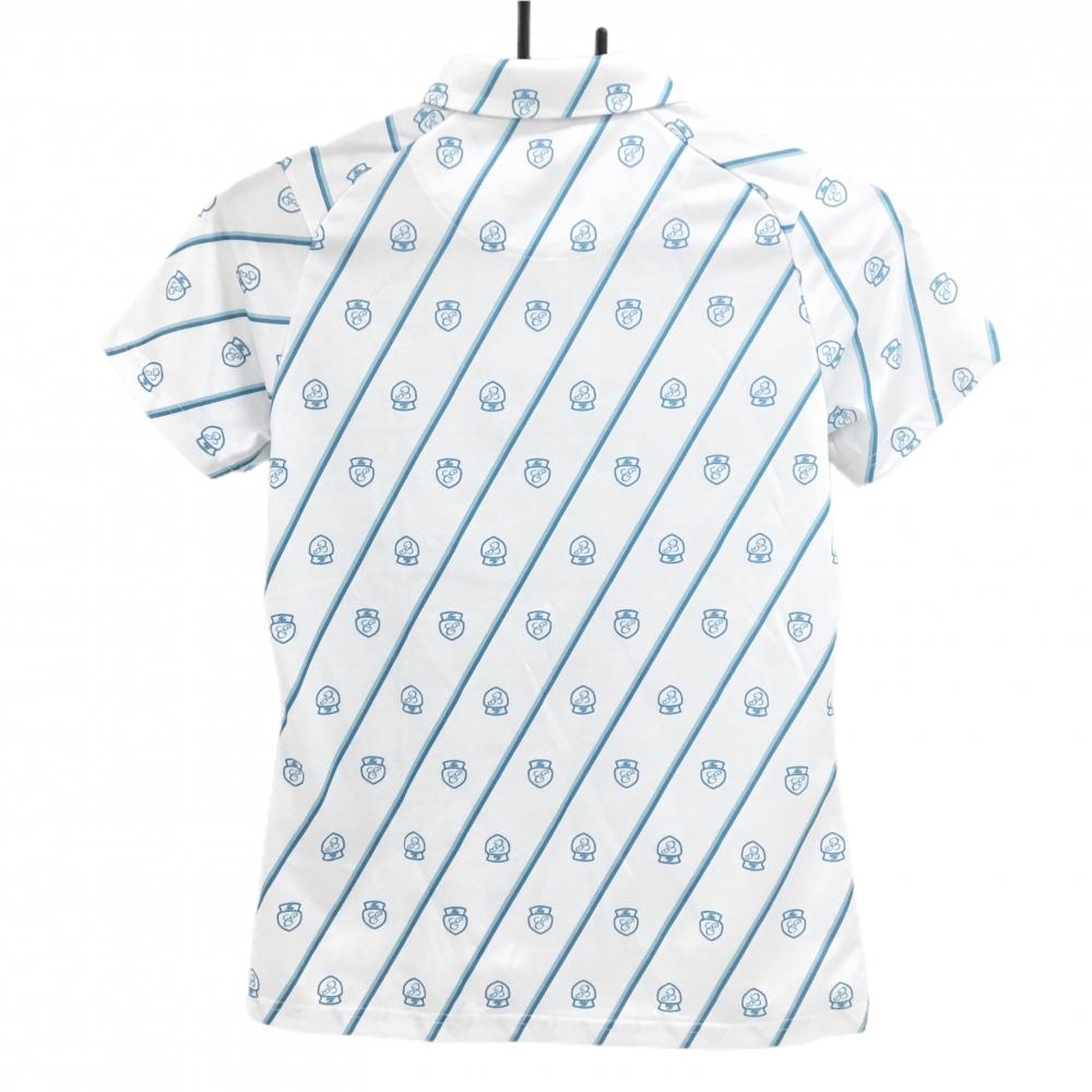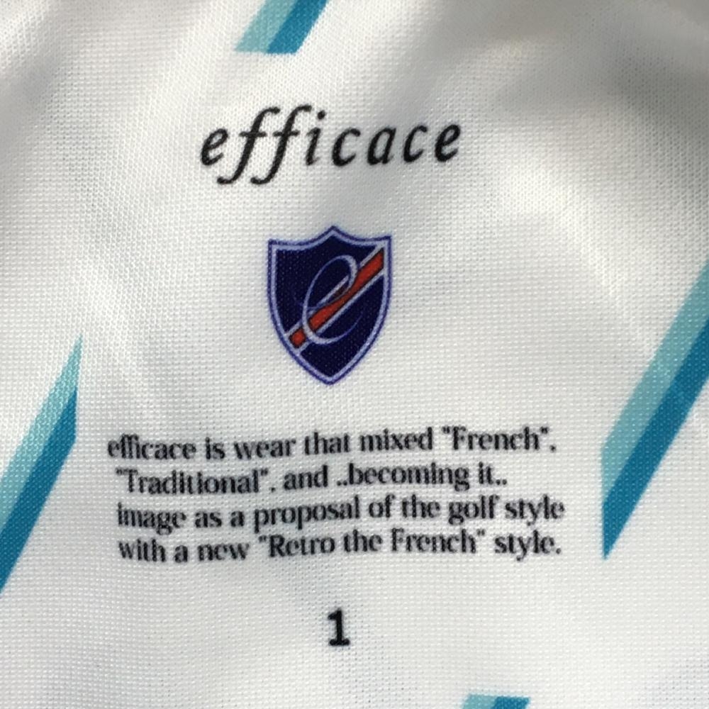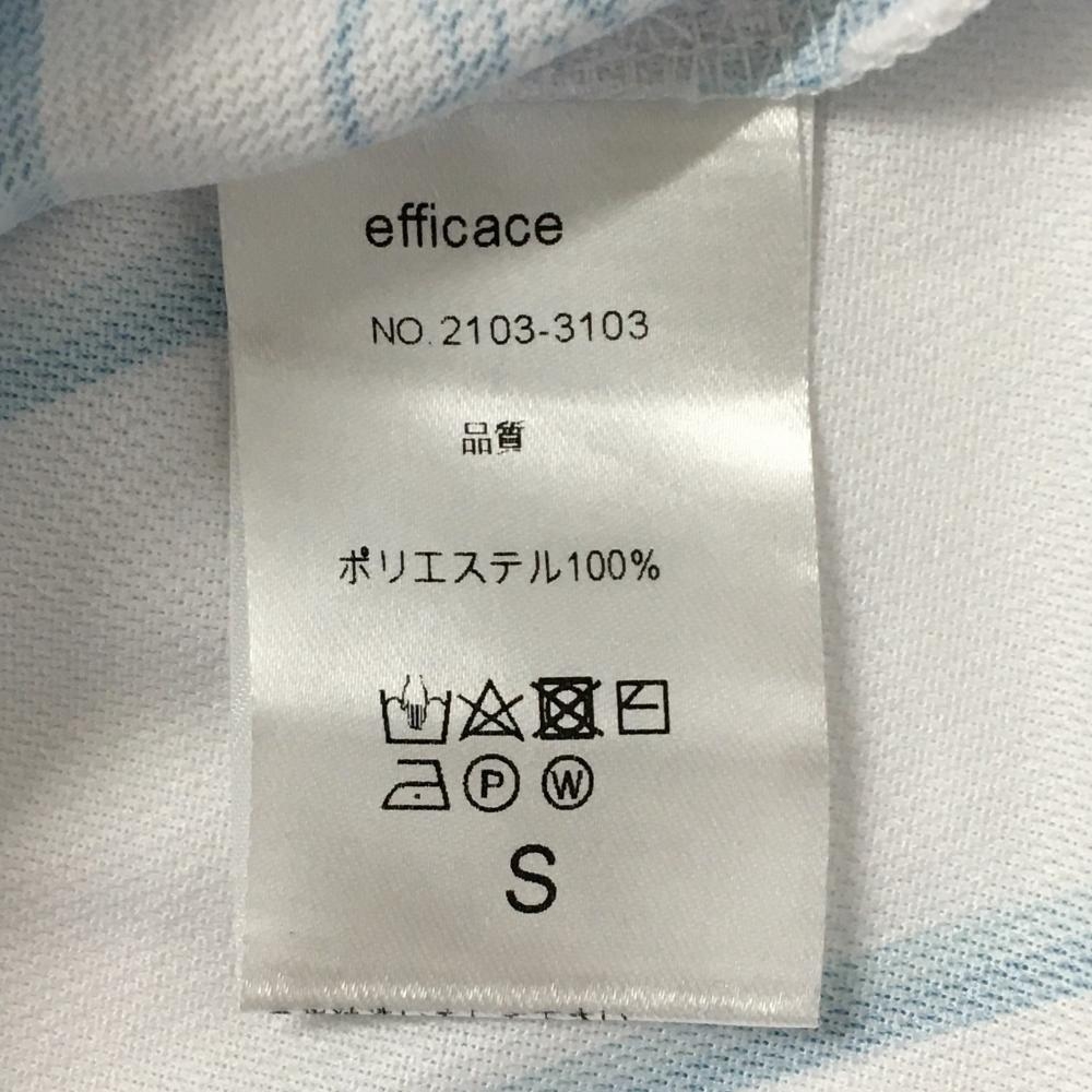 【美品】エフィカス 半袖ポロシャツ 白×ライトブルー ロゴ総柄 斜めライン レディース S ゴルフウェア efficace