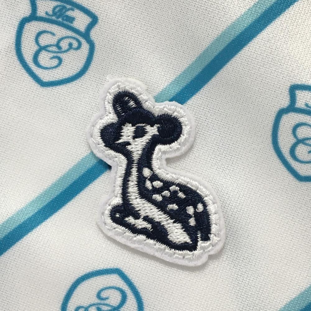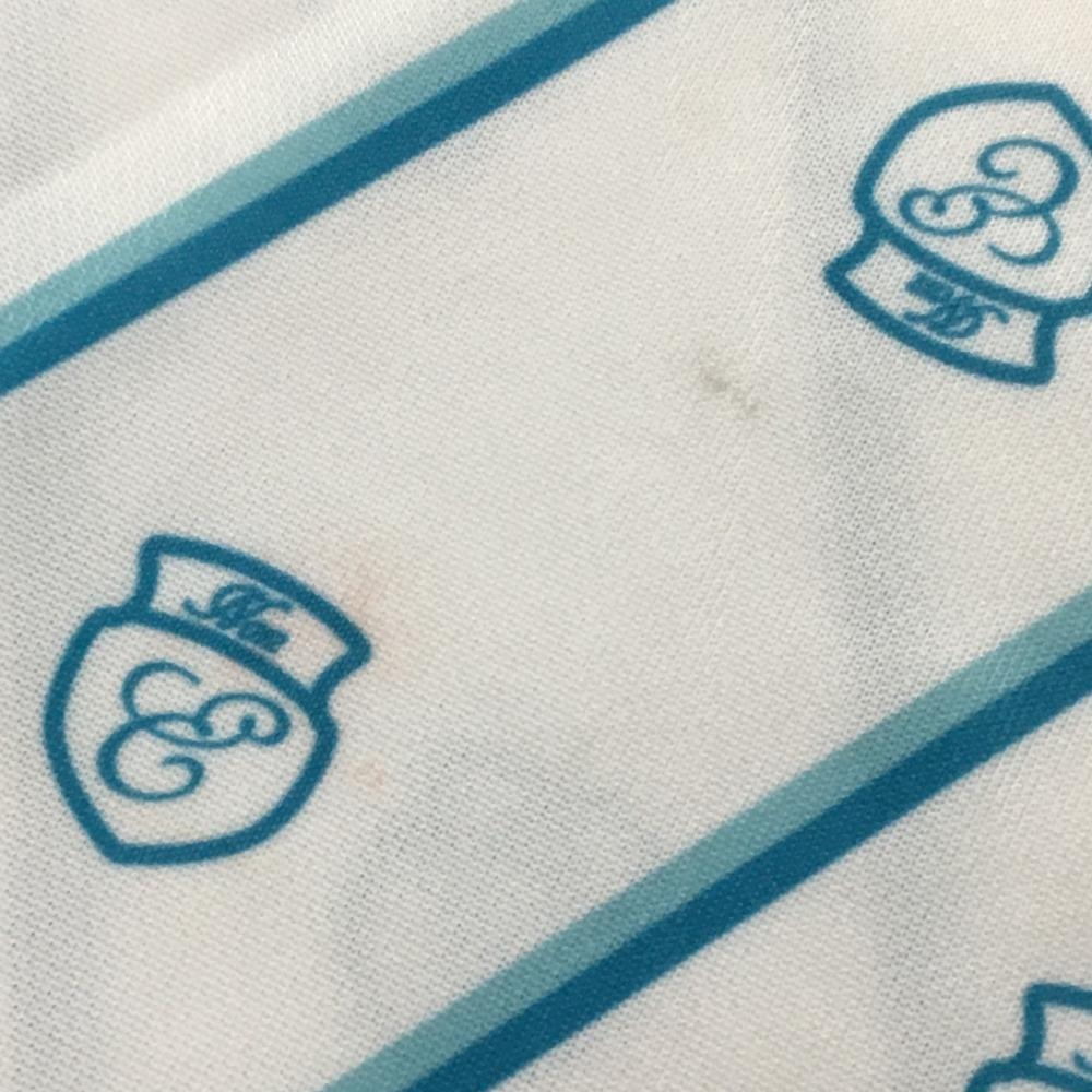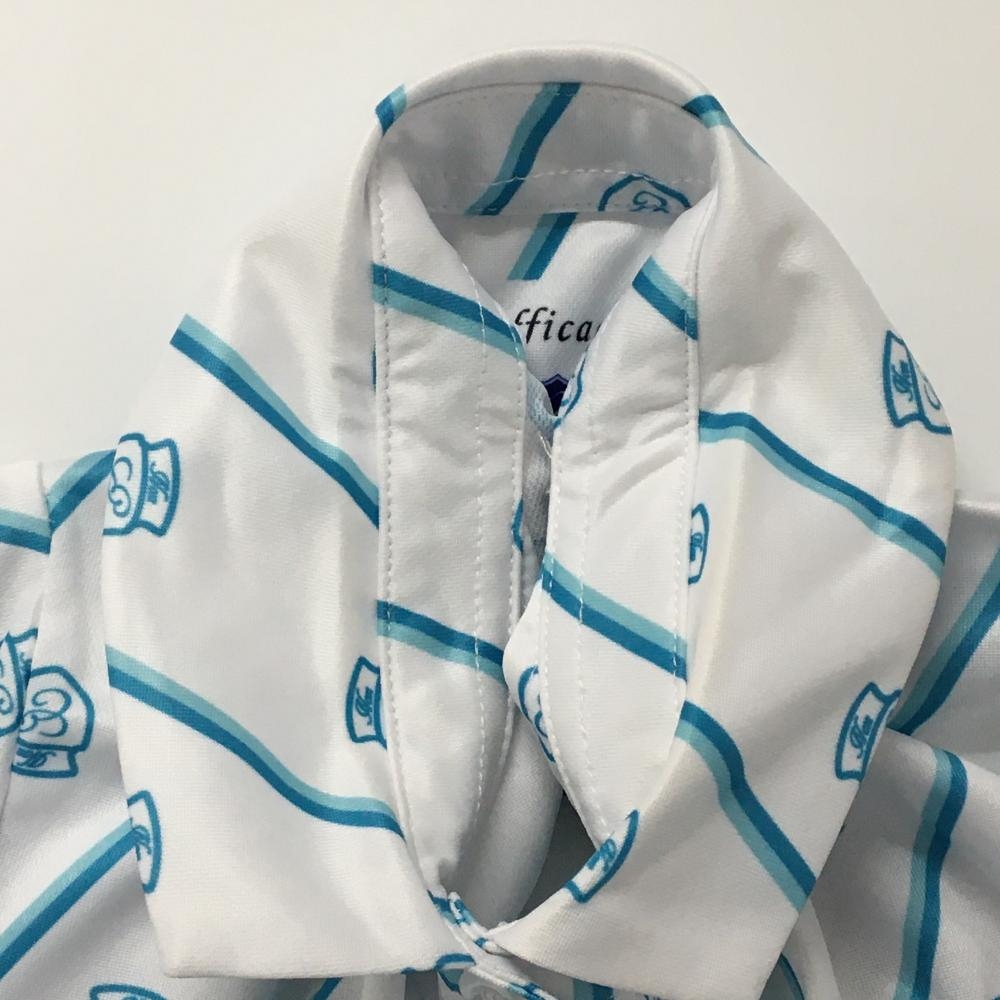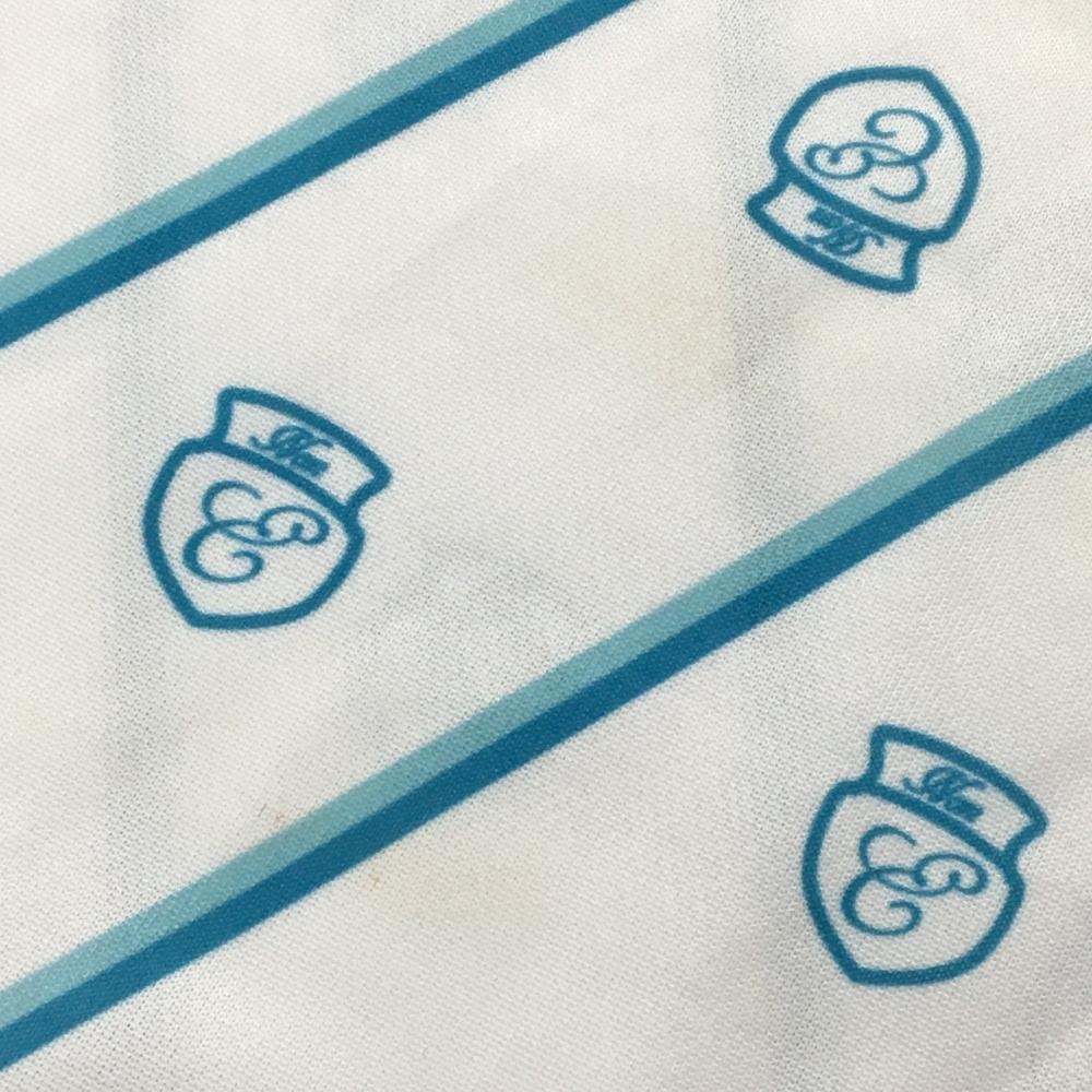 【美品】エフィカス 半袖ポロシャツ 白×ライトブルー ロゴ総柄 斜めライン レディース S ゴルフウェア efficace