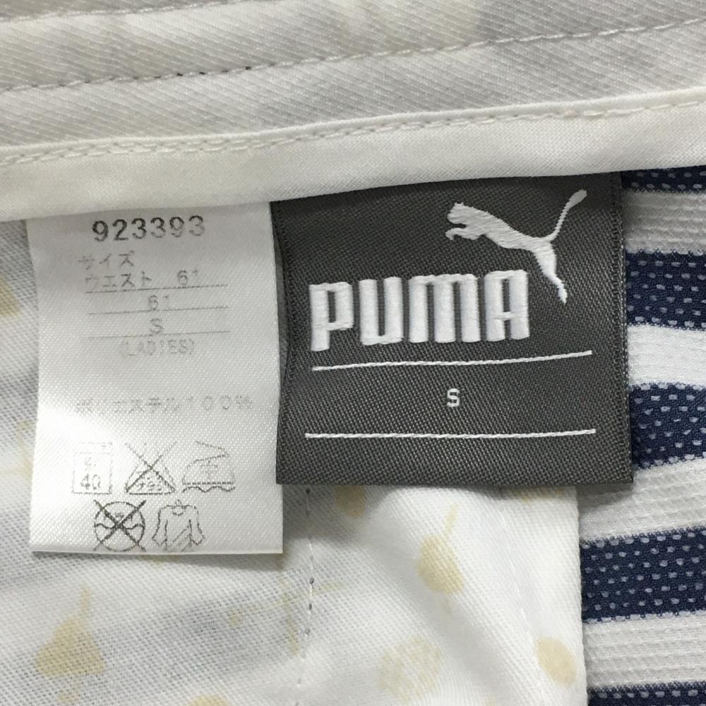 【超美品】プーマ スカート ネイビー×白 ボーダー ロゴ刺しゅう レディース S ゴルフウェア PUMA
