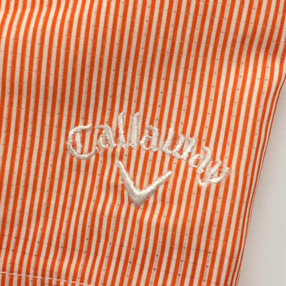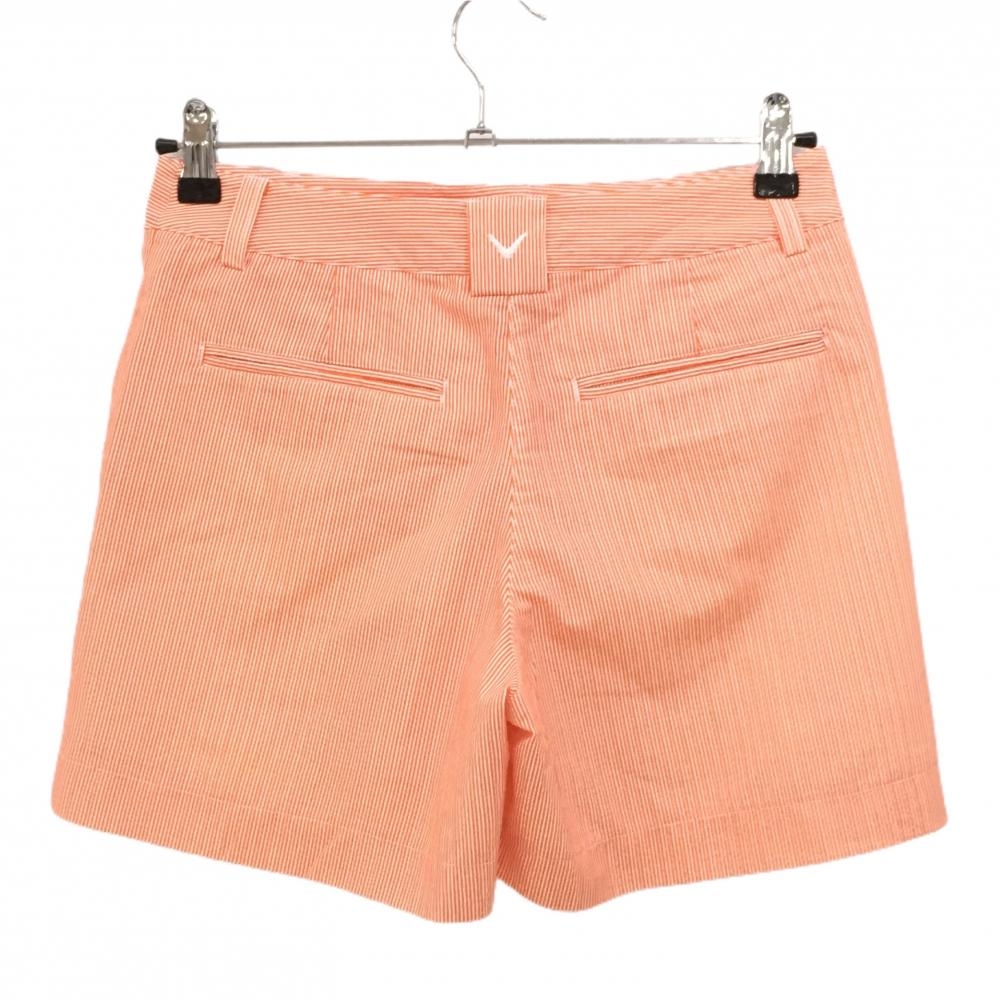 【超美品】キャロウェイ ショートパンツ オレンジ×白 細ストライプ メッシュ調生地 裏地付 レディース S ゴルフウェア Callaway