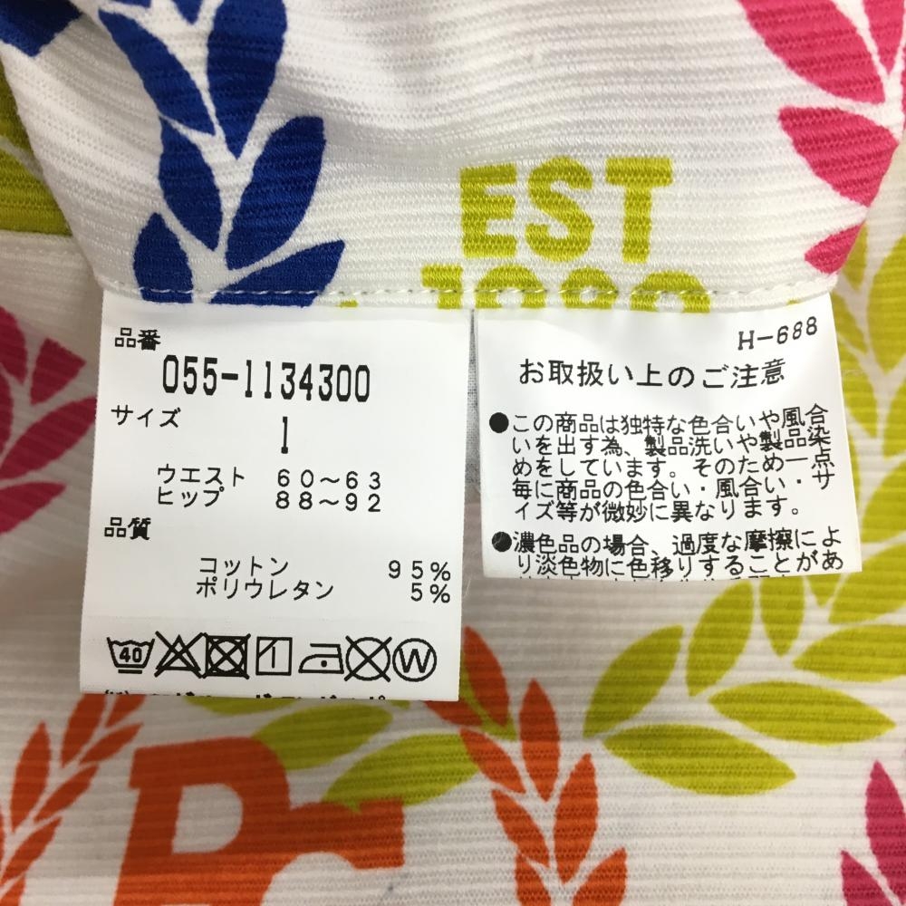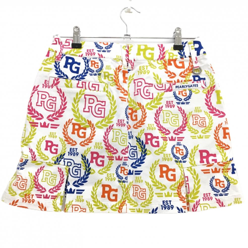 【超美品】パーリーゲイツ スカート 白×マルチ 総柄 ロゴ レディース 1(M) ゴルフウェア PEARLY GATES
