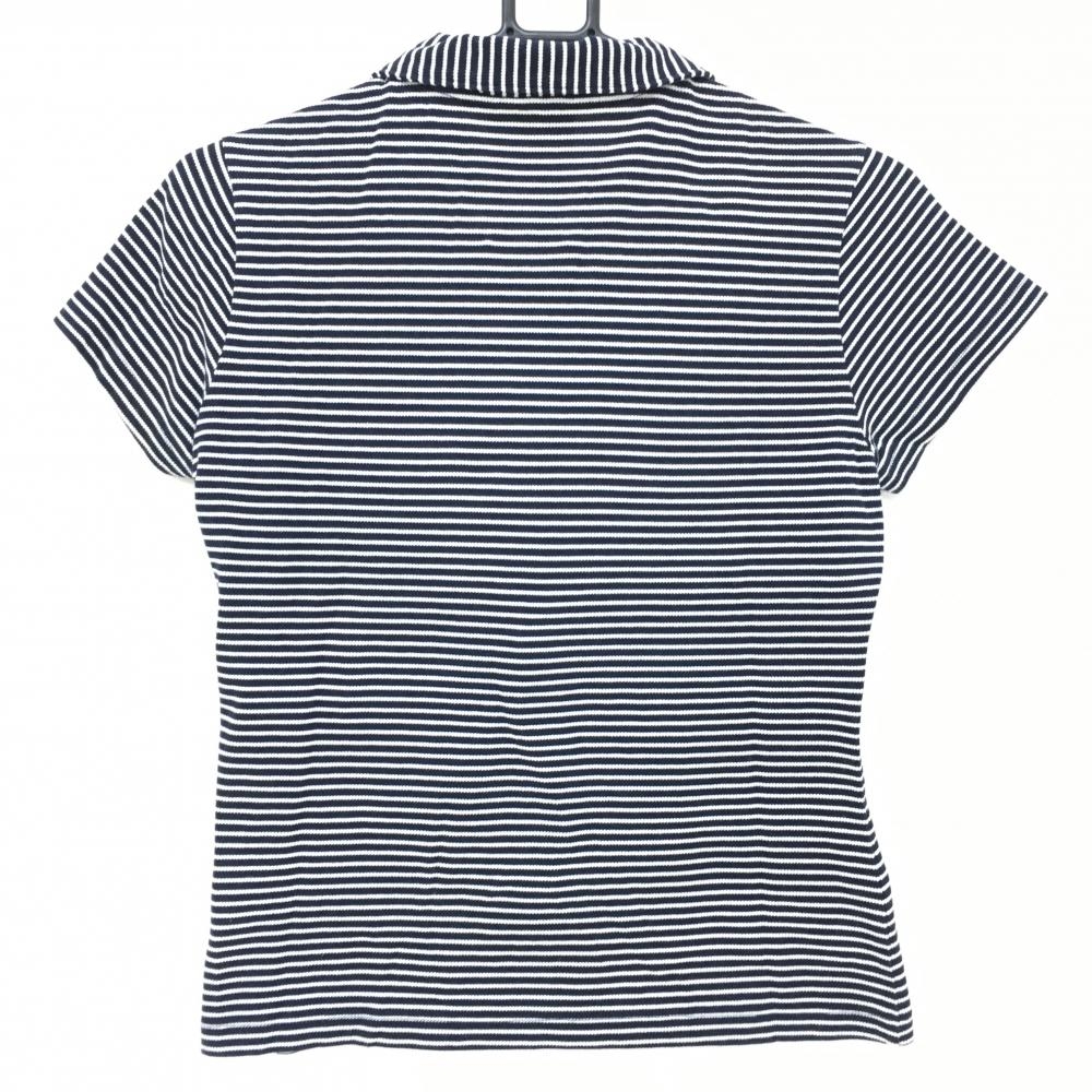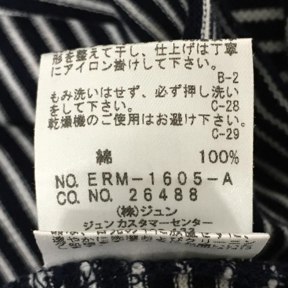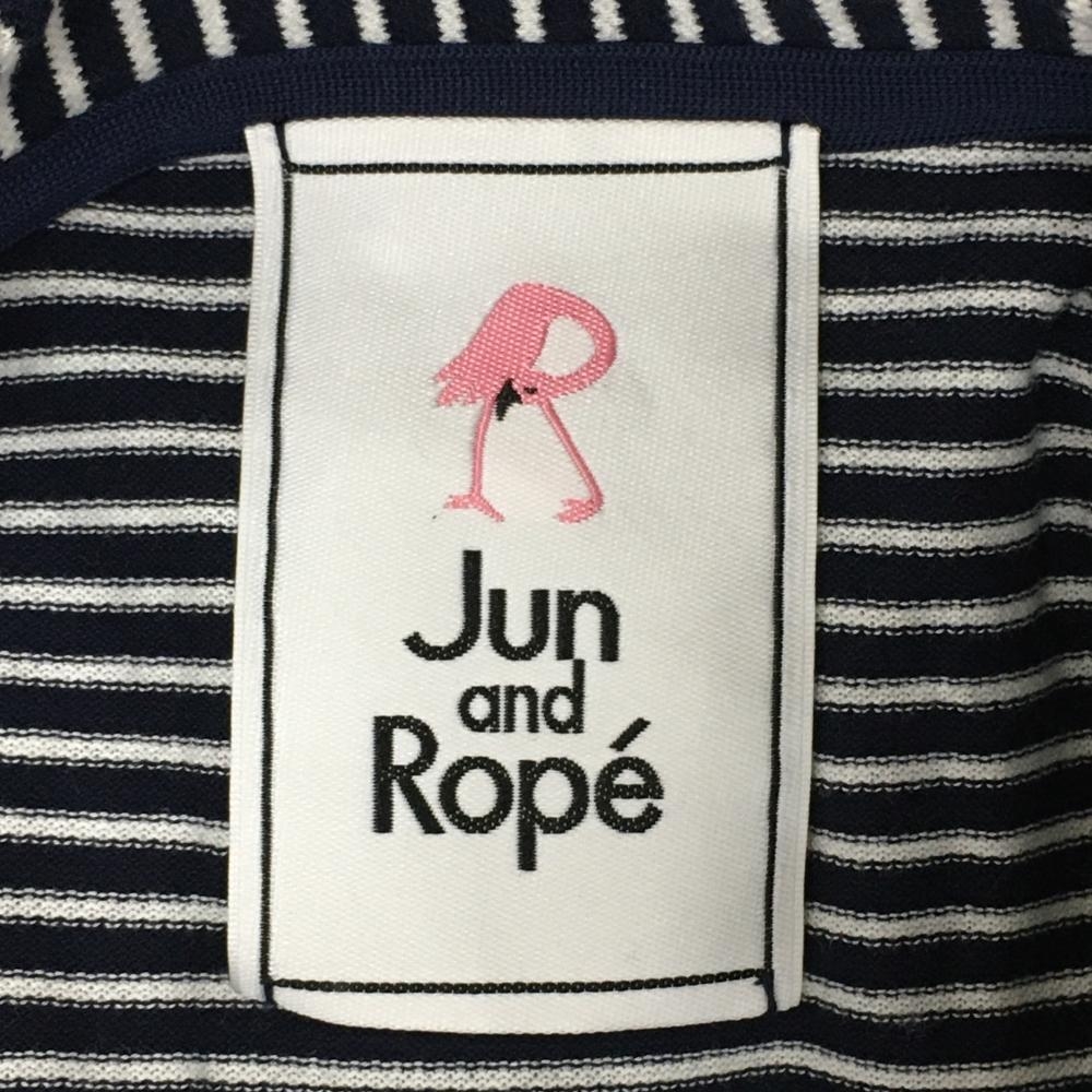 【超美品】ジュンアンドロペ 半袖ポロシャツ ダークネイビー×白 ボーダー 綿100% レディース M ゴルフウェア JUN&ROPE