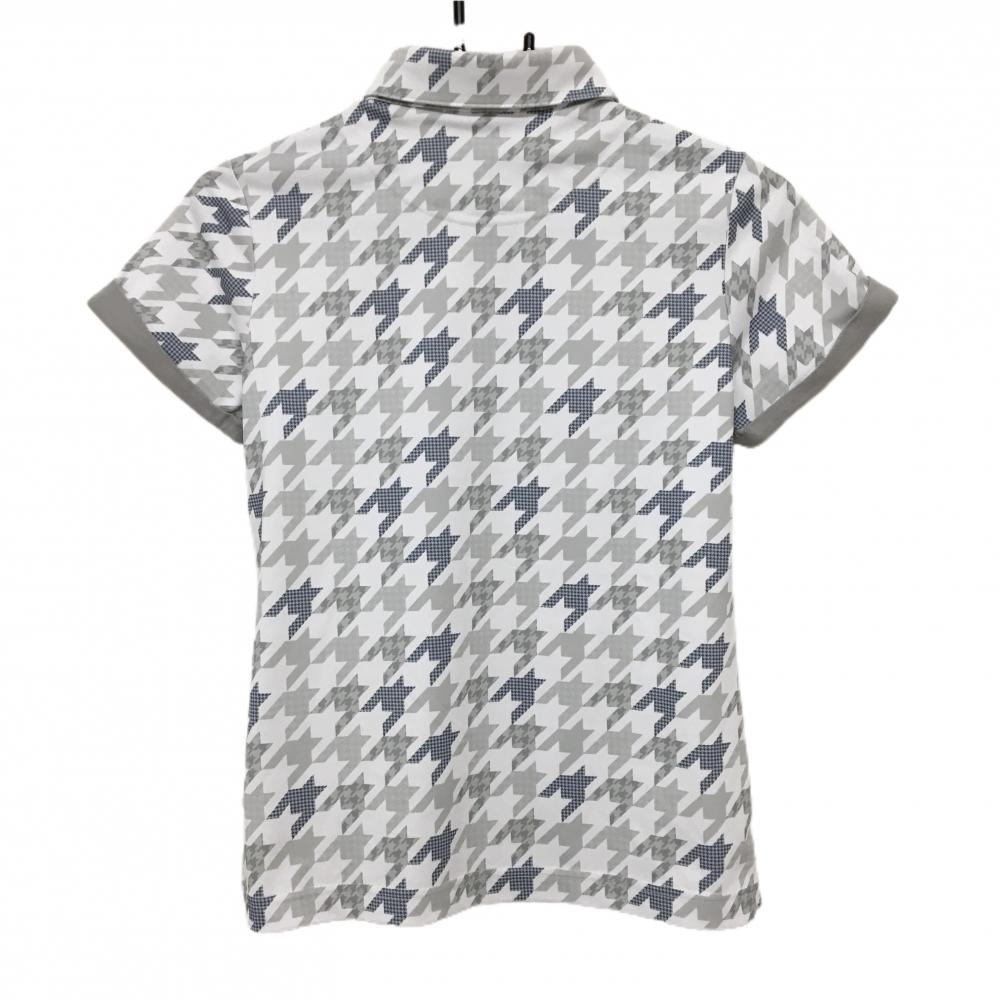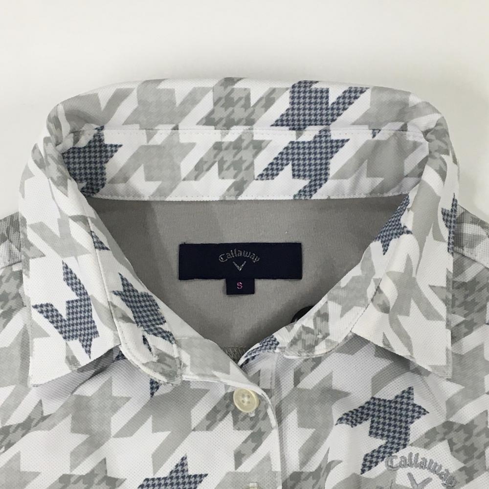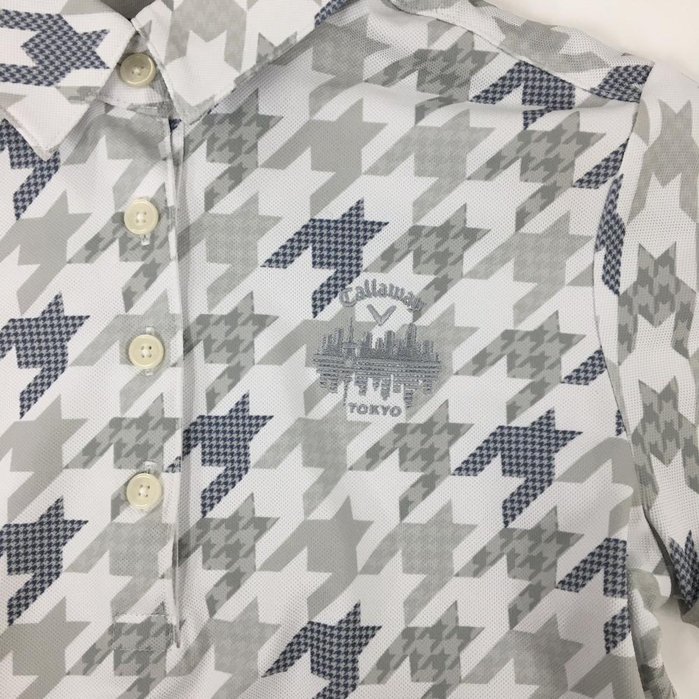 キャロウェイ 半袖ポロシャツ 白×グレー 千鳥格子柄 ロゴ刺しゅう レディース S ゴルフウェア Callaway