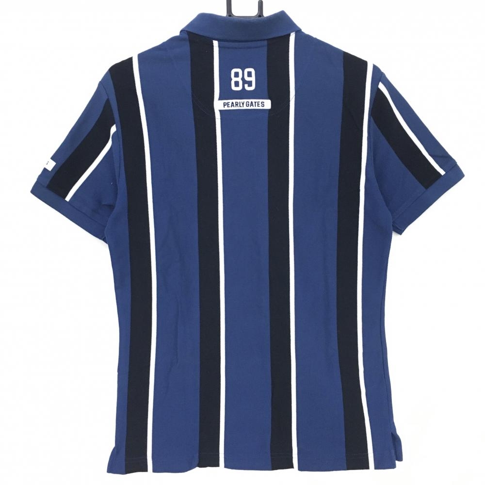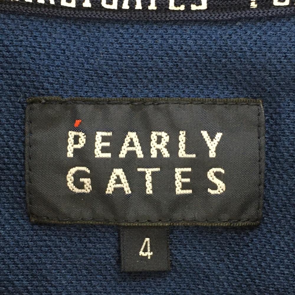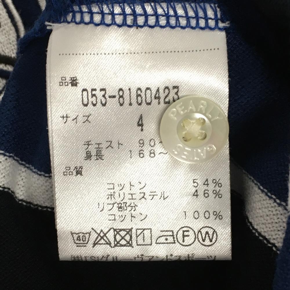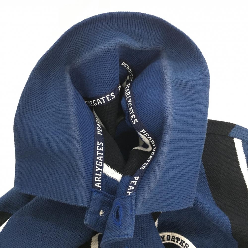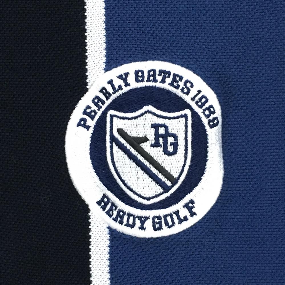 パーリーゲイツ 半袖ポロシャツ ネイビー×黒 ストライプ 日本製 コットン混 メンズ 4(M) ゴルフウェア PEARLY GATES