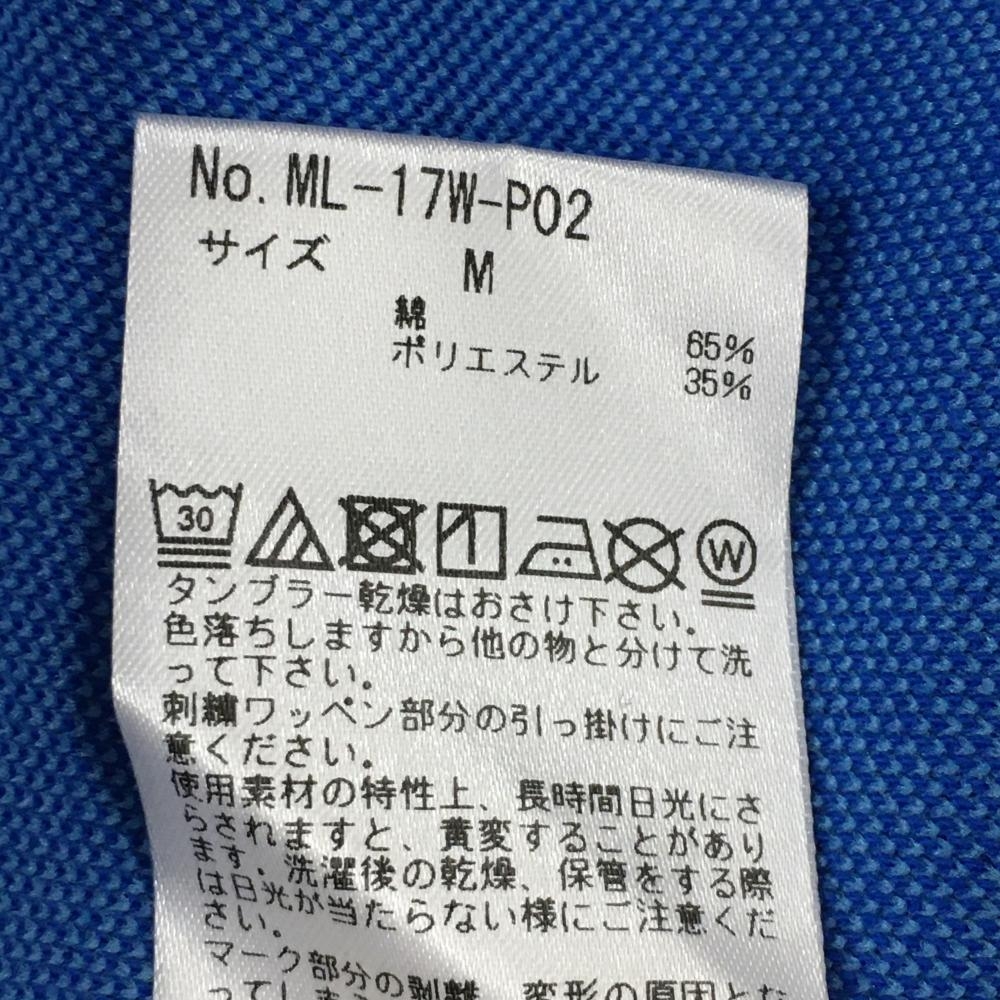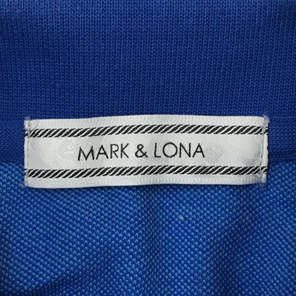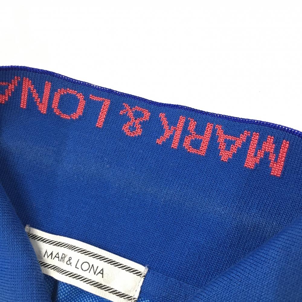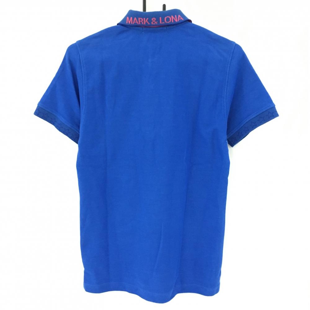 【美品】マークアンドロナ 半袖ポロシャツ ブルー 襟後ろロゴ 袖星柄 スカル メンズ M ゴルフウェア MARK&LONA