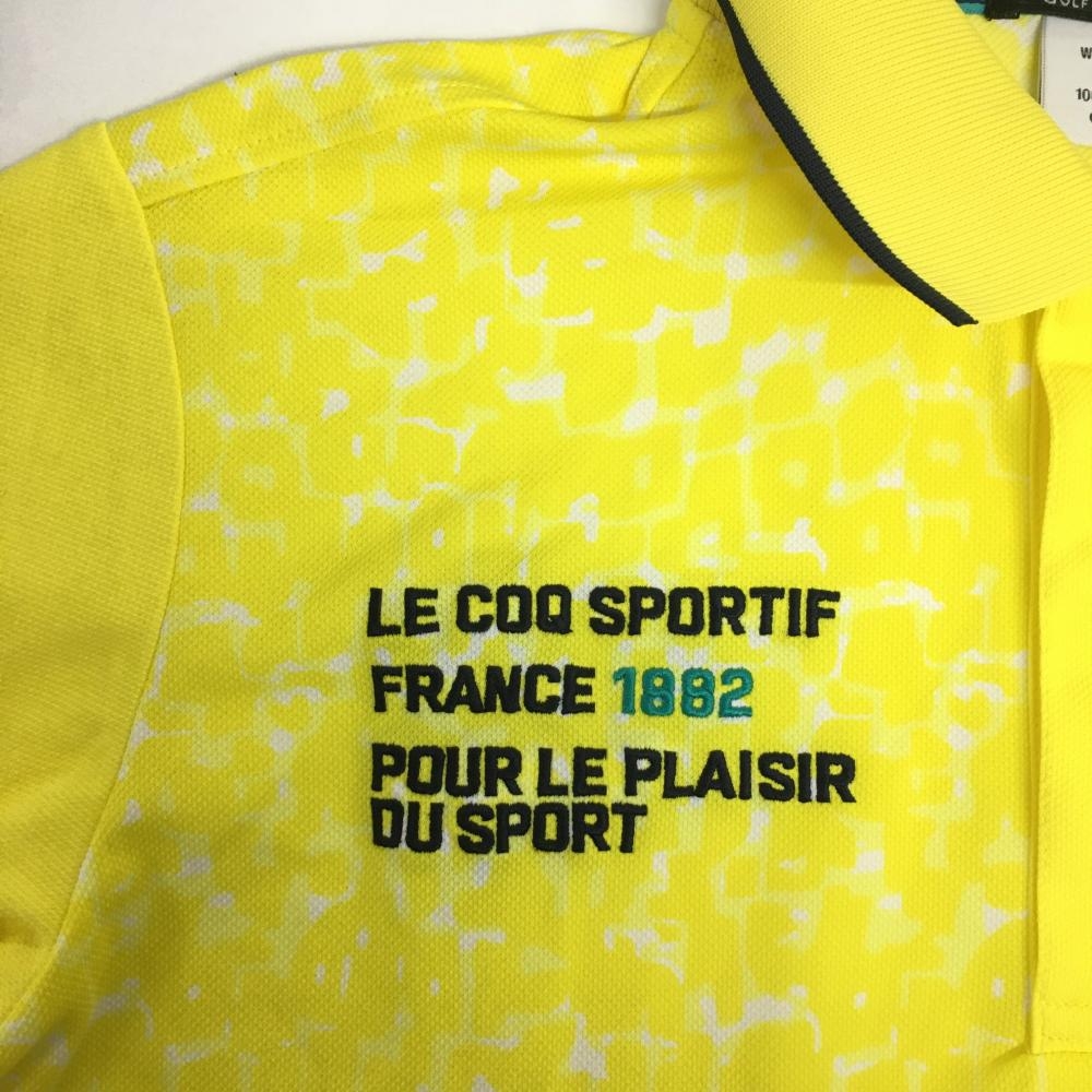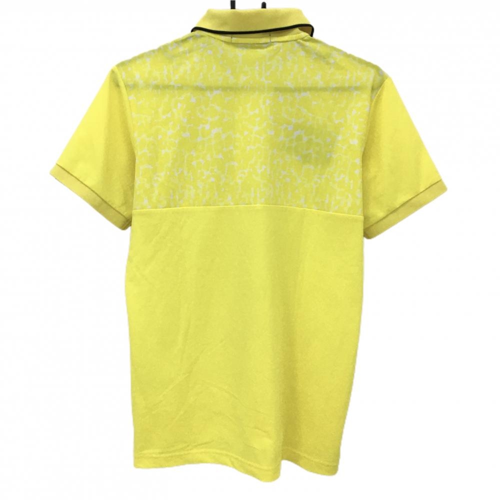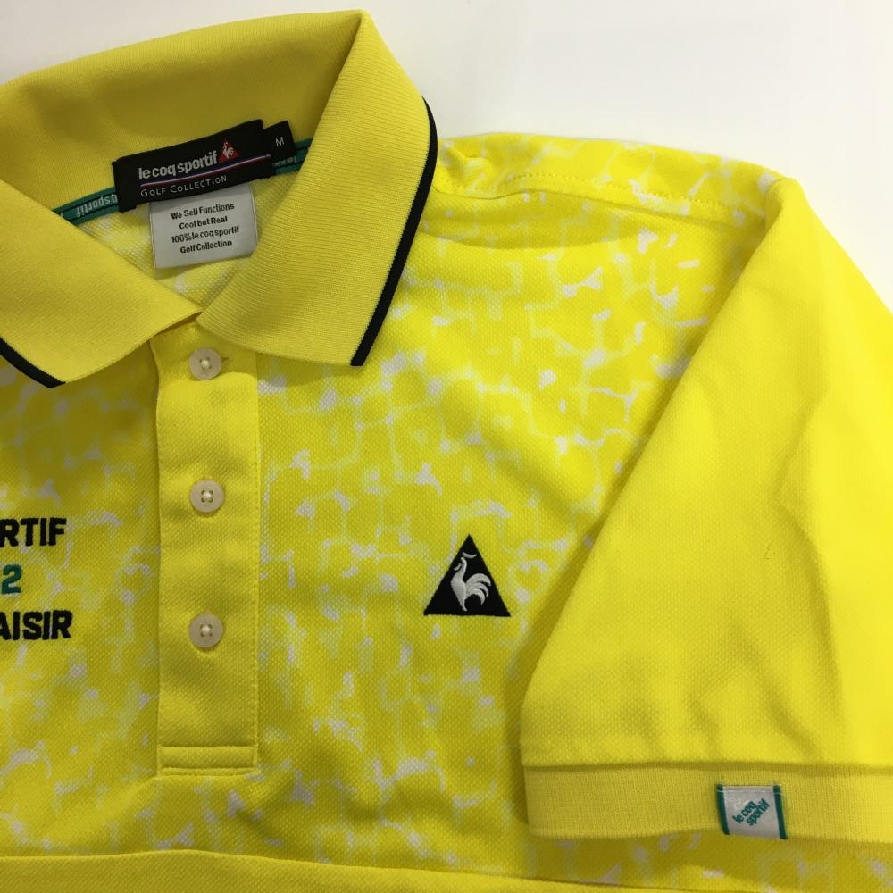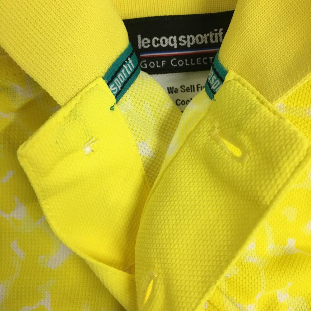 【美品】ルコック 半袖ポロシャツ イエロー×黒 一部柄 襟渕ライン メンズ M ゴルフウェア le coq sportif