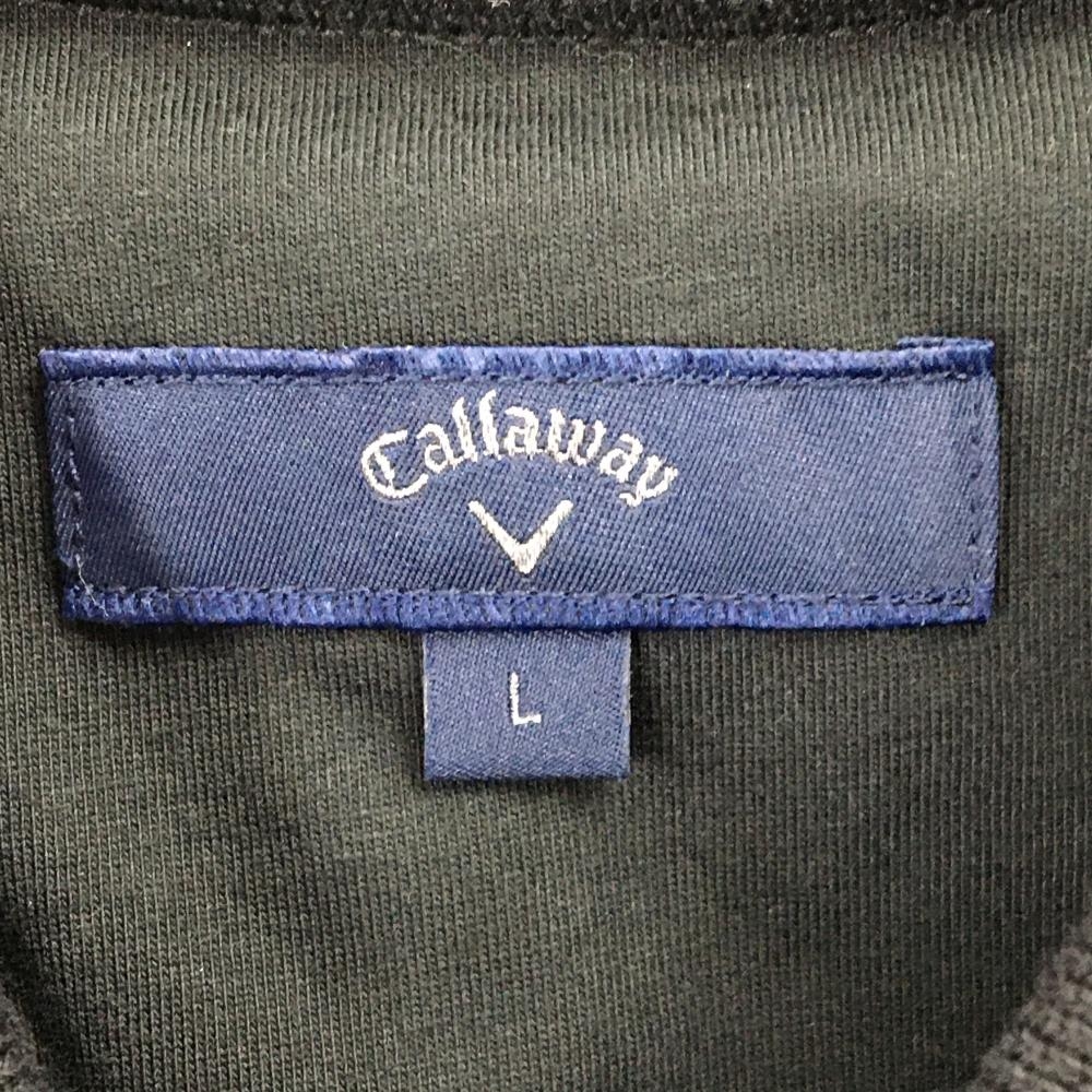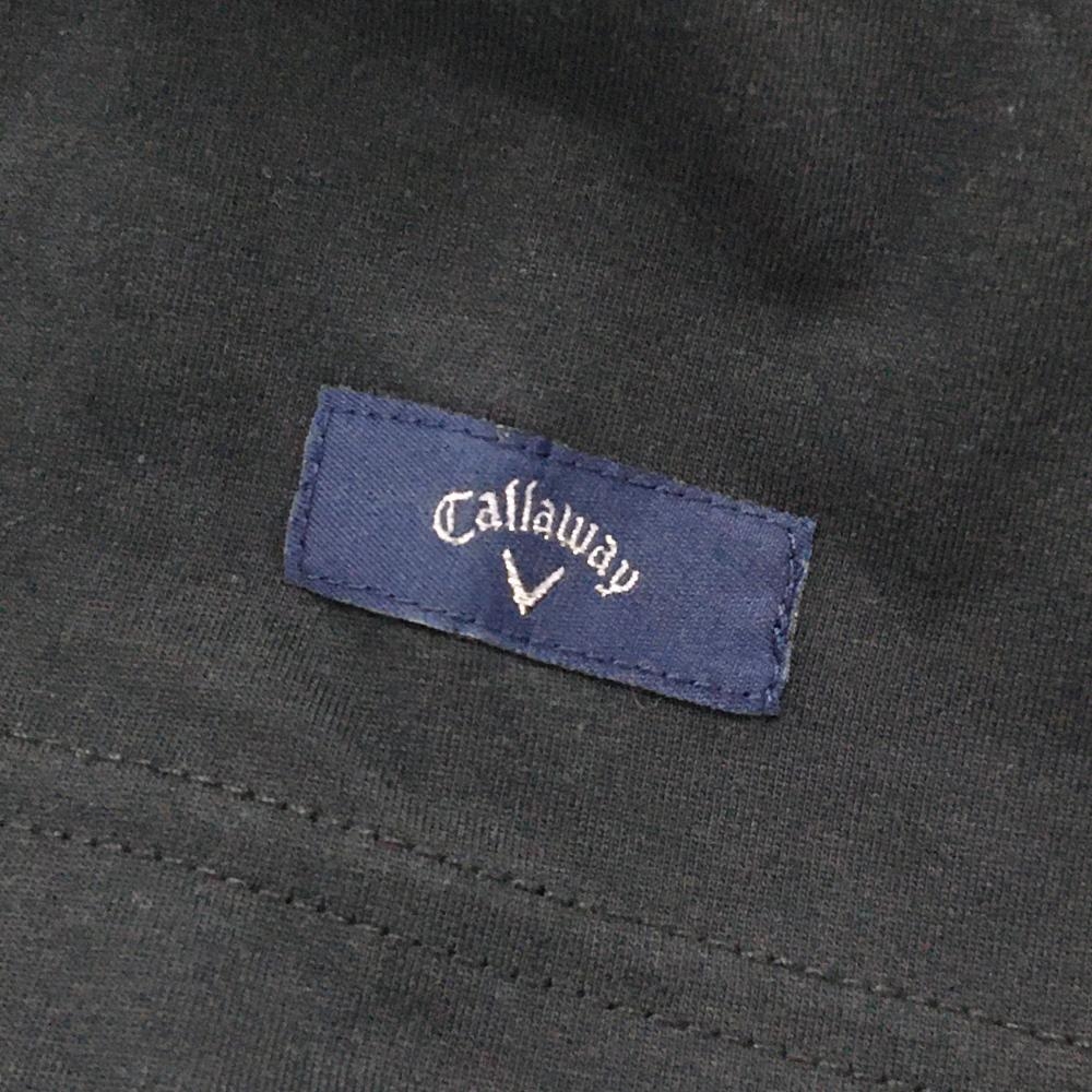 【美品】キャロウェイ 2WAY襟付き半袖シャツ 黒×白 襟着脱可 プリント メンズ L ゴルフウェア Callaway