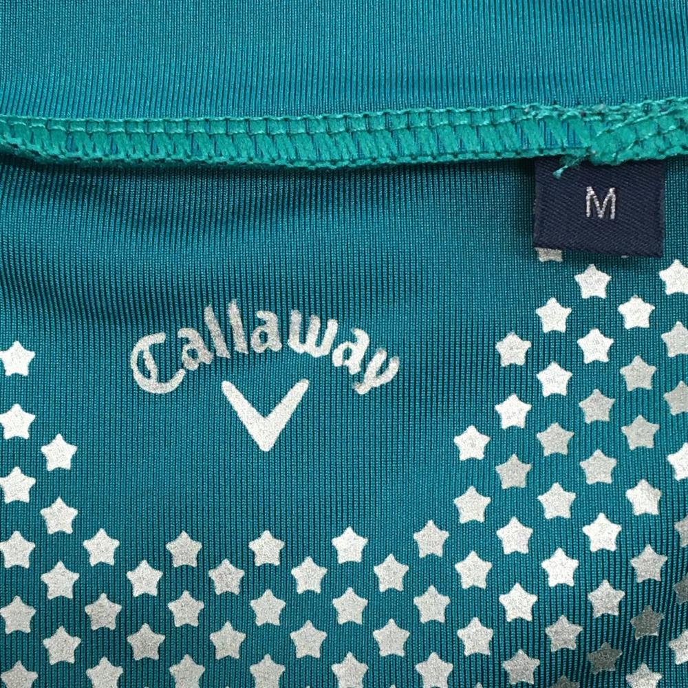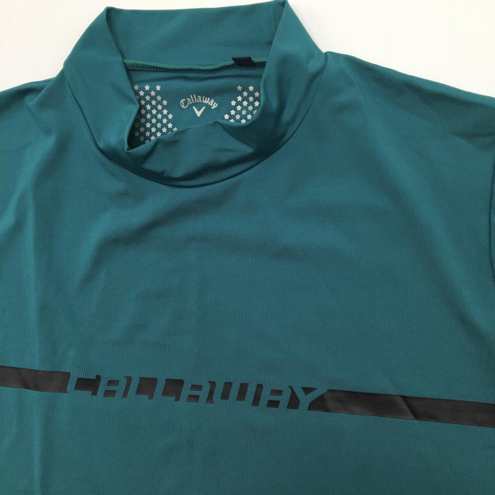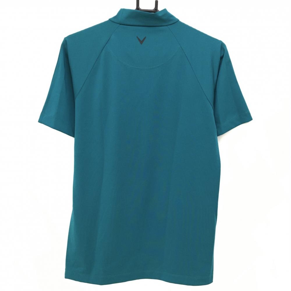 【超美品】キャロウェイ 半袖ハイネックシャツ ブルーグリーン×黒 フロントプリント メンズ M ゴルフウェア Callaway